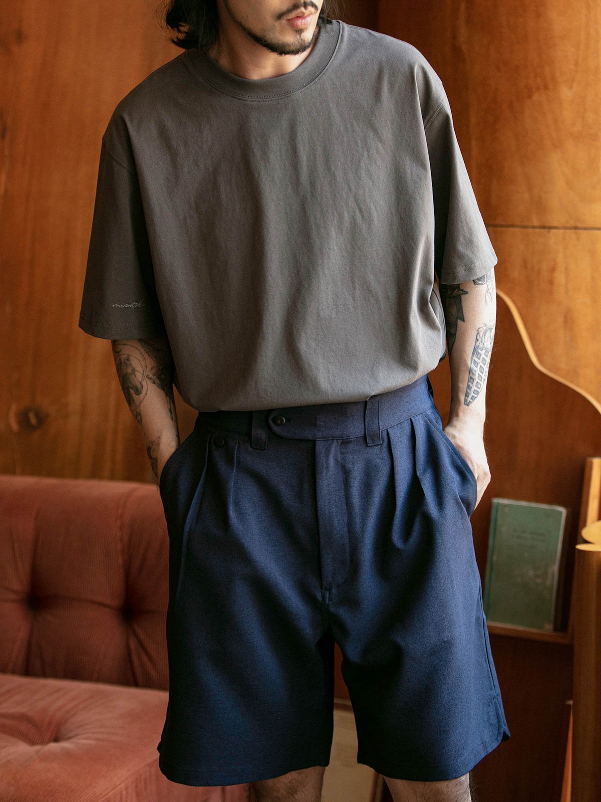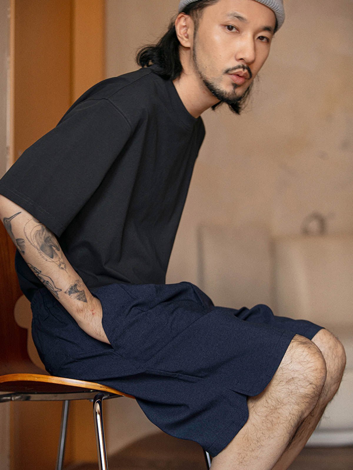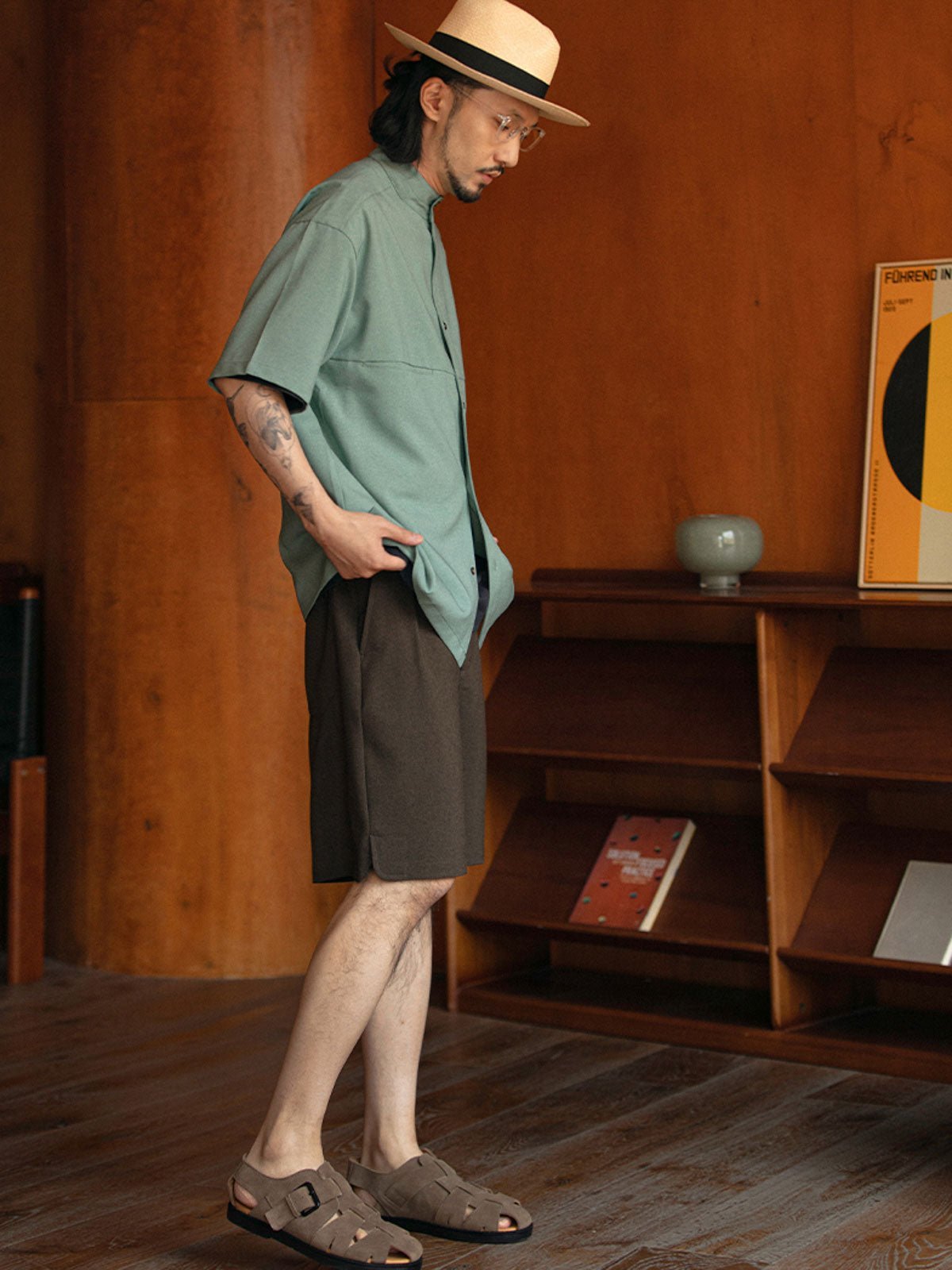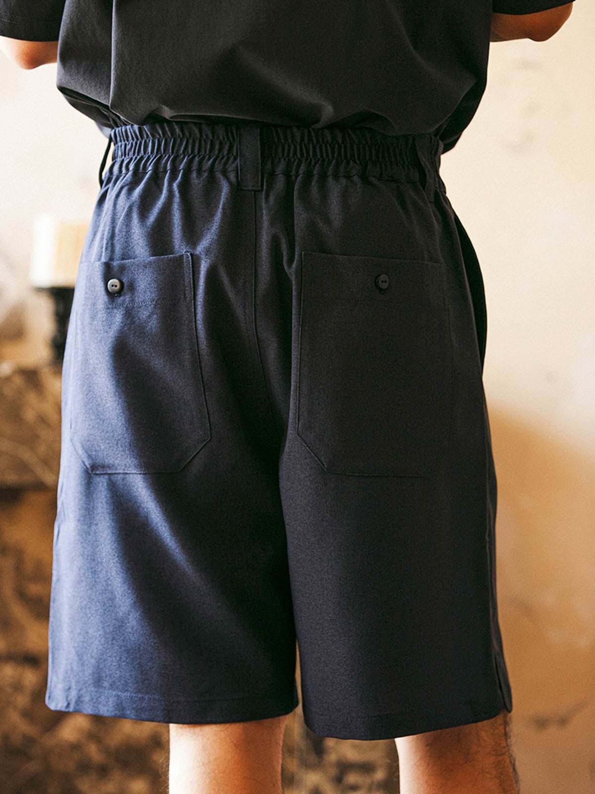 このスラックスショーツは、リネン風カチオン染めCD糸素材を使用しており、高級感のある混色効果を呈し、色彩が豊かで鮮やかです。布地はリネンのような節のある質感を持ち、密度が高く自然なドレープ性を備えています。重量はわずか170gで、優れた防シワ性と簡単なお手入れが可能で、洗濯後もすぐに乾きます。