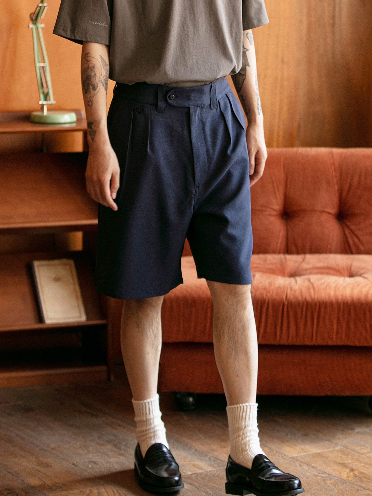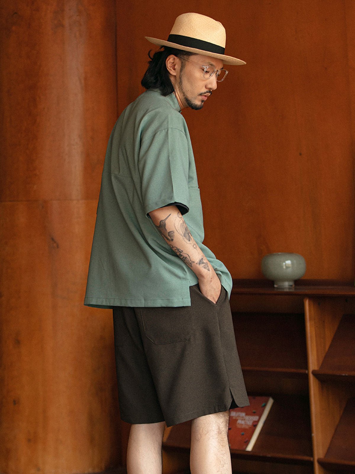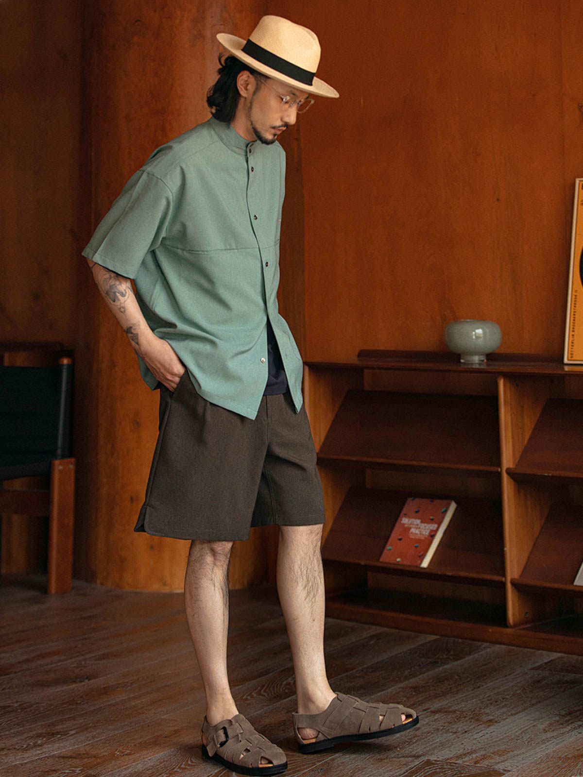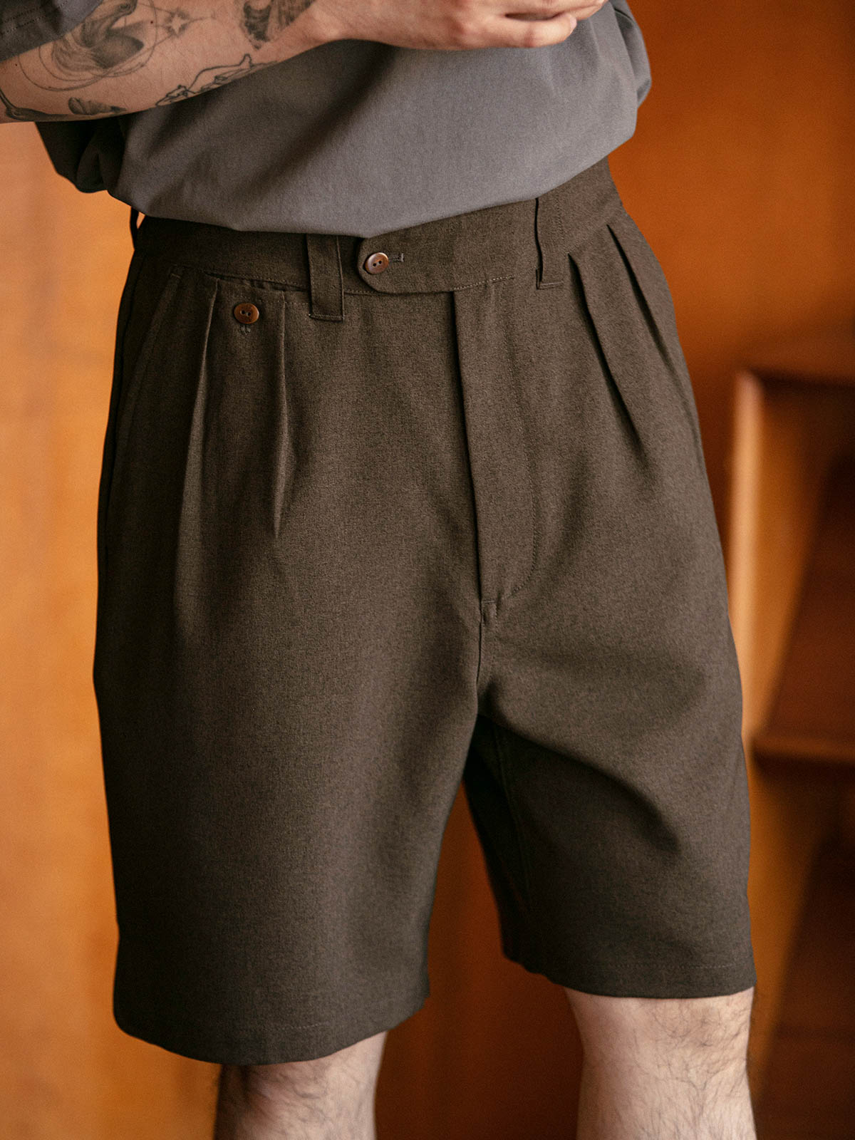 このスラックスショーツは、リネン風カチオン染めCD糸素材を使用しており、高級感のある混色効果を呈し、色彩が豊かで鮮やかです。布地はリネンのような節のある質感を持ち、密度が高く自然なドレープ性を備えています。重量はわずか170gで、優れた防シワ性と簡単なお手入れが可能で、洗濯後もすぐに乾きます。