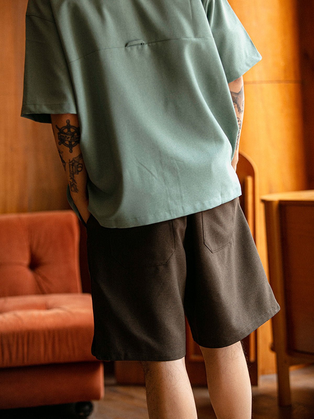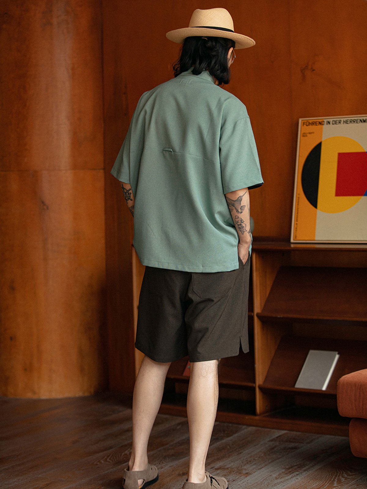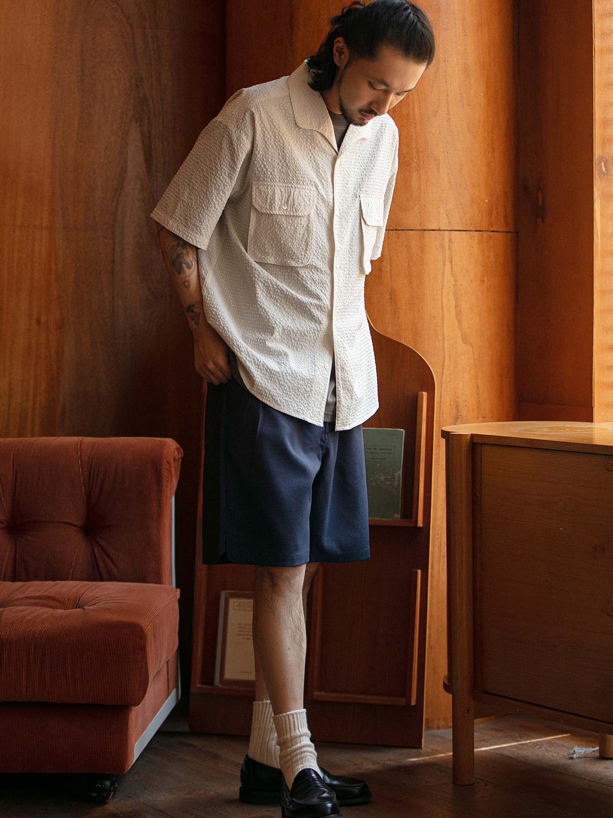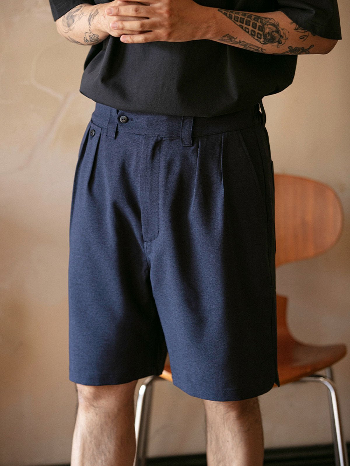 このスラックスショーツは、リネン風カチオン染めCD糸素材を使用しており、高級感のある混色効果を呈し、色彩が豊かで鮮やかです。布地はリネンのような節のある質感を持ち、密度が高く自然なドレープ性を備えています。重量はわずか170gで、優れた防シワ性と簡単なお手入れが可能で、洗濯後もすぐに乾きます。
