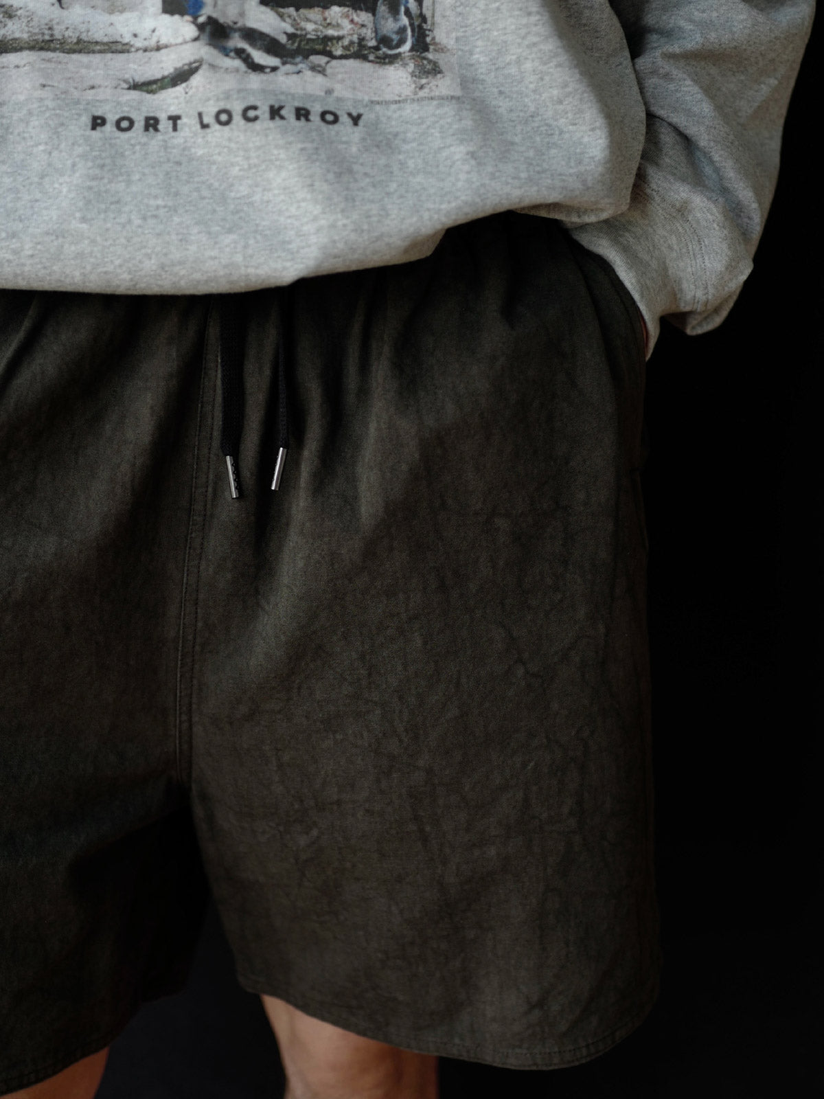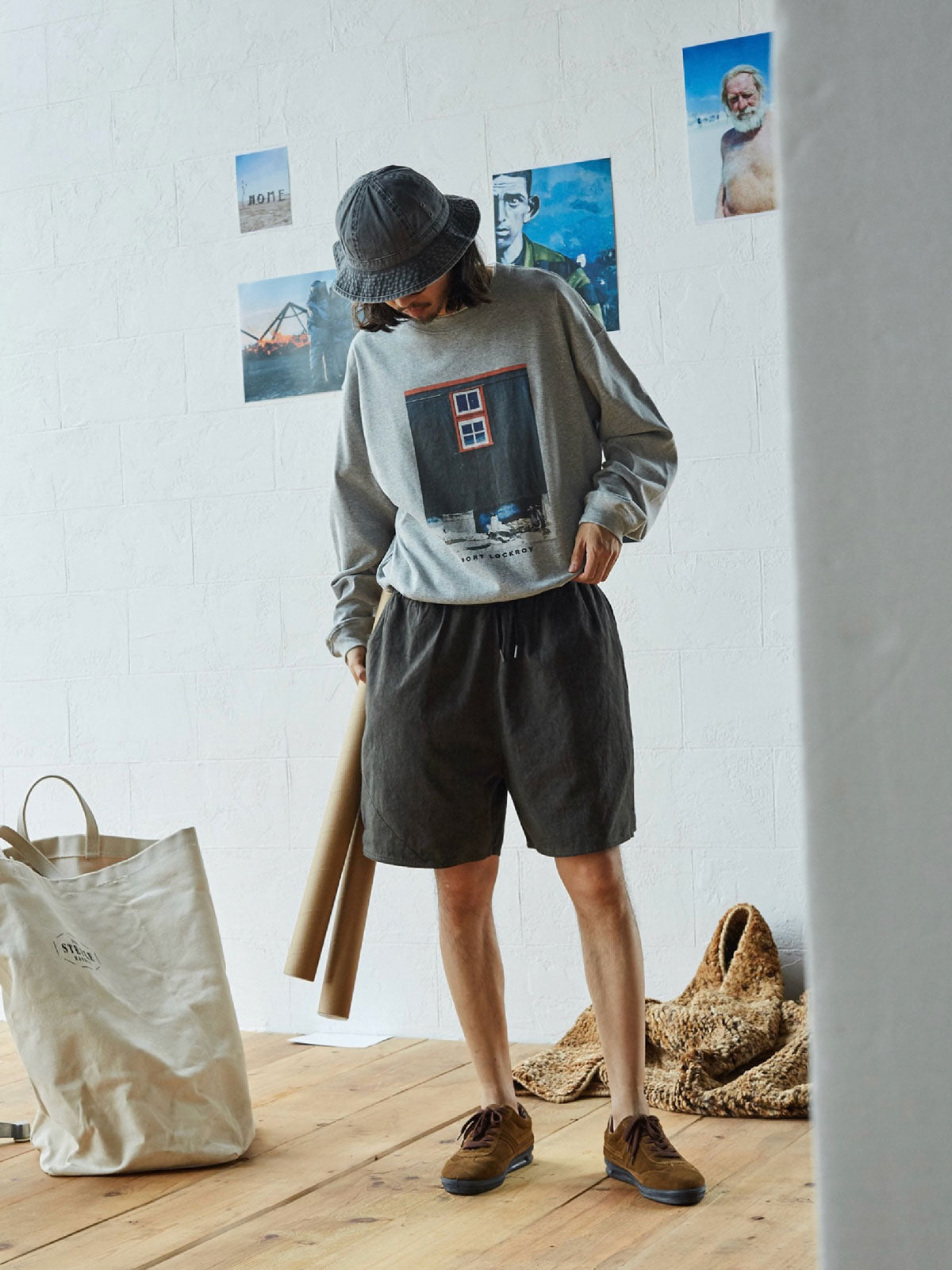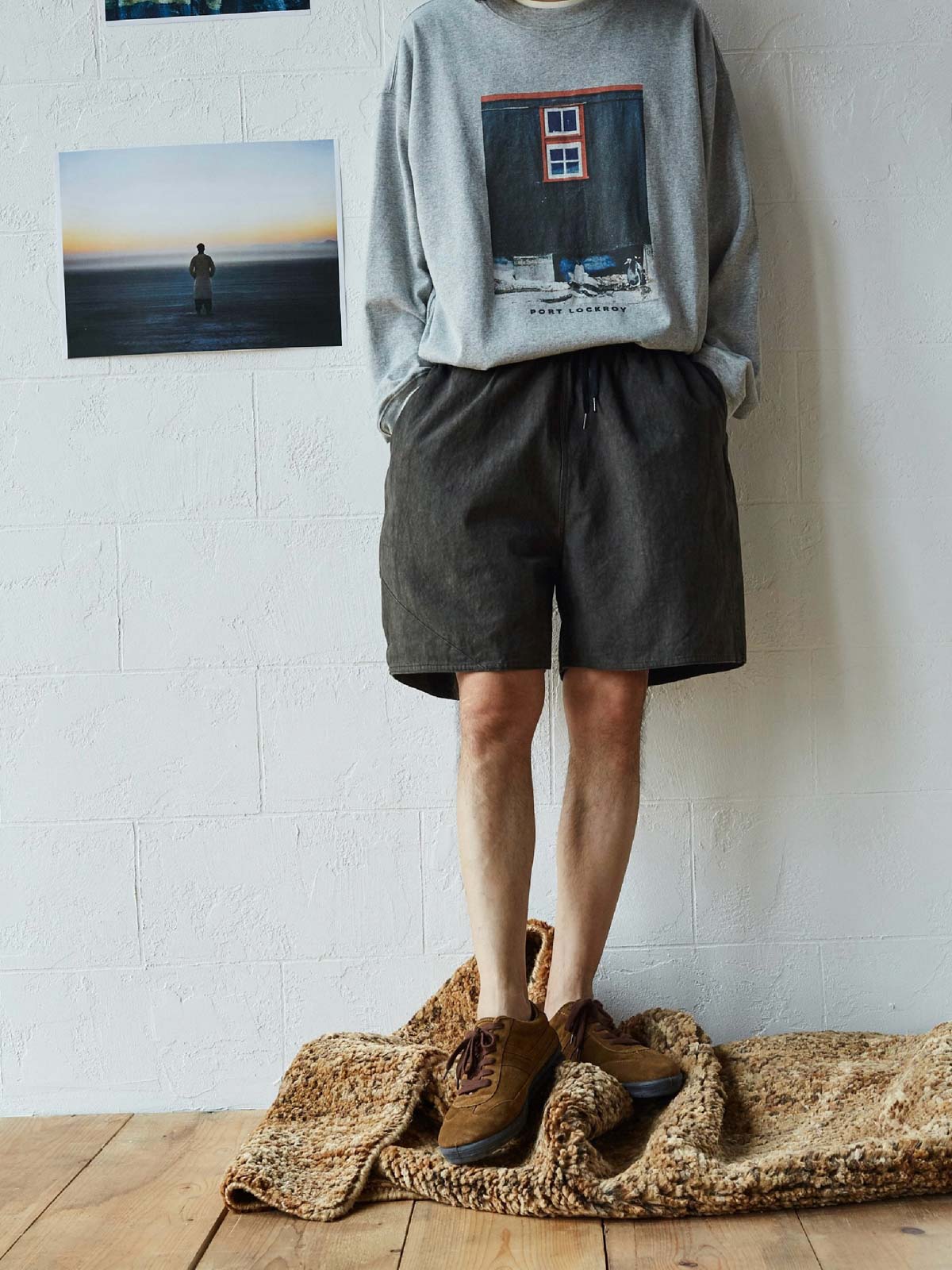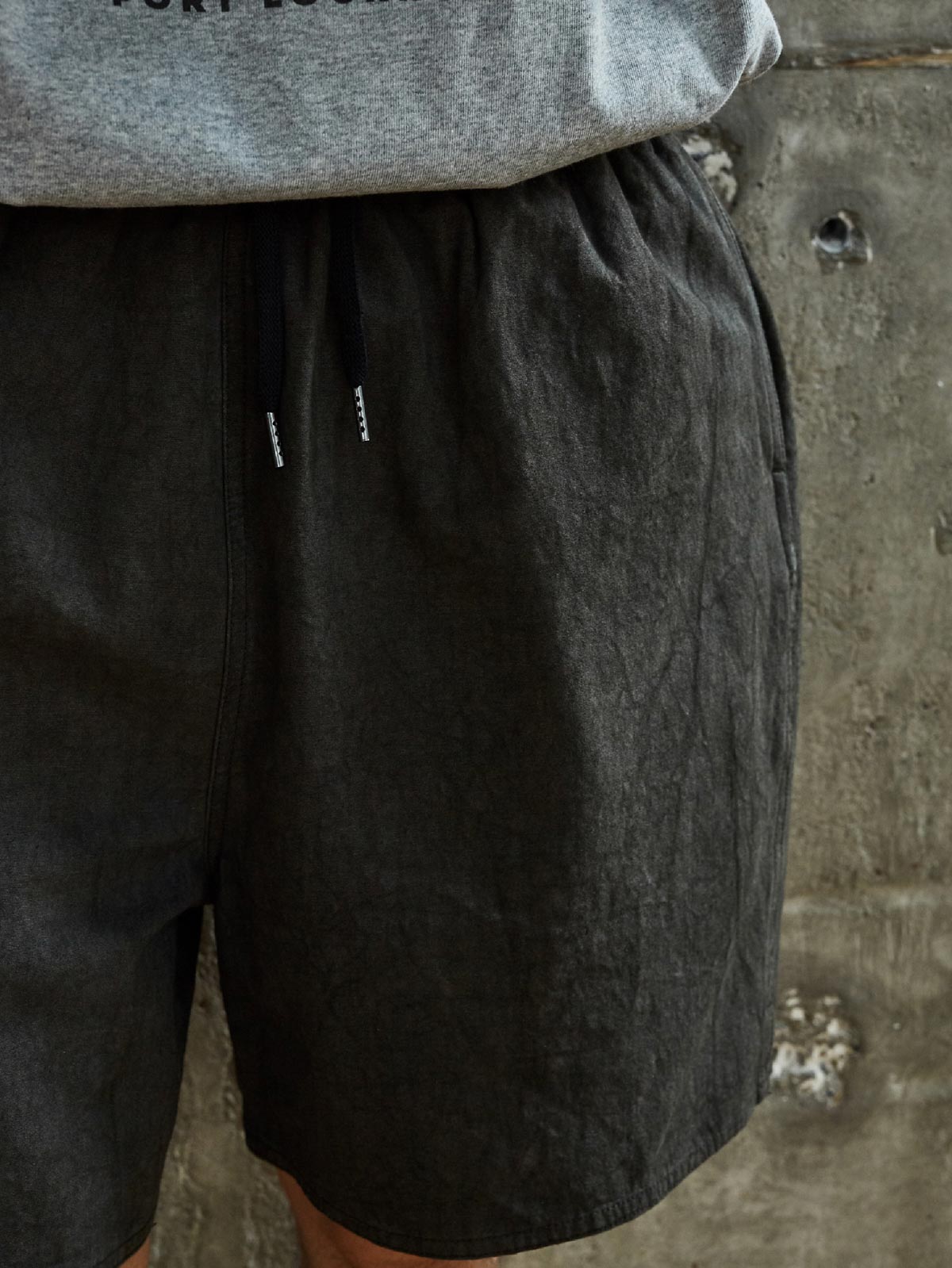 このトレーニングショーツは、1960年代の海軍トレーニングショーツから着想を得て、軽量感と快適なシルエットが特徴です。コットン100%のタイダイ染めキャンバス素材を使用しており、しっかりとした手触りで独特な質感を持っています。通常のスポーツウェアとは異なり、タイダイ染めのキャンバスはしっかりしており、ナチュラルな色合いのブラウンと深緑色のタイダイ染めが施されており、自然なムラ感があり、キャンバスの粗い質感と相まって独特な風合いが感じられます。穿き込むほどに味わい深さが増し、大人っぽい雰囲気を醸し出します。デザインは昔のトレーニングショーツのシルエットを踏襲し、ウエストはゴムとドローコードで調節可能です。後ろ腰部のヴィンテージ風のプリント文字が、豊かな視覚的ディテールを加えており、レトロなスタイルと現代的な快適性を兼ね備えた理想的なショーツです。