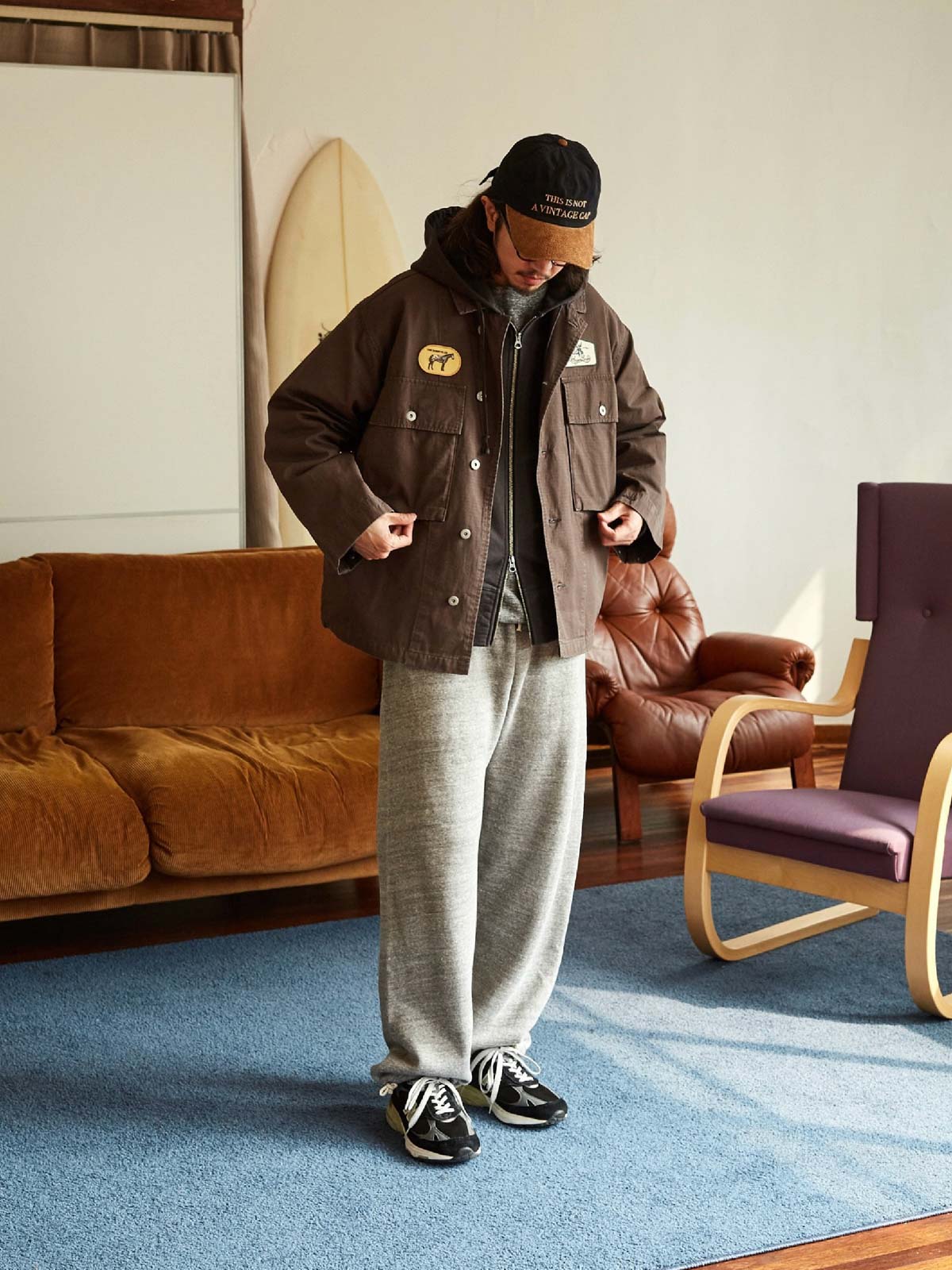 ゆったりとしたフィット感とストレートなカットが特徴で、快適な着心地と動きやすさを提供します。厚手のコットン生地は保温性に優れ、秋冬シーズンに適しています。