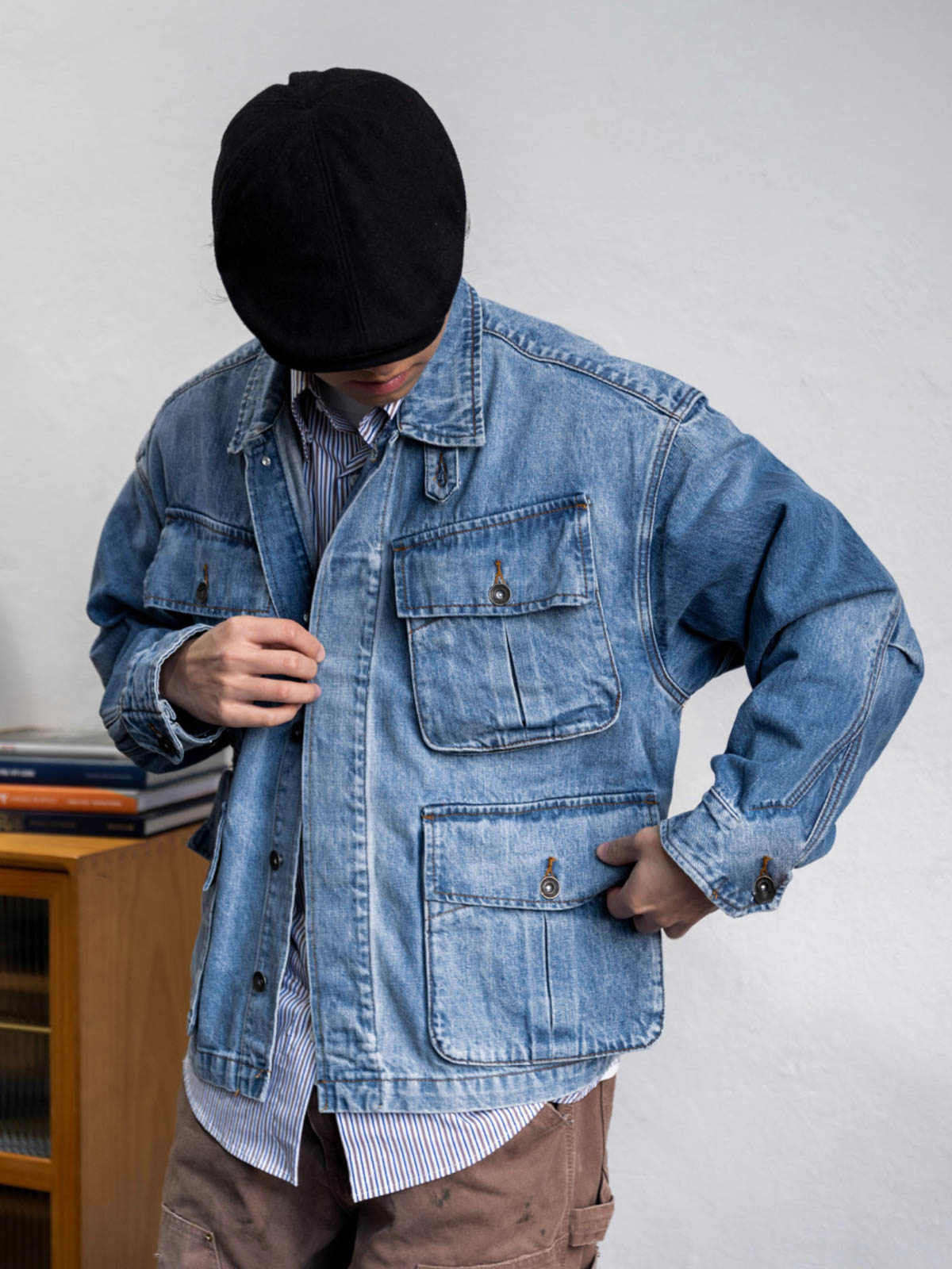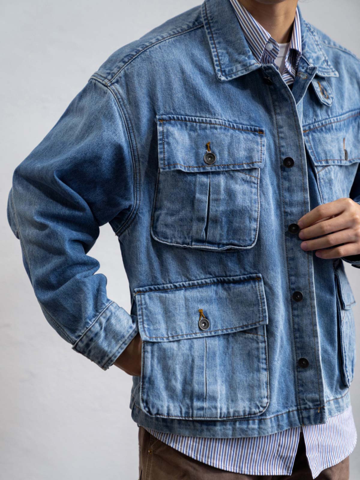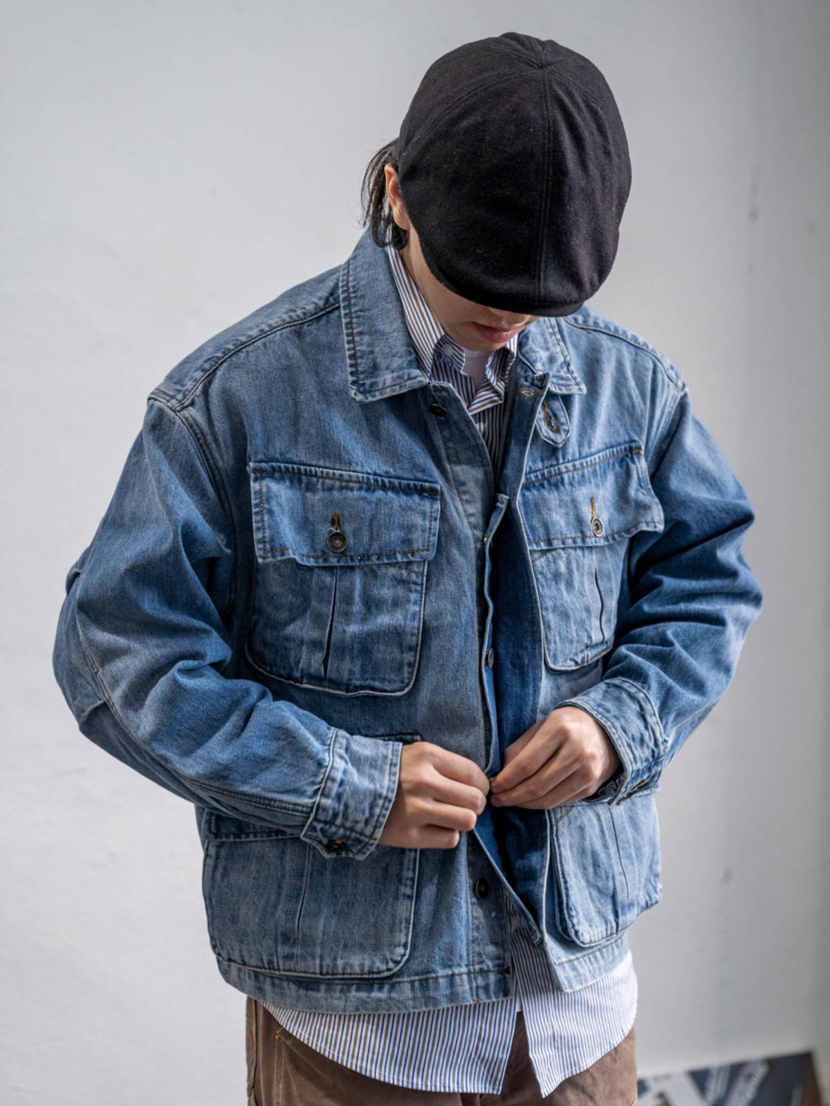 19世紀のアメリカ西部の精神を受け継ぐこのウォッシュデニムジャケットは、アメリカンクラシックワークウェアの伝統を継承し、特別な加工を施したウォッシュデニム生地が、ユニークなレトロな雰囲気と快適な質感を提供します。