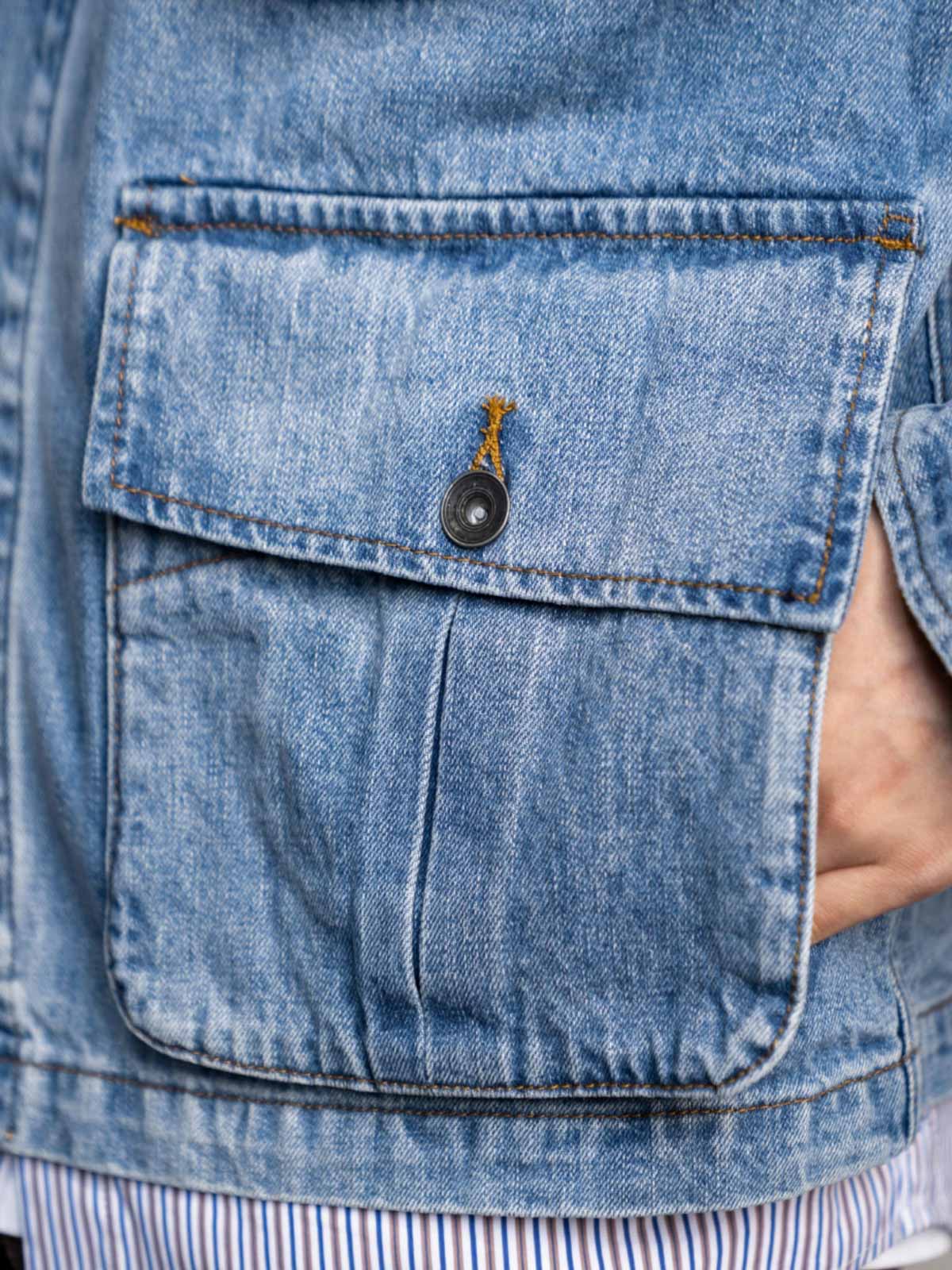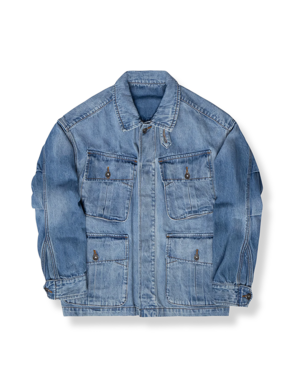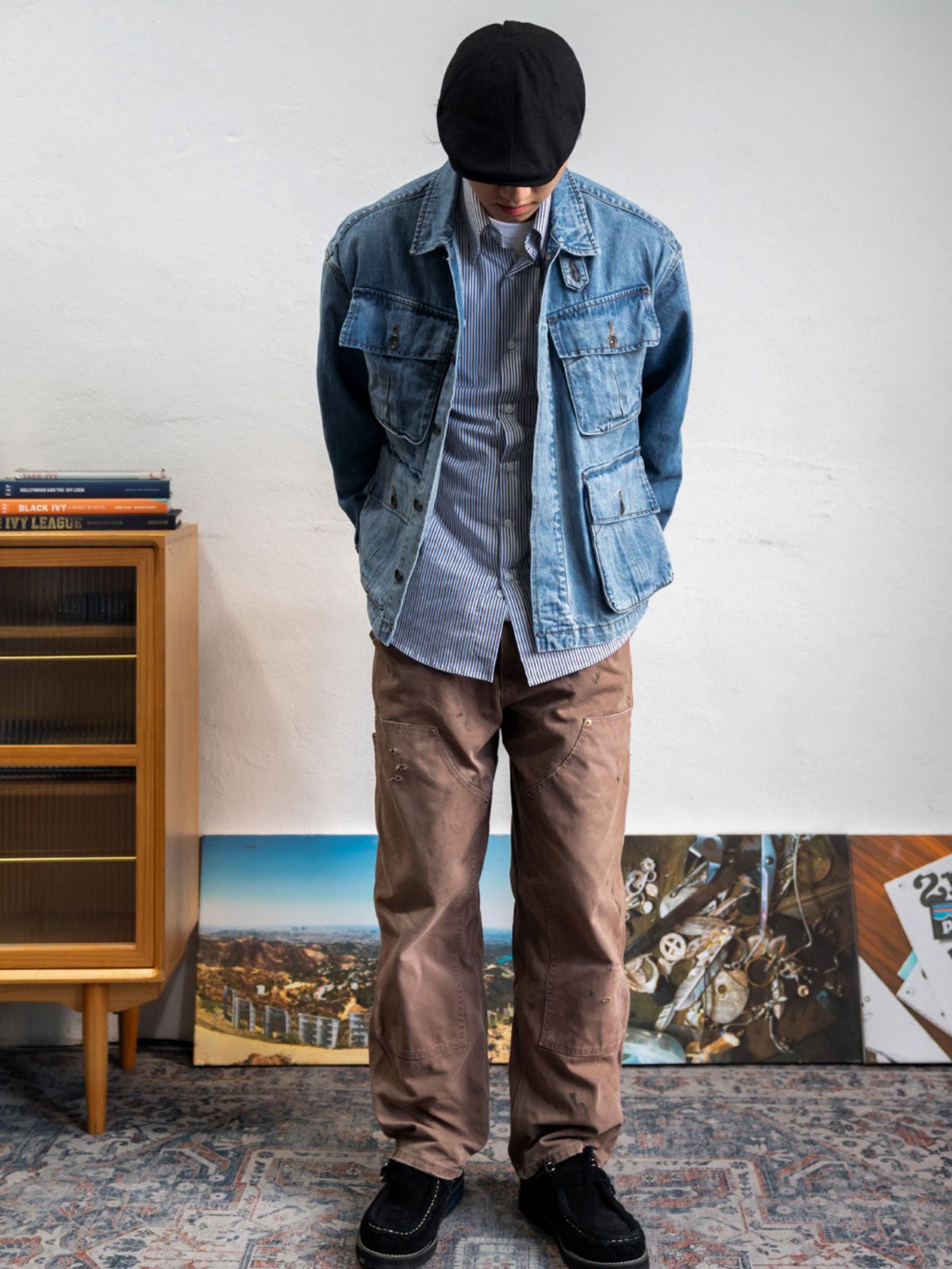 19世紀のアメリカ西部の精神を受け継ぐこのウォッシュデニムジャケットは、アメリカンクラシックワークウェアの伝統を継承し、特別な加工を施したウォッシュデニム生地が、ユニークなレトロな雰囲気と快適な質感を提供します。