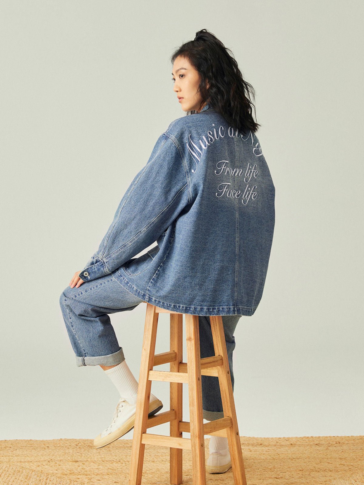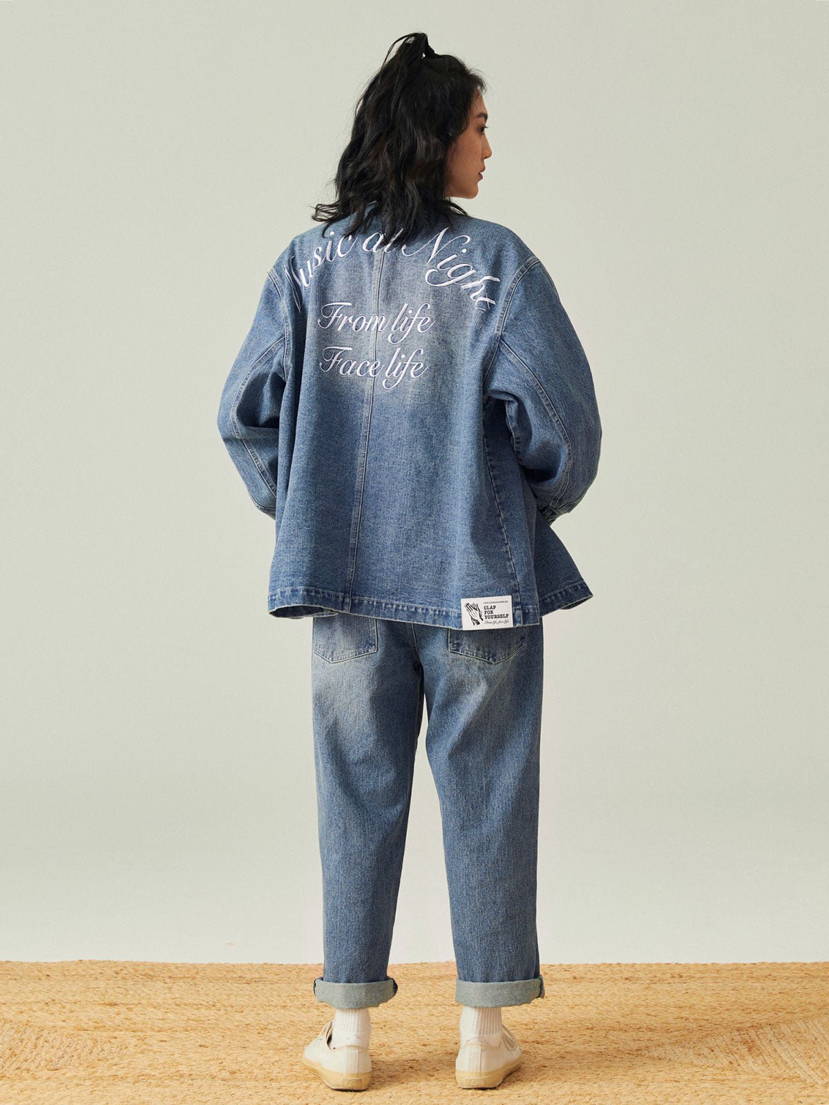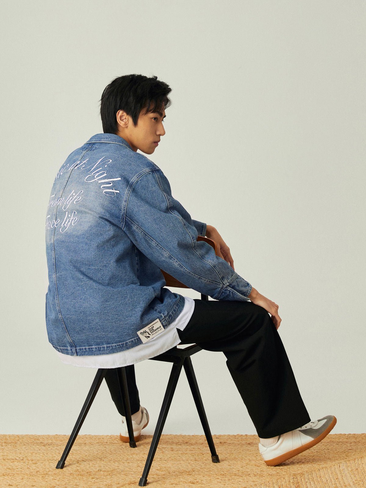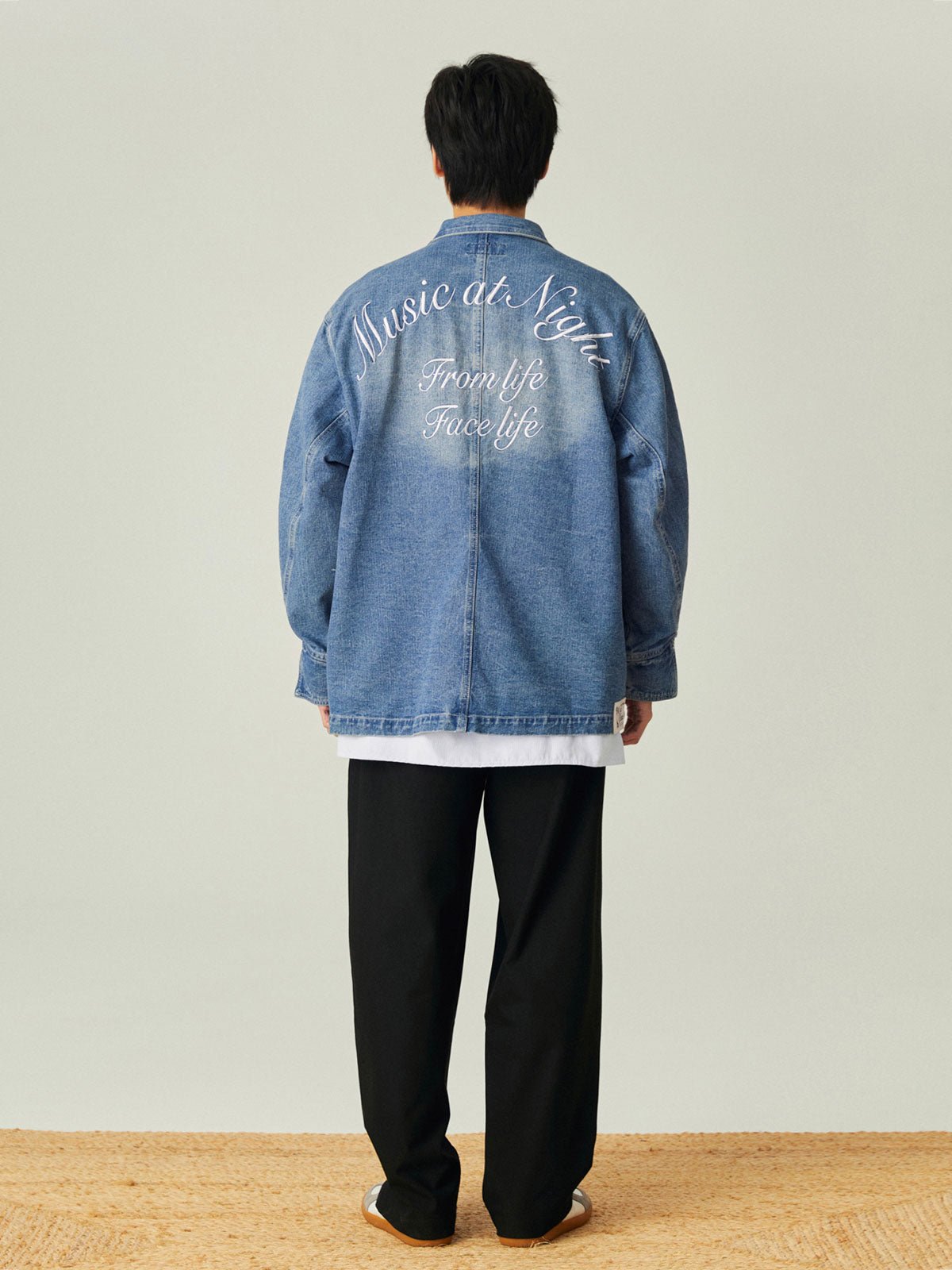 このレトロなワークスタイルのルーズフィットデニムジャケットは、アシンメトリーポケットデザインと精巧な刺繍を組み合わせ、ファッション性と実用性の完璧な融合を実現しています。