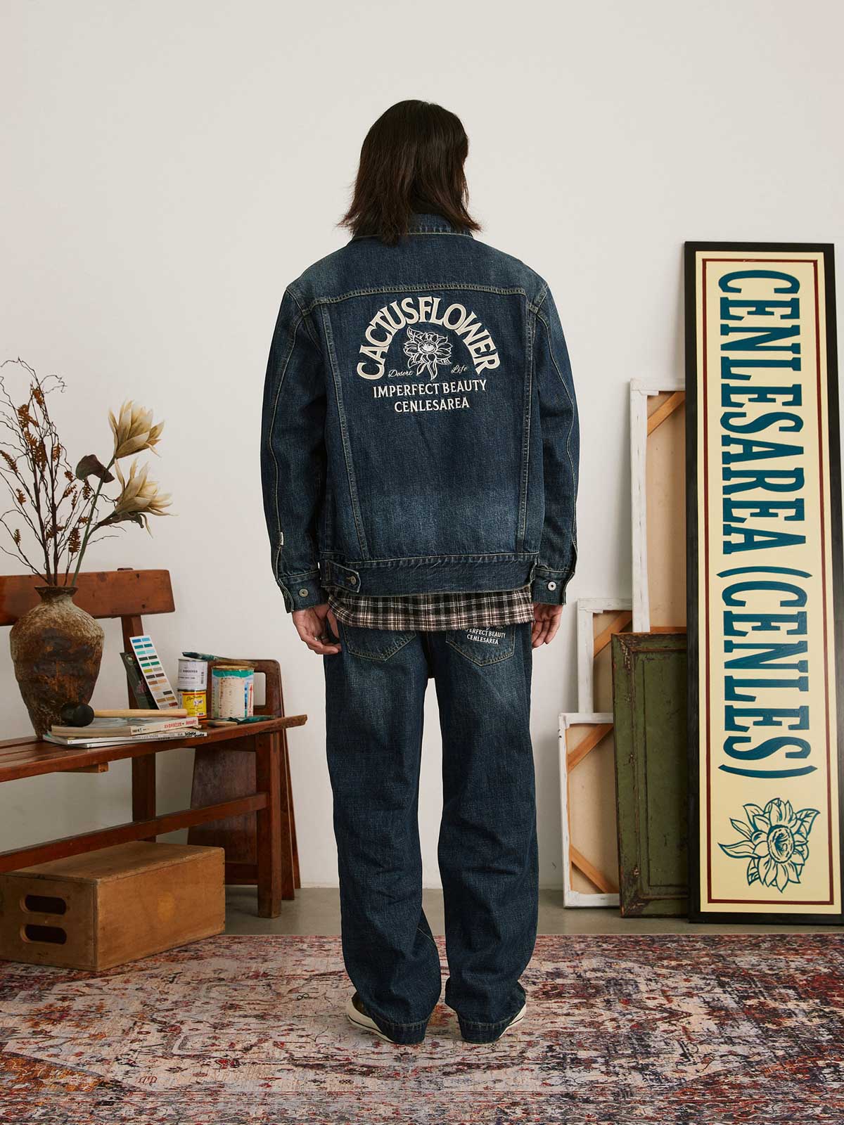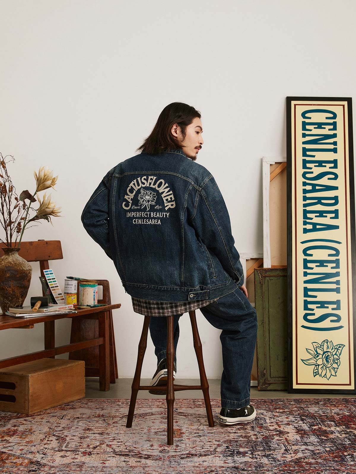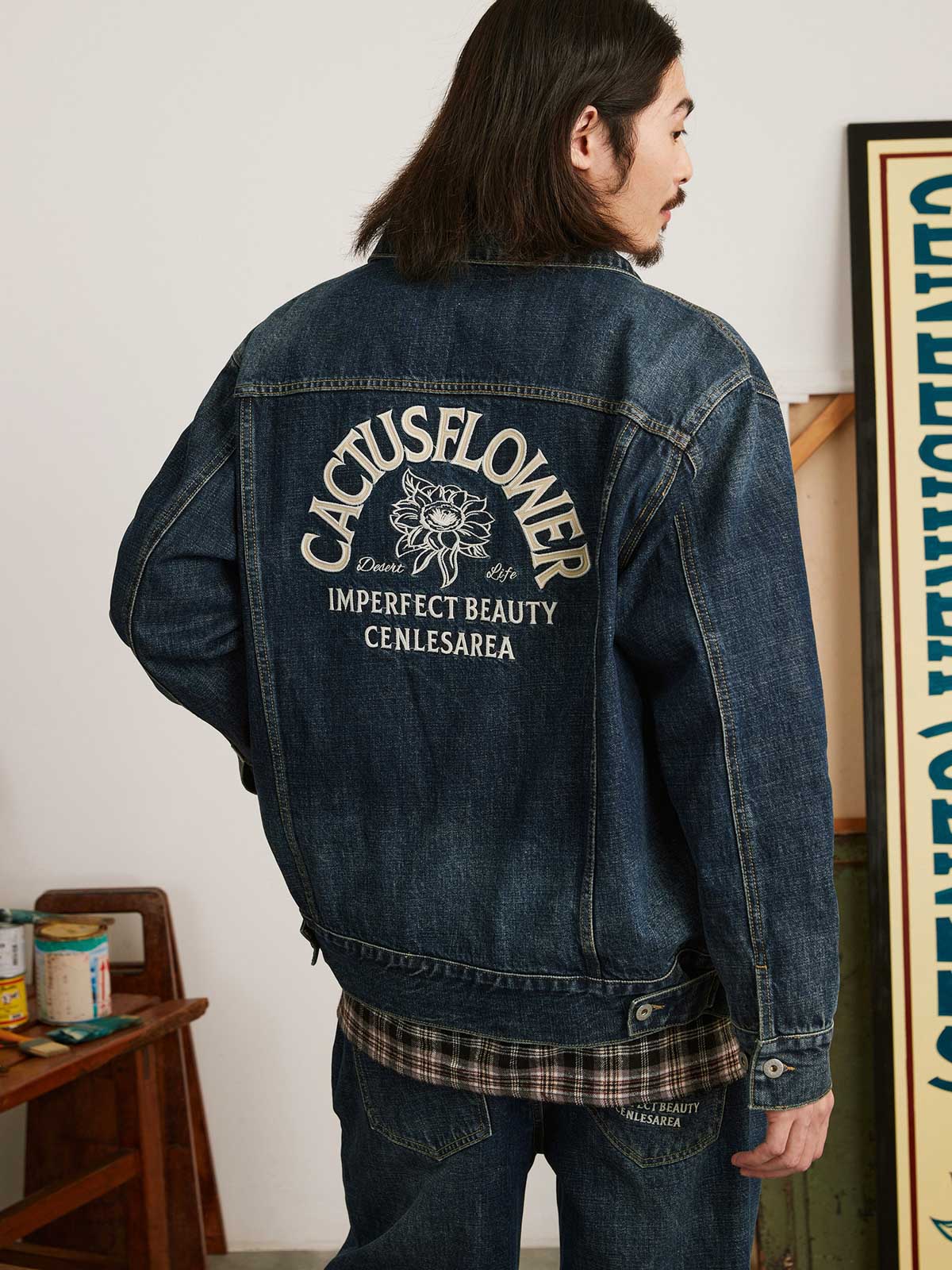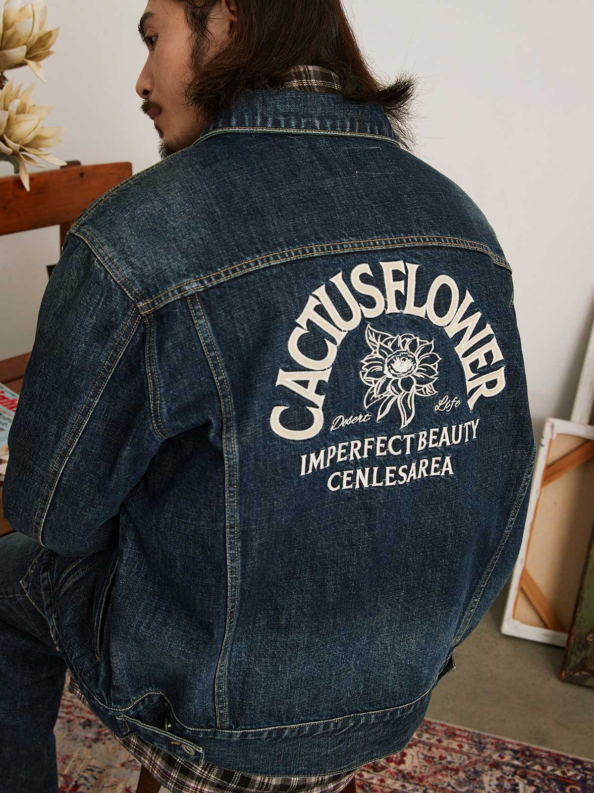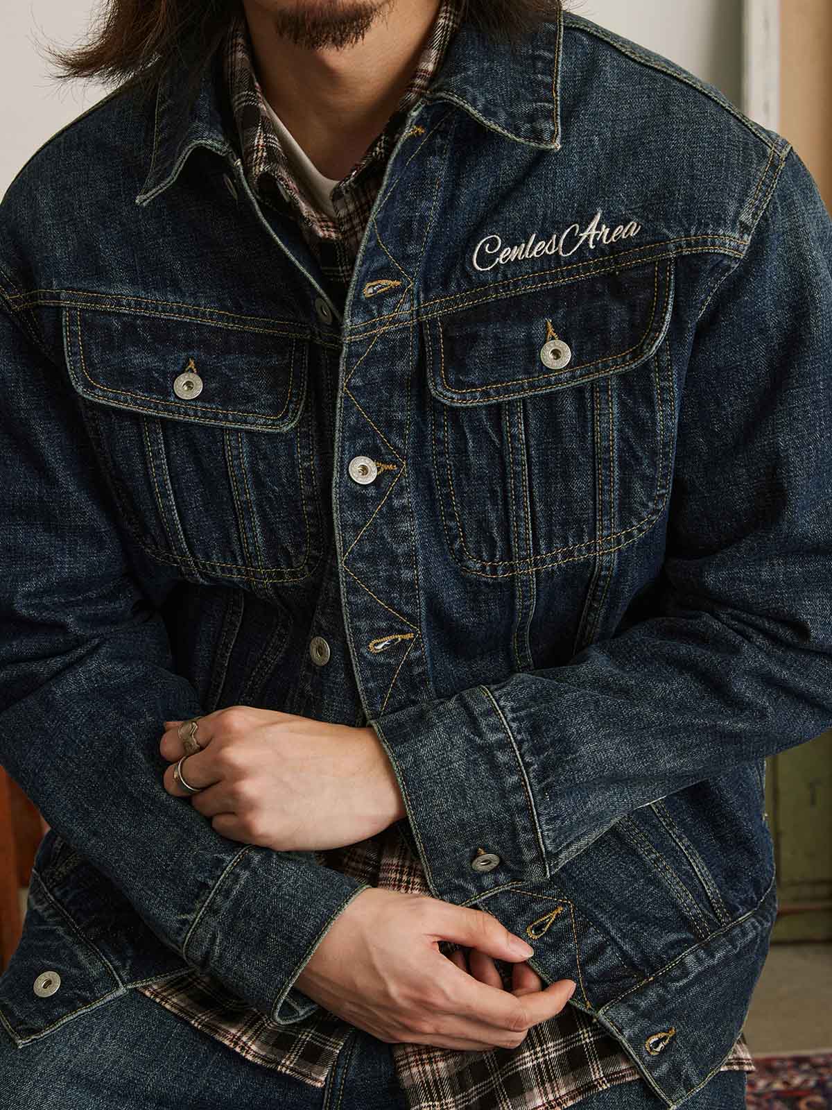 この刺繍ヴィンテージ加工デニムジャケットは、60年代と70年代のクラシックなデニムジャケットからインスピレーションを受けてデザインされ、100%コットンの12.5OZツイルデニム生地を使用しています。ジャケットは、ストーンウォッシュと酵素ウォッシュの加工により、自然な色落ち効果を持ち、縫い目の立体感が際立ち、レトロな雰囲気が漂います。スプレーマルキュ工芸により、ジャケットに不均一な色の深浅が加わり、視覚的なインパクトが強まります。ディテール面では、襟部分に60年代と70年代のクラシックなジグザグステッチが施され、ヴィンテージ感を増しています。ボタンには月桂樹の刻印が施され、使い込まれた風合いを出しています。袖にはブランドのカスタムフラッグラベルが付き、精緻で質感のある表現力が全体のスタイルを引き立てます。背面には文字のパッチワーク刺繍とブランドロゴ「サボテンフラワー」の刺繍が施され、胸元にはブランド名の刺繍が入り、どれも二色使いでデニムジャケットに独自性と個性を加えています。クラシックなデニムブルーのカラーバリエーションで、永遠のファッション魅力を提供します。