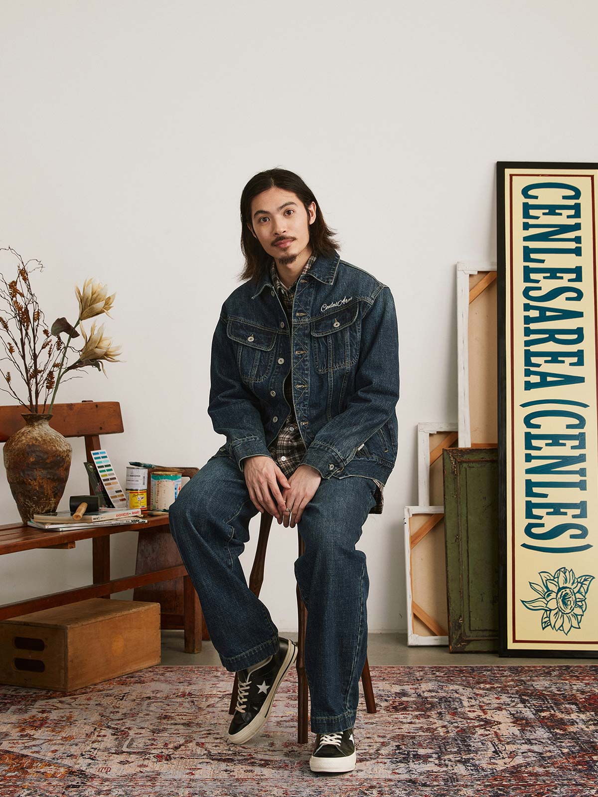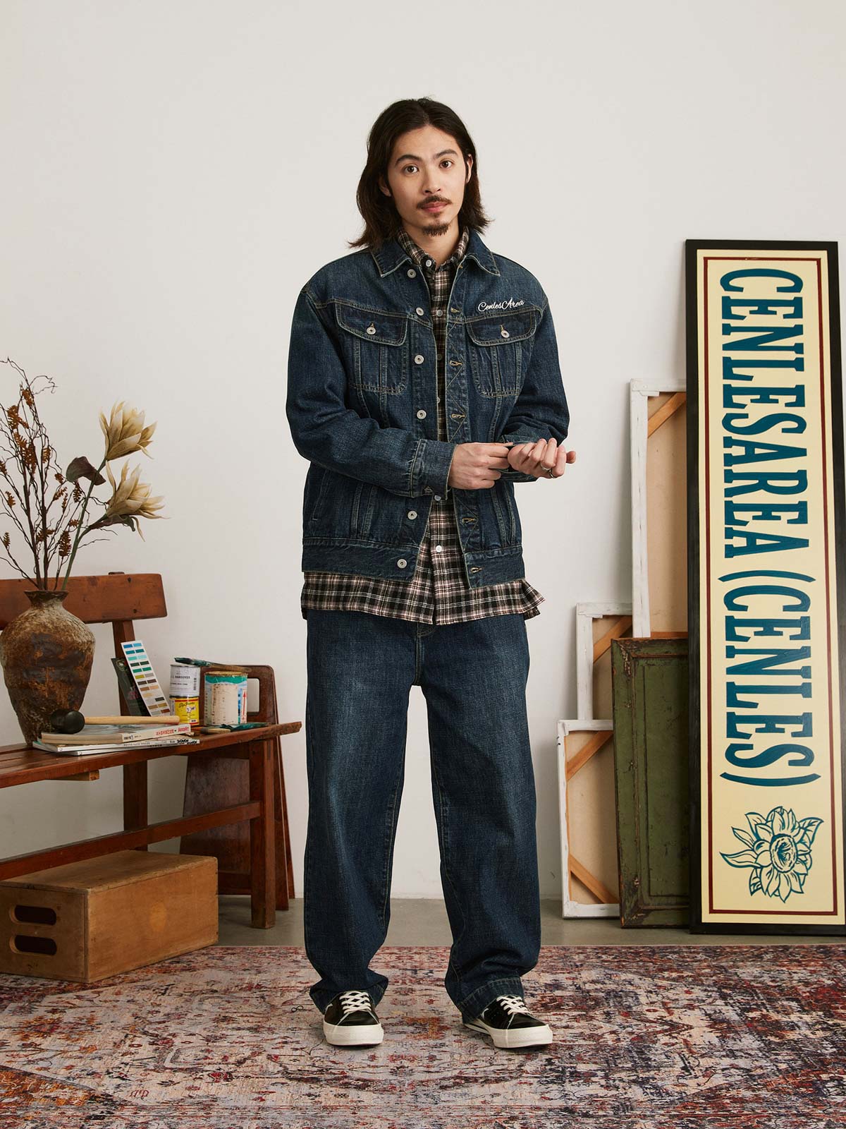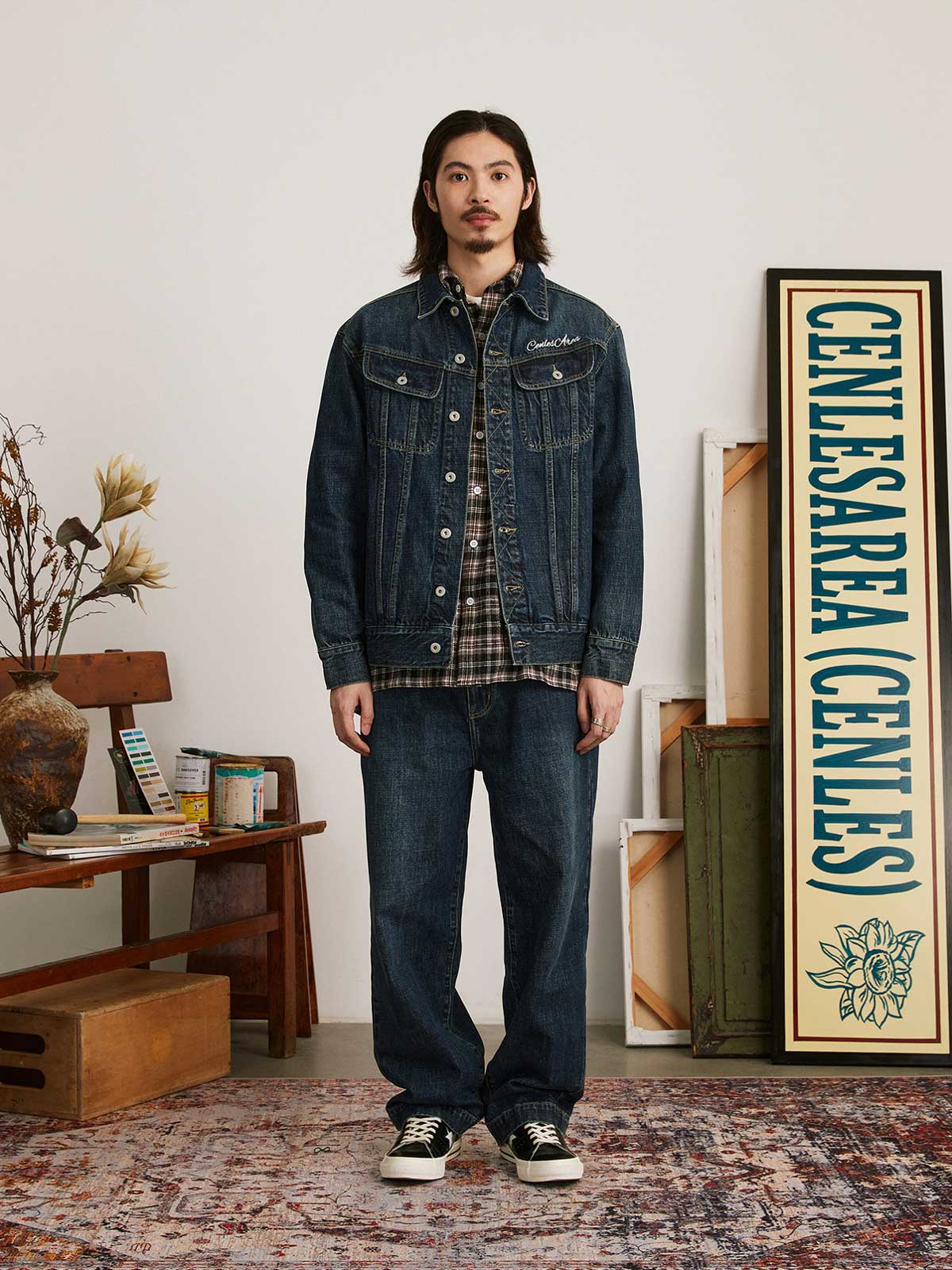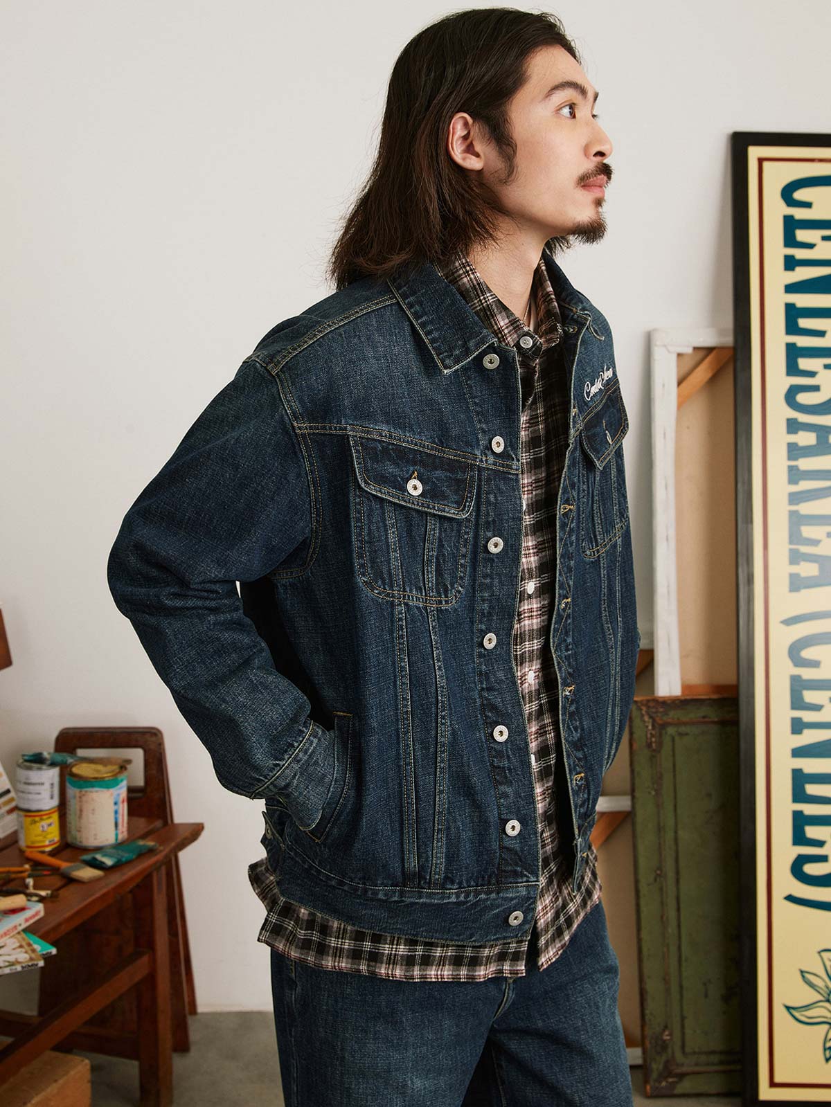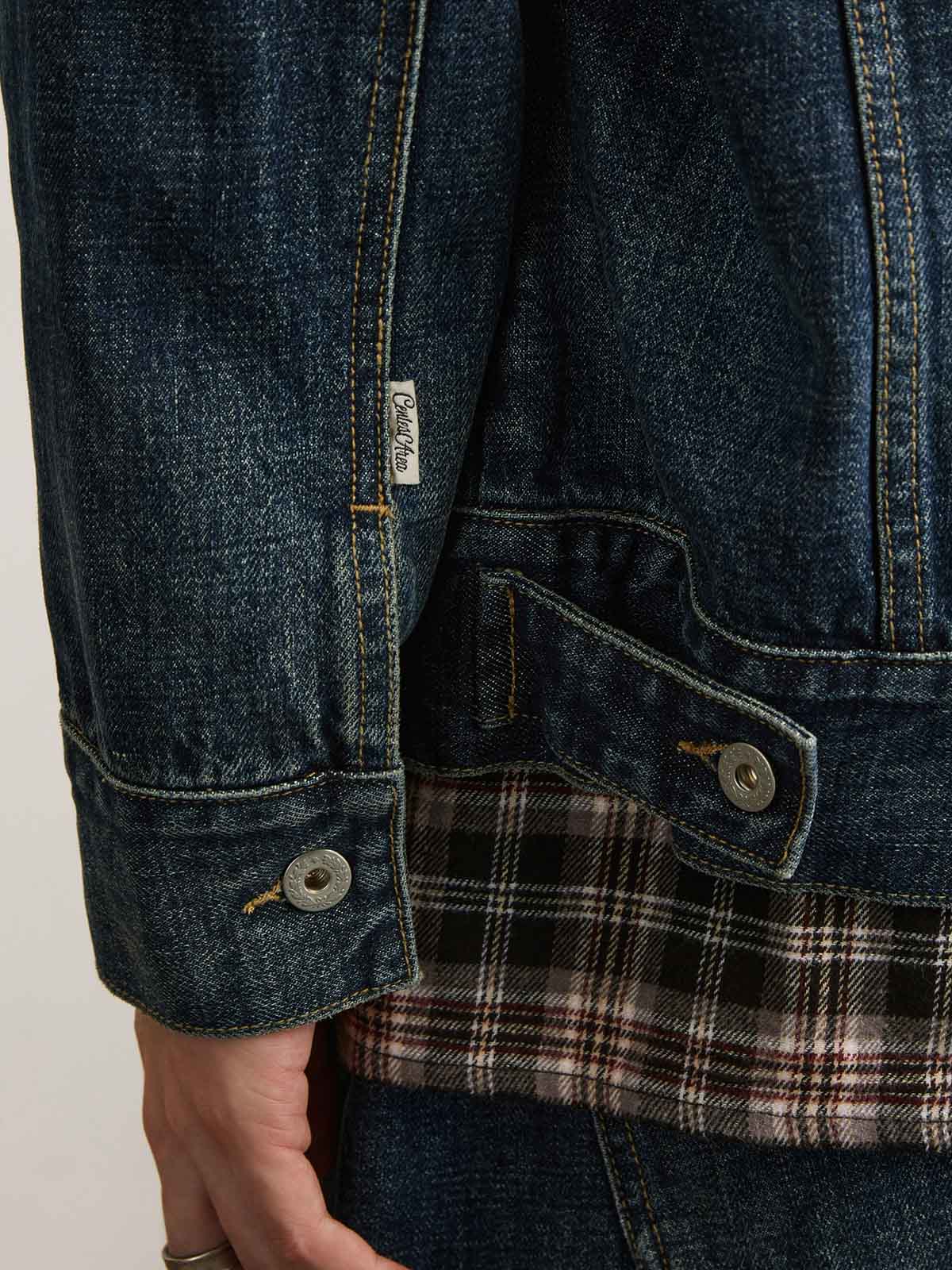 この刺繍ヴィンテージ加工デニムジャケットは、60年代と70年代のクラシックなデニムジャケットからインスピレーションを受けてデザインされ、100%コットンの12.5OZツイルデニム生地を使用しています。ジャケットは、ストーンウォッシュと酵素ウォッシュの加工により、自然な色落ち効果を持ち、縫い目の立体感が際立ち、レトロな雰囲気が漂います。スプレーマルキュ工芸により、ジャケットに不均一な色の深浅が加わり、視覚的なインパクトが強まります。ディテール面では、襟部分に60年代と70年代のクラシックなジグザグステッチが施され、ヴィンテージ感を増しています。ボタンには月桂樹の刻印が施され、使い込まれた風合いを出しています。袖にはブランドのカスタムフラッグラベルが付き、精緻で質感のある表現力が全体のスタイルを引き立てます。背面には文字のパッチワーク刺繍とブランドロゴ「サボテンフラワー」の刺繍が施され、胸元にはブランド名の刺繍が入り、どれも二色使いでデニムジャケットに独自性と個性を加えています。クラシックなデニムブルーのカラーバリエーションで、永遠のファッション魅力を提供します。