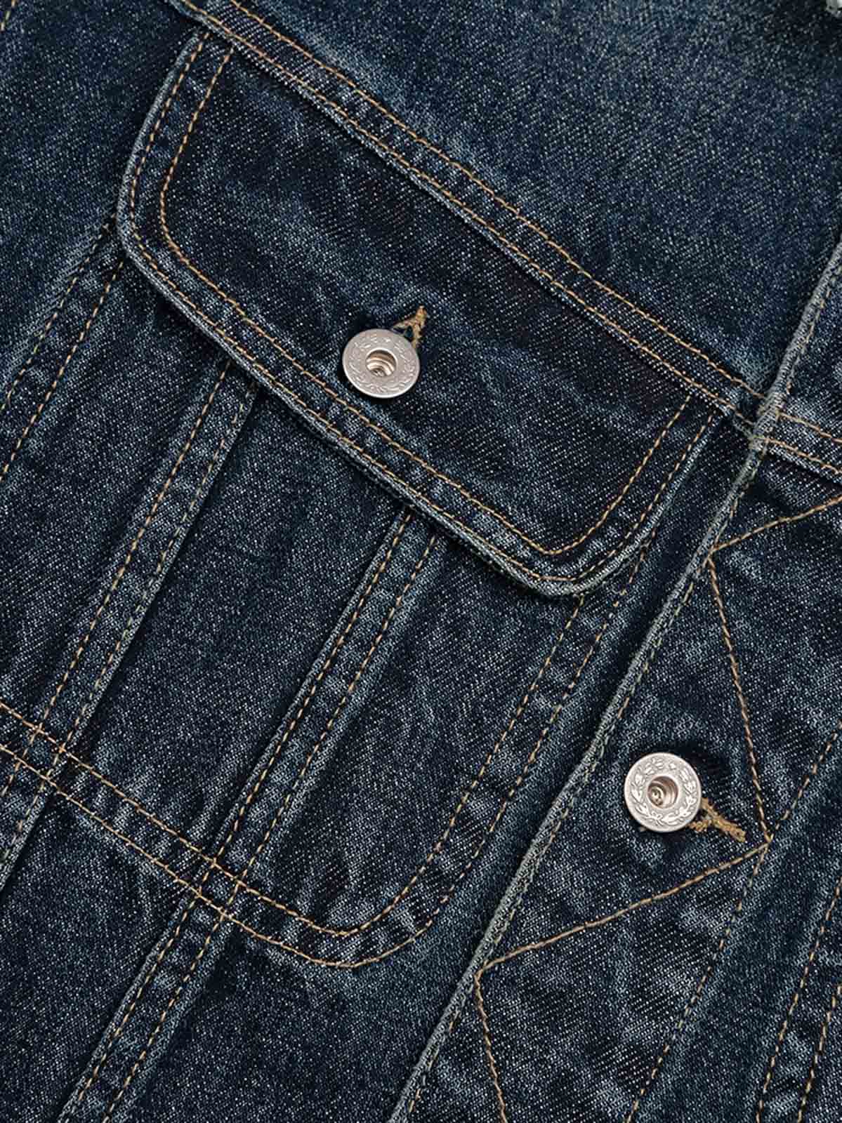 クラシックなレトロ刺繍ヴィンテージ加工デニムジャケットは、汎用性が高く耐久性に優れた、永遠のファッションアイテム。