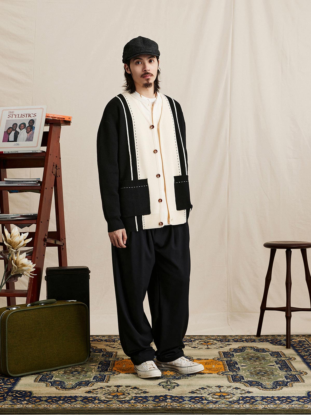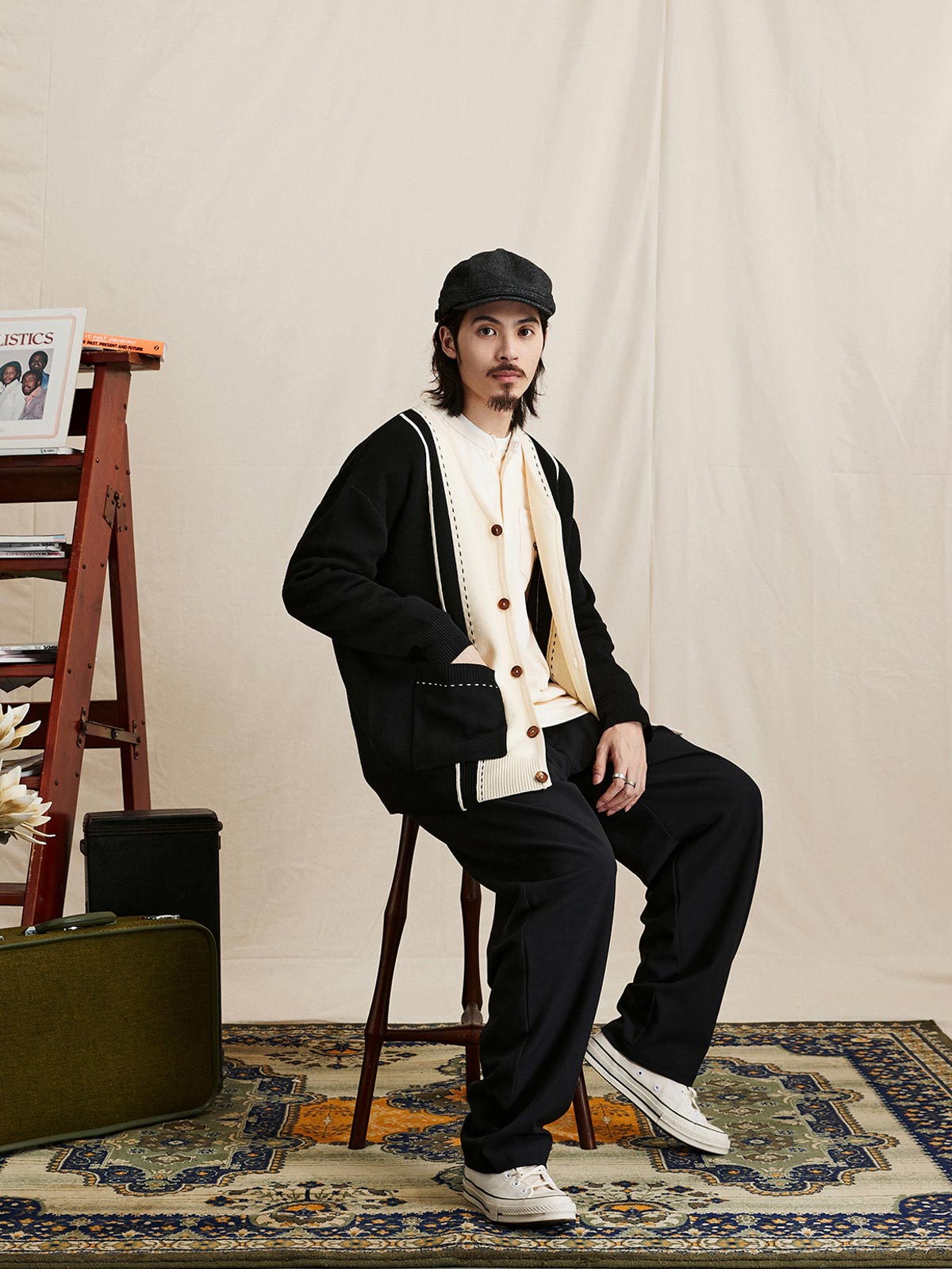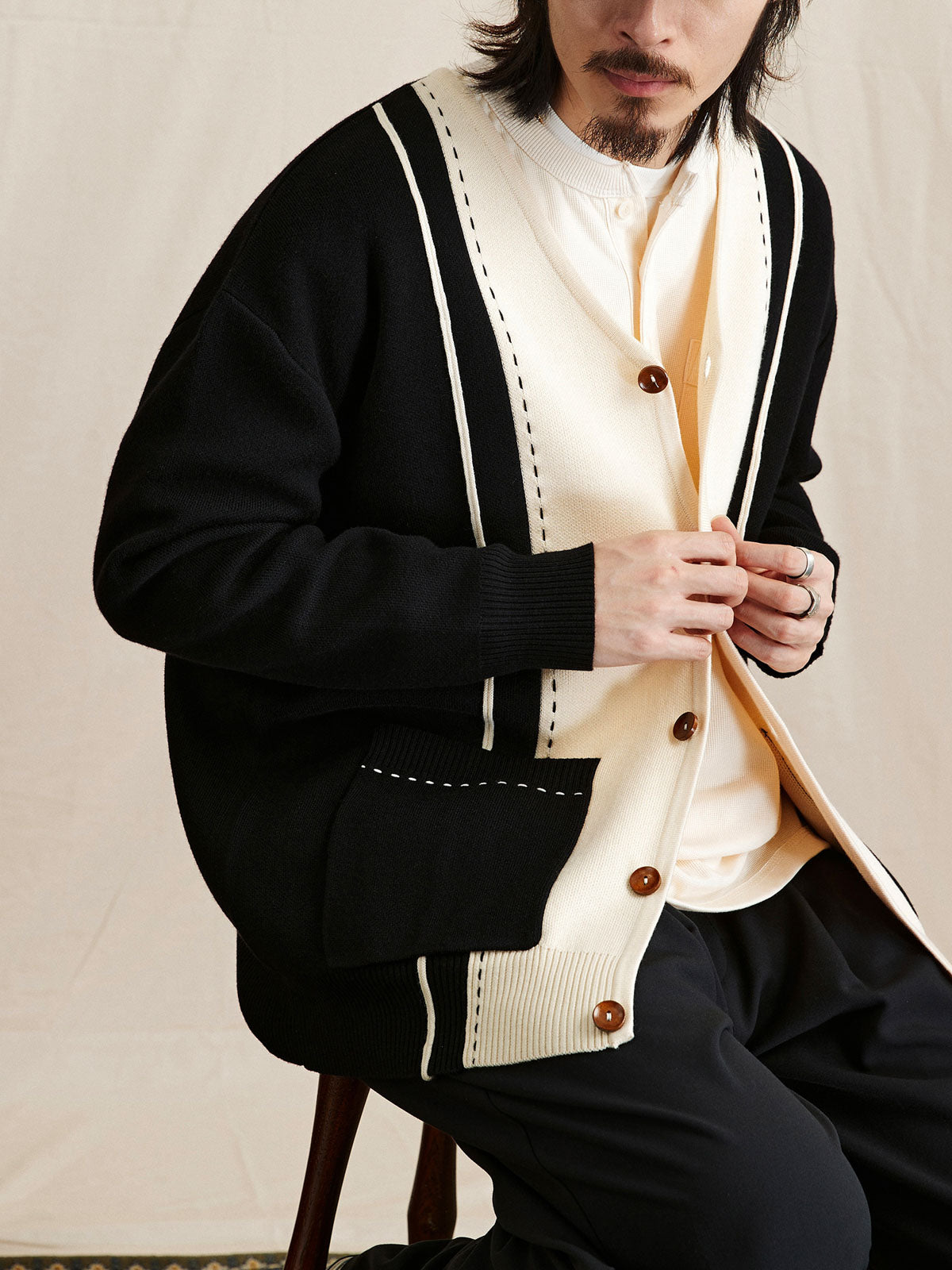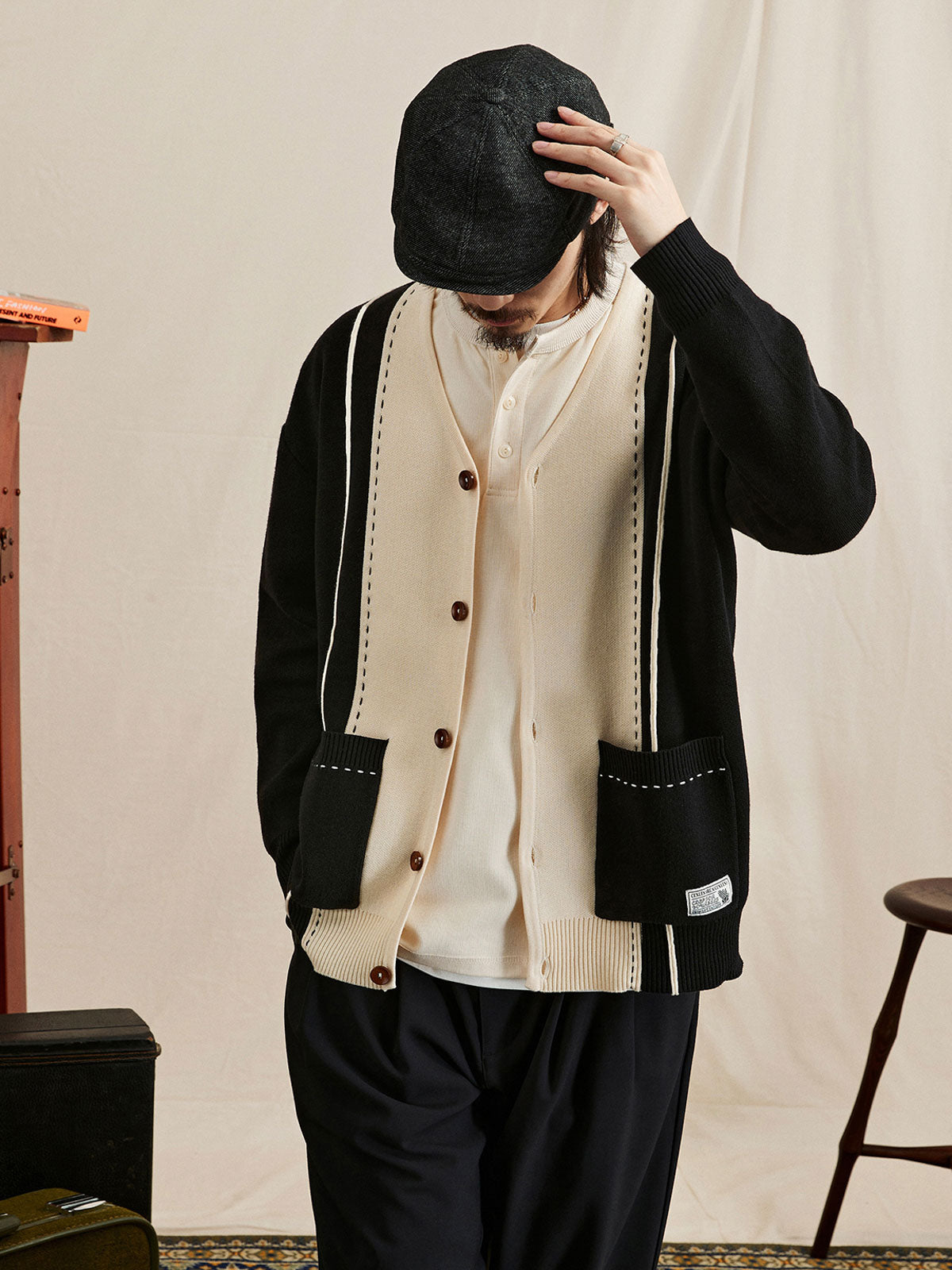 開襟ウールカーディガンは、中世のイギリスとフランスの漁師の服装から始まり、伝統的なプルオーバーの不便さを解消するためにボタン付きデザインに改良され、19世紀の第7代カーディガン伯爵にちなんで「カーディガン」と名付けられました。本カーディガンは、抗ピリングウール混紡糸を使用しており、6%ウール、30%アクリル、20%ナイロン、44%ポリエステルで構成されています。ウール混紡糸は、純ウールよりも手入れがしやすく、優れた保温性を提供し、日常の着用に適しています。デザイン面では、手作業のビーズエッジ刺繍と立体的なジャカード技術がレトロな質感と層次感を増しています。ボタンは、天然木製のボウル形ブラウンボタンを使用しており、自然な質感を加えています。黄緑のコントラストカラーと黒白のコントラストカラーの2種類のクラシックな配色があり、異なるスタイルのニーズに応えます。