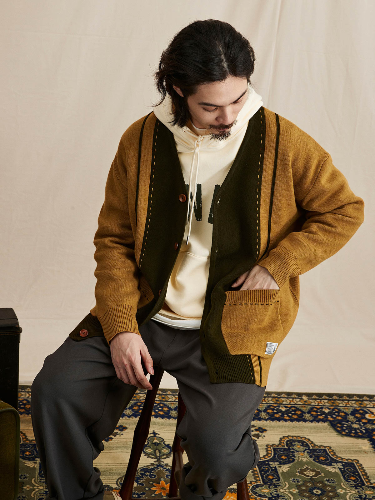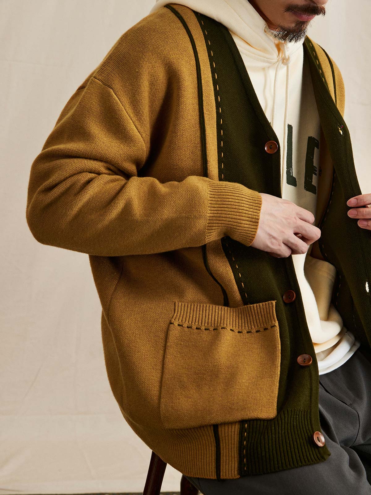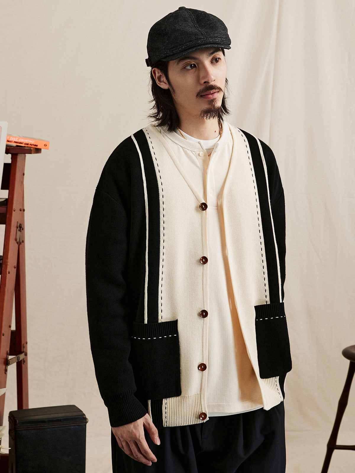 開襟ウールカーディガンは、中世のイギリスとフランスの漁師の服装から始まり、伝統的なプルオーバーの不便さを解消するためにボタン付きデザインに改良され、19世紀の第7代カーディガン伯爵にちなんで「カーディガン」と名付けられました。本カーディガンは、抗ピリングウール混紡糸を使用しており、6%ウール、30%アクリル、20%ナイロン、44%ポリエステルで構成されています。ウール混紡糸は、純ウールよりも手入れがしやすく、優れた保温性を提供し、日常の着用に適しています。デザイン面では、手作業のビーズエッジ刺繍と立体的なジャカード技術がレトロな質感と層次感を増しています。ボタンは、天然木製のボウル形ブラウンボタンを使用しており、自然な質感を加えています。黄緑のコントラストカラーと黒白のコントラストカラーの2種類のクラシックな配色があり、異なるスタイルのニーズに応えます。