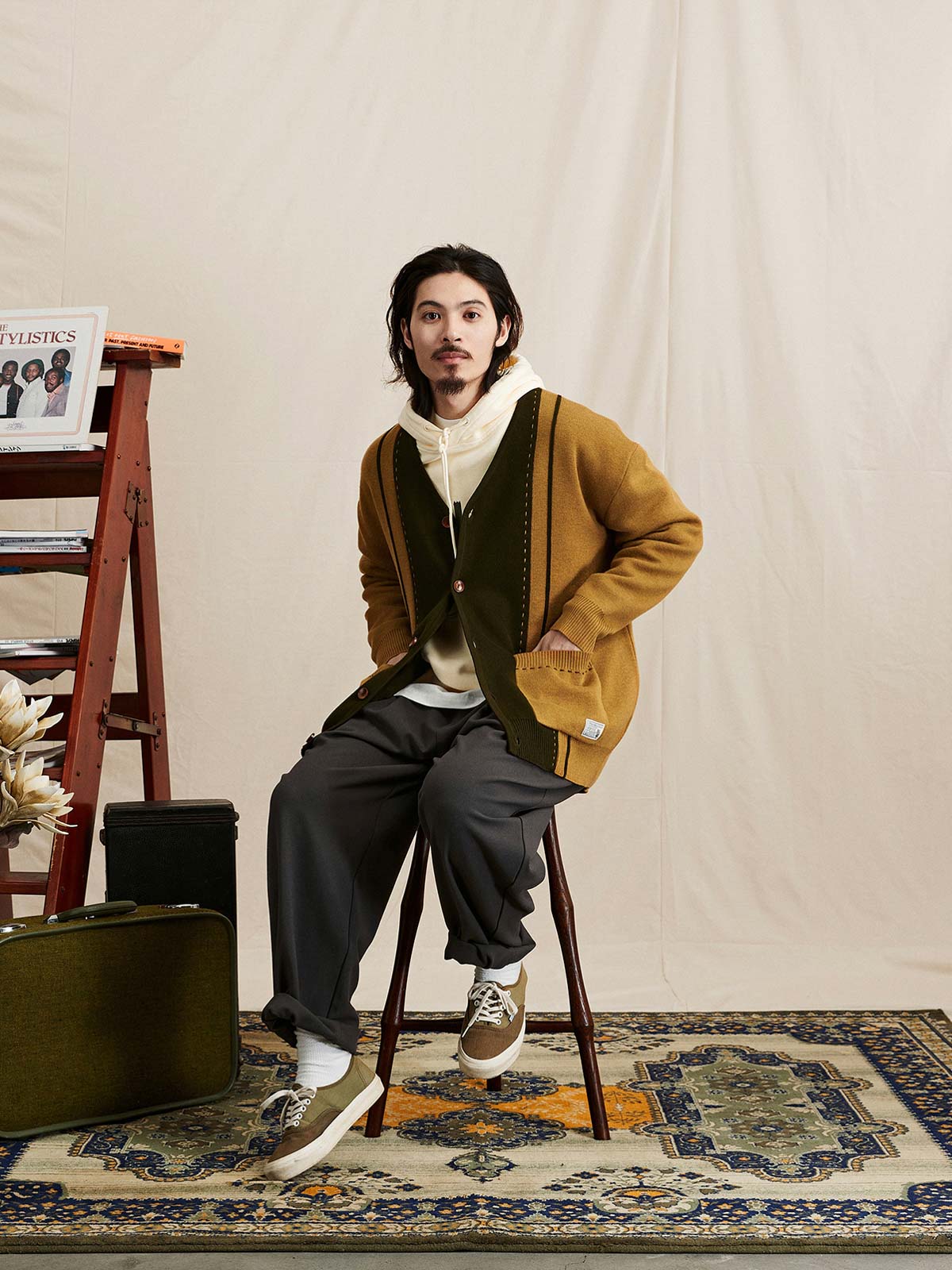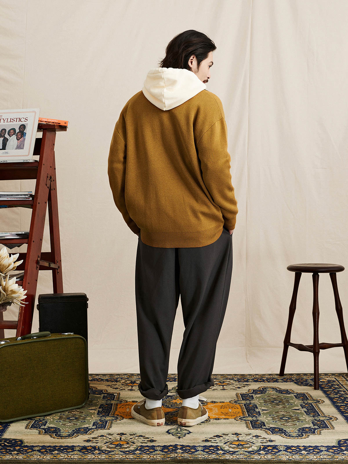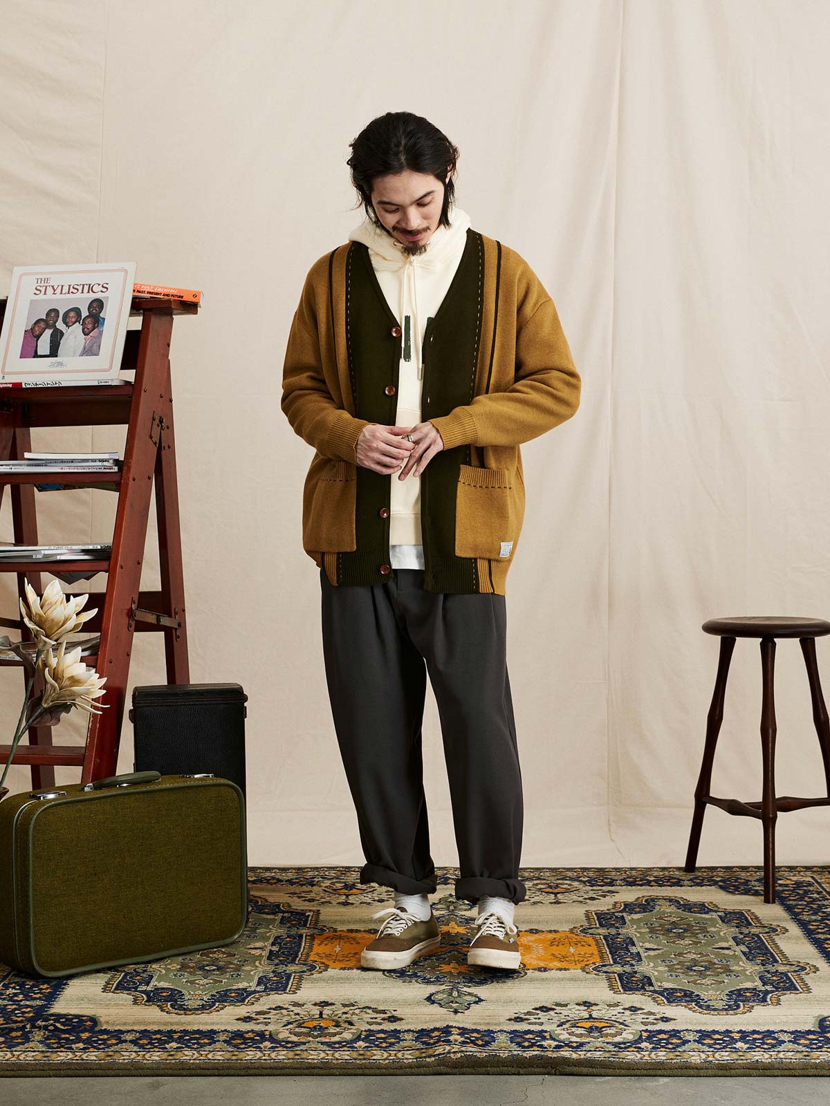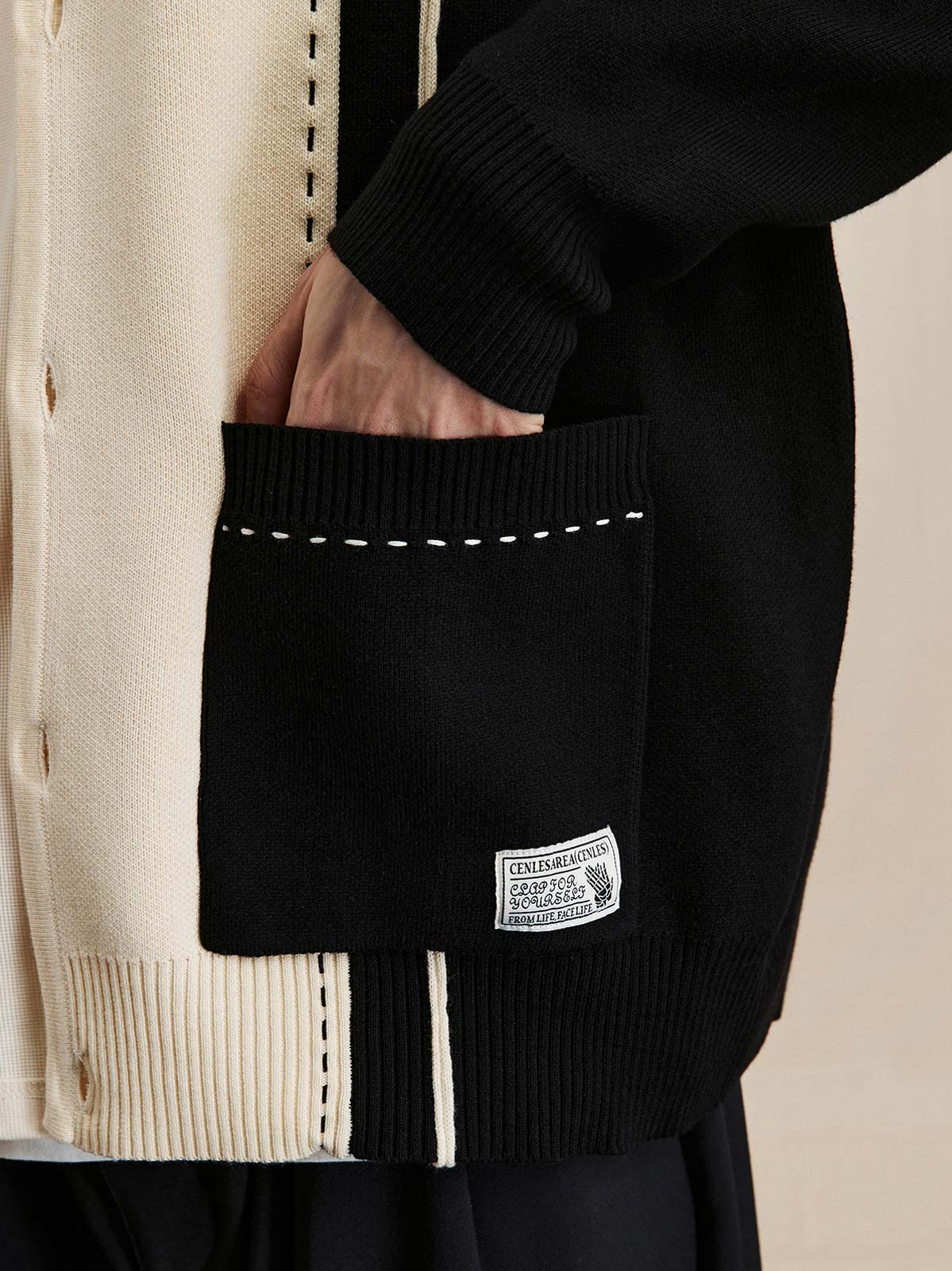 開襟ウールカーディガンは、中世のイギリスとフランスの漁師の服装から始まり、伝統的なプルオーバーの不便さを解消するためにボタン付きデザインに改良され、19世紀の第7代カーディガン伯爵にちなんで「カーディガン」と名付けられました。本カーディガンは、抗ピリングウール混紡糸を使用しており、6%ウール、30%アクリル、20%ナイロン、44%ポリエステルで構成されています。ウール混紡糸は、純ウールよりも手入れがしやすく、優れた保温性を提供し、日常の着用に適しています。デザイン面では、手作業のビーズエッジ刺繍と立体的なジャカード技術がレトロな質感と層次感を増しています。ボタンは、天然木製のボウル形ブラウンボタンを使用しており、自然な質感を加えています。黄緑のコントラストカラーと黒白のコントラストカラーの2種類のクラシックな配色があり、異なるスタイルのニーズに応えます。