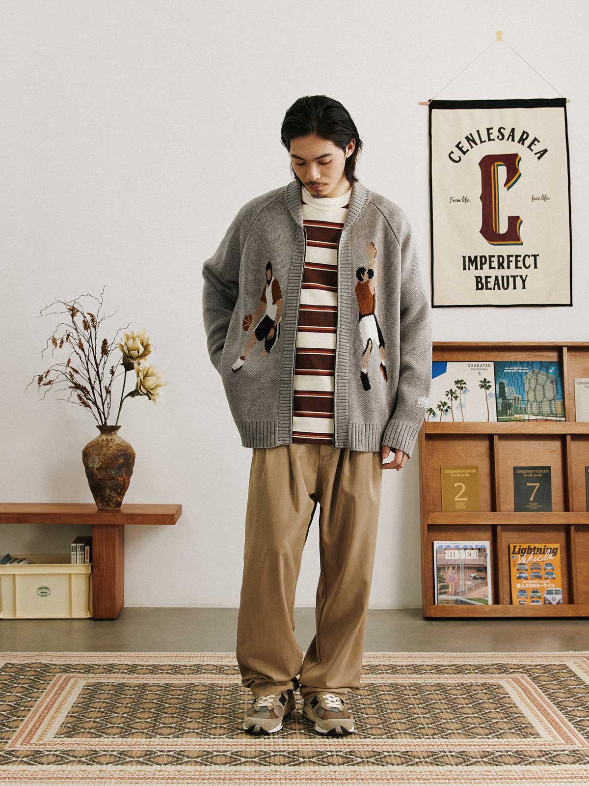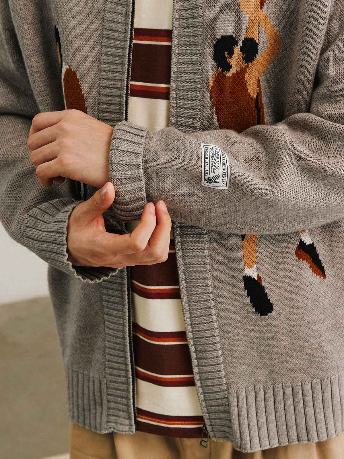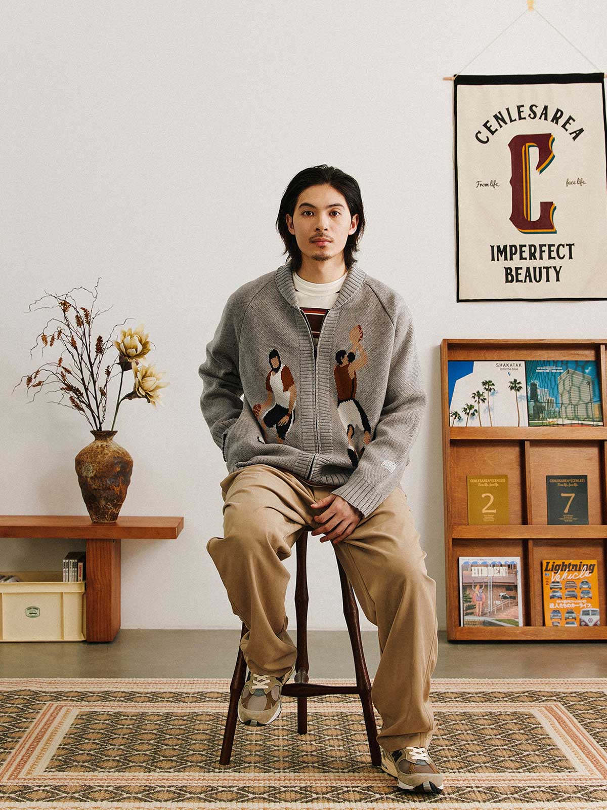 バスケエレメント コーウィッチン カーディガンセーターは、50年代と60年代のヴィンテージCOWICHANセーターをベースにデザインされており、抗ピリングウール混紡糸を使用して、全体の保温性と耐久性を確保しています。その成分は、6%ウール、30%アクリル、20%ナイロン、44%ポリエステルで、肌に優しく柔らかく、表面はフランネルのように快適で、抗ピリング特性により日常の手入れが容易です。全体に7ゲージのセサミステッチジャカードが施されており、フロントの両側にはレトロなバスケットボール要素がデザインされています。裾には42リブ編みと21リブ編みの組み合わせが施され、繊細な質感を高めています。このセーターは、優れた保温効果を提供するだけでなく、バスケットボール要素によって強い現代感を演出し、スタイルと暖かさを兼ね備えたクラシックなレトロアイテムです