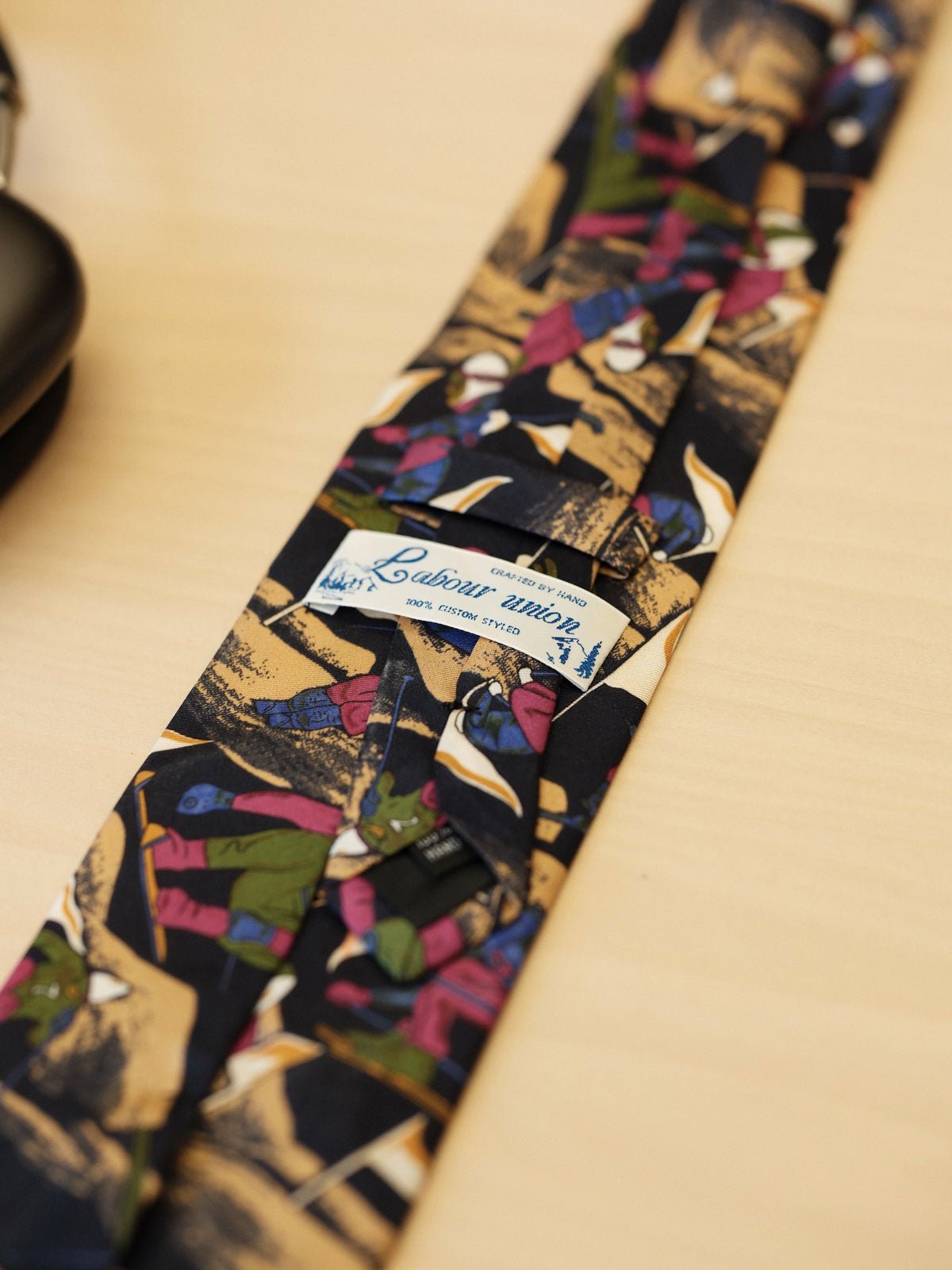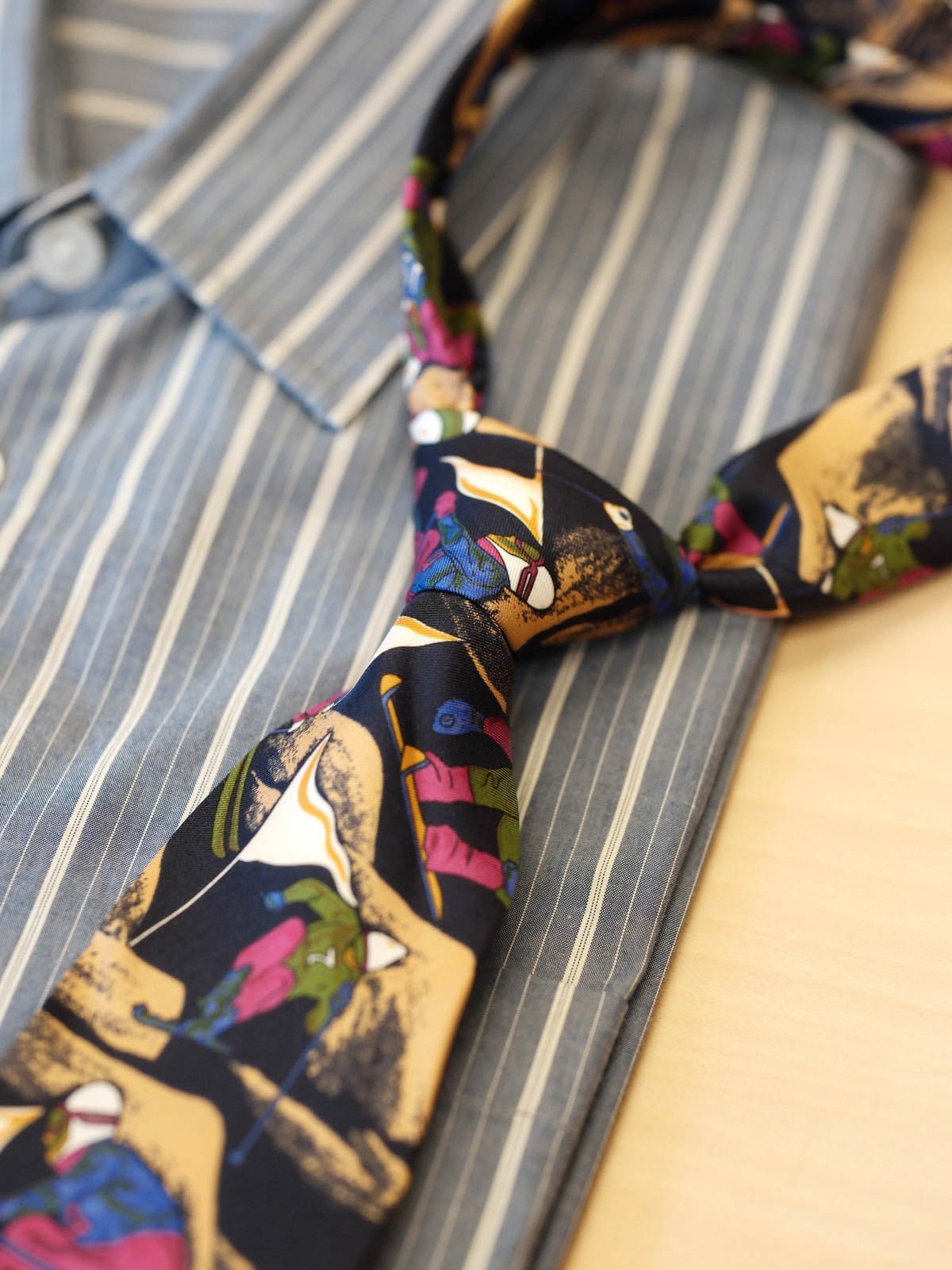 このシルククロスカントリースキープリントネクタイは、100%シルク素材を使用しており、柔らかく滑らかな質感と上品な光沢感を持っています。プリントデザインは、60年代のクラシックな要素からインスピレーションを得ており、紳士的な優雅さを演出します。独特なプリント柄がネクタイの視覚的な魅力を増し、ヴィンテージ感を漂わせます。フォーマルな装いにもカジュアルな装いにもマッチし、全体のスタイルに品位とファッション性を加えます。品位とスタイルを求める方に最適な選択です。また、プレゼントとしてもオススメです。
