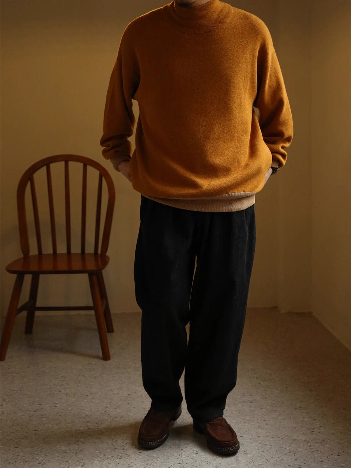 このカシミヤタートルネックニットは単品で着用し、シンプルな現代感を演出することができます。また、スーツやトレンチコートのインナーとしても、レイヤード感溢れるビジネスカジュアルスタイルを作り出します。