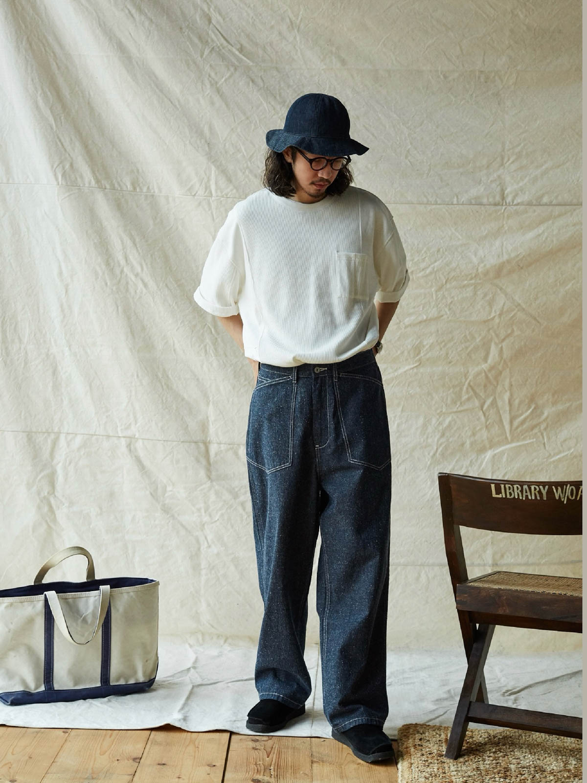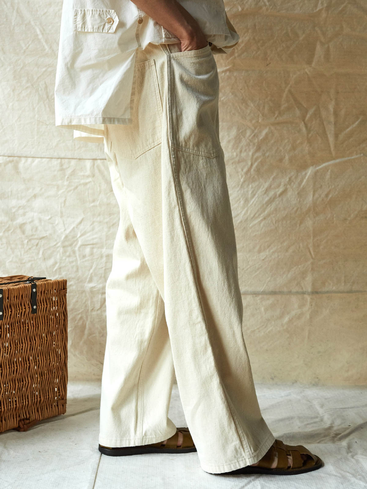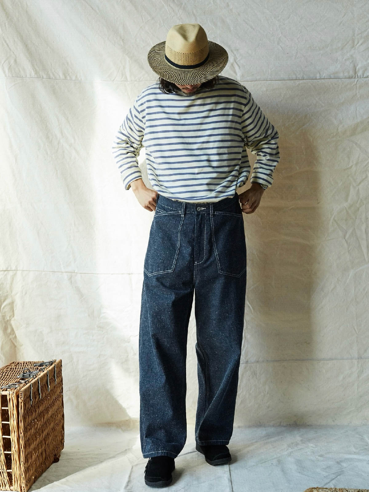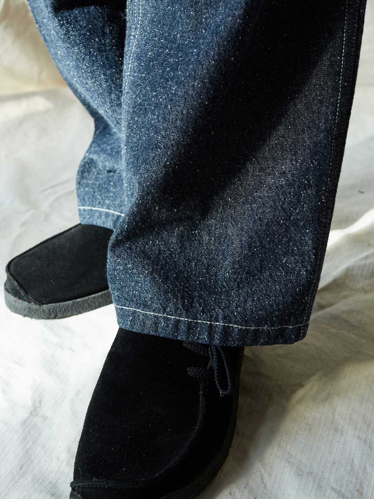 1935年のM35軍パンをデザインインスピレーションにしており、シグネチャーのストレートカットやデザインディテールを受け継いでいます。両側の大きなパッチポケット、金属ボタン、後部の調整可能なクロッチなど、独自の高密度なコットン糸を使用し、布地の色合いが豊かで色落ちしにくい特徴があります。酵素洗浄加工により、独特のテクスチャー感とヴィンテージ感が生まれました。ロウデニムバージョンにはコットンスラブ糸が追加され、生地に粒状感と立体感を与えています。アイボリーカラーのバージョンは、高密度のコットン素材で、自然で快適な着心地を提供します。パンツの型は初期のM35軍パンのゆったりとしたストレートカットを採用し、フロントの大きなパッチポケットで実用性を高め、右前ポケット内には小さなポケットを配置しています。後腰には調整可能なループと金属バックルがあり、フィット感とスタイル感を向上させています。縫製は内側の縫い目にフラットシームステッチを採用し、ディテールにこだわった仕上がりです。ヴィンテージスタイルからモダンなカジュアルコーディネートまで、このデニムパンツは多様なスタイルに対応します。
