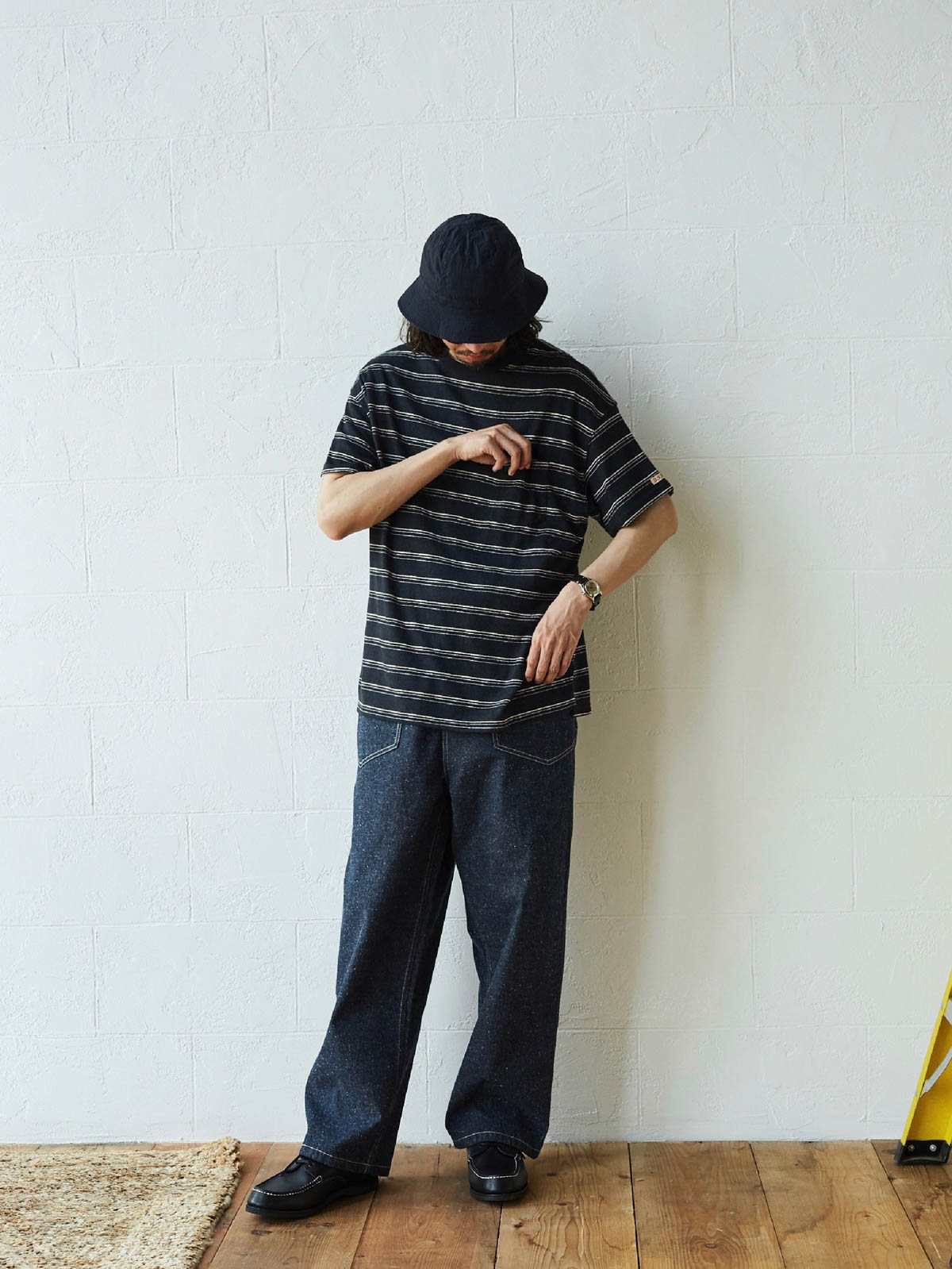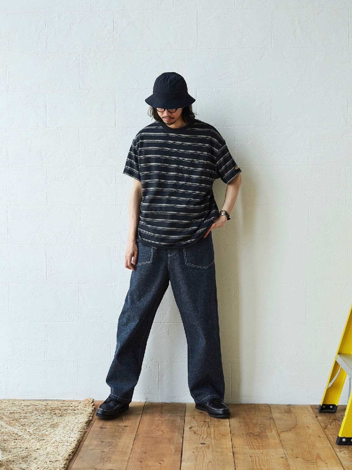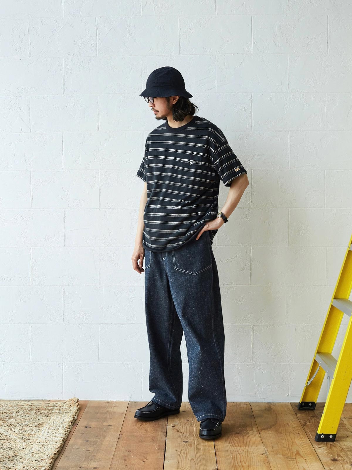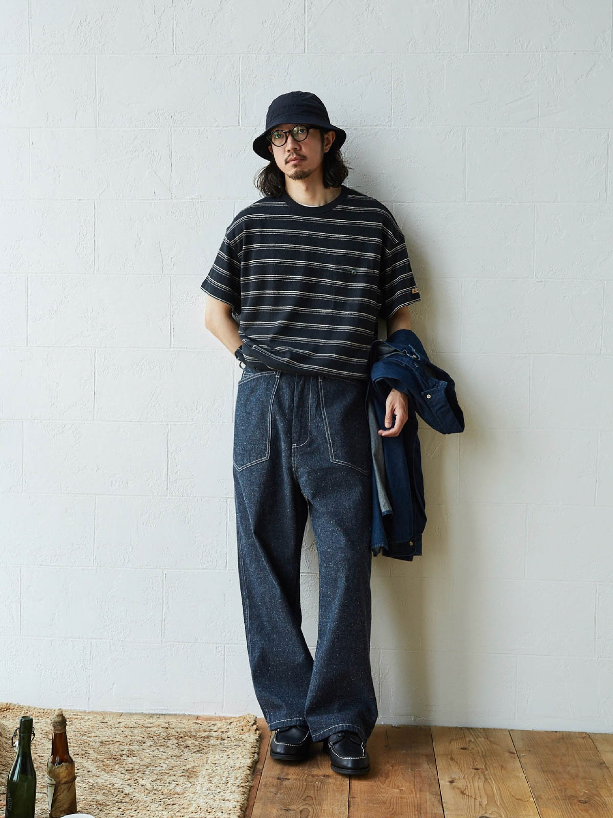 1935年のM35軍パンをデザインインスピレーションにしており、シグネチャーのストレートカットやデザインディテールを受け継いでいます。両側の大きなパッチポケット、金属ボタン、後部の調整可能なクロッチなど、独自の高密度なコットン糸を使用し、布地の色合いが豊かで色落ちしにくい特徴があります。酵素洗浄加工により、独特のテクスチャー感とヴィンテージ感が生まれました。ロウデニムバージョンにはコットンスラブ糸が追加され、生地に粒状感と立体感を与えています。アイボリーカラーのバージョンは、高密度のコットン素材で、自然で快適な着心地を提供します。パンツの型は初期のM35軍パンのゆったりとしたストレートカットを採用し、フロントの大きなパッチポケットで実用性を高め、右前ポケット内には小さなポケットを配置しています。後腰には調整可能なループと金属バックルがあり、フィット感とスタイル感を向上させています。縫製は内側の縫い目にフラットシームステッチを採用し、ディテールにこだわった仕上がりです。ヴィンテージスタイルからモダンなカジュアルコーディネートまで、このデニムパンツは多様なスタイルに対応します。