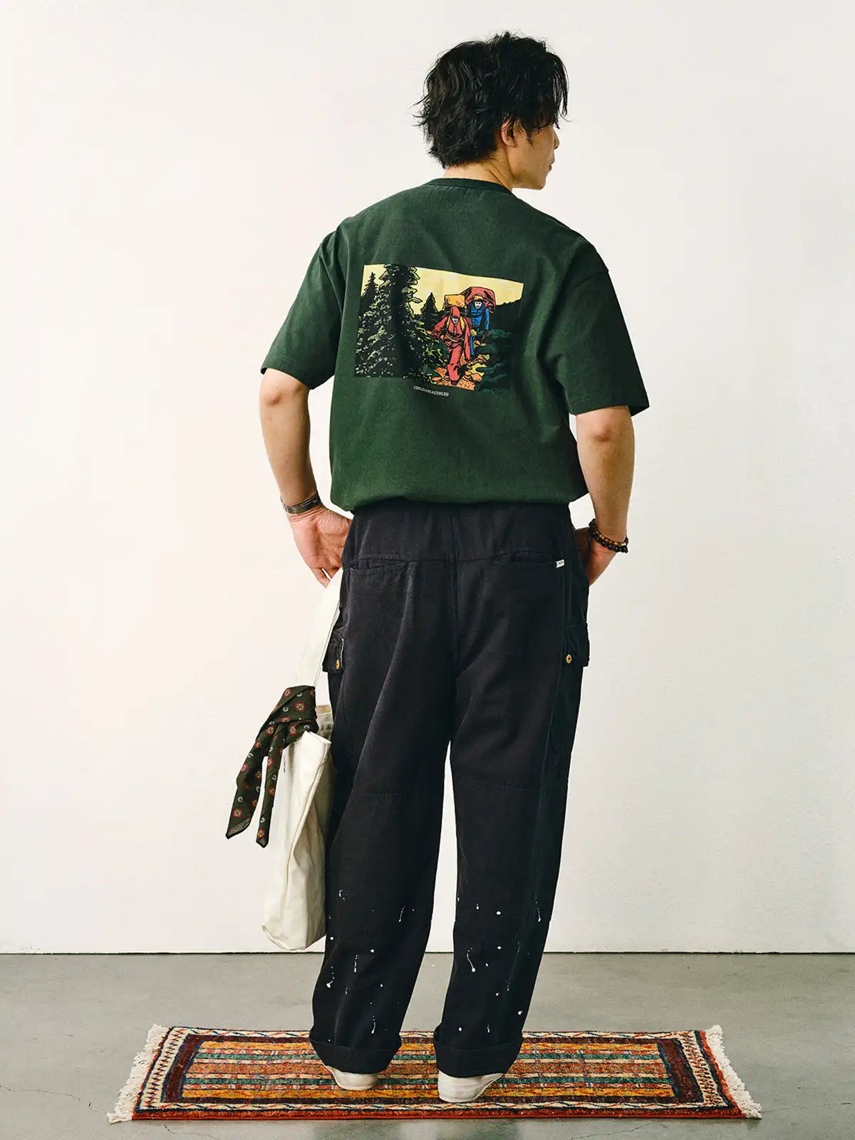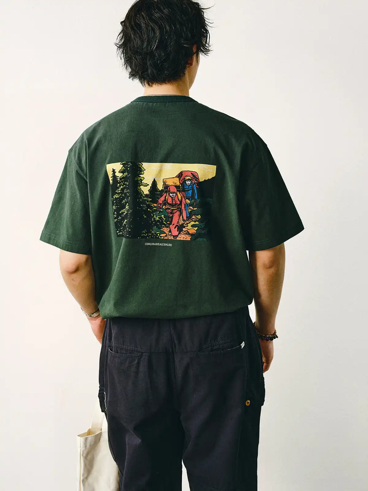 本Tシャツは「MOMENTS IN LIFE」をテーマに、夏の休暇の無憂なひととき、山々を越える二人の旅、そして夕日に染まる帰宅中の父娘という三つのシーンを、漫画風の一コマ表現で描いています。270gの純綿生地は、しっかりとした手触りとほのかな起毛感を持ち、耐摩耗性と通気性に優れた着心地を提供。小さめのネックラインとゆったりとしたドロップショルダーが、アメリカンヴィンテージの雰囲気を残しつつ、カジュアルで快適なスタイルを実現します。