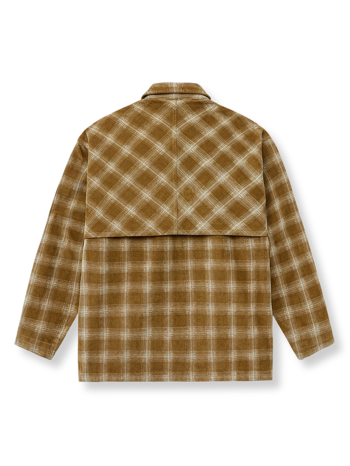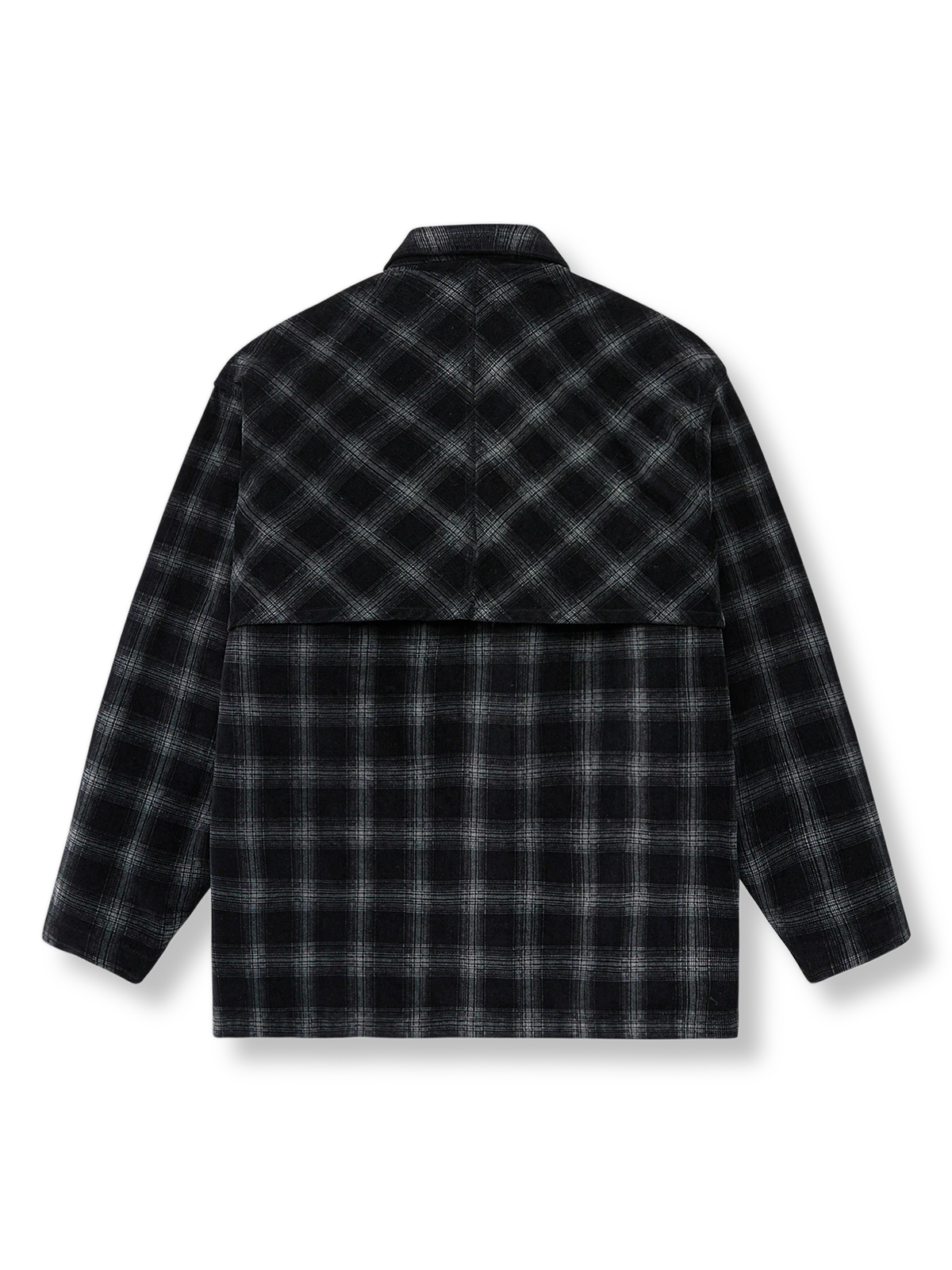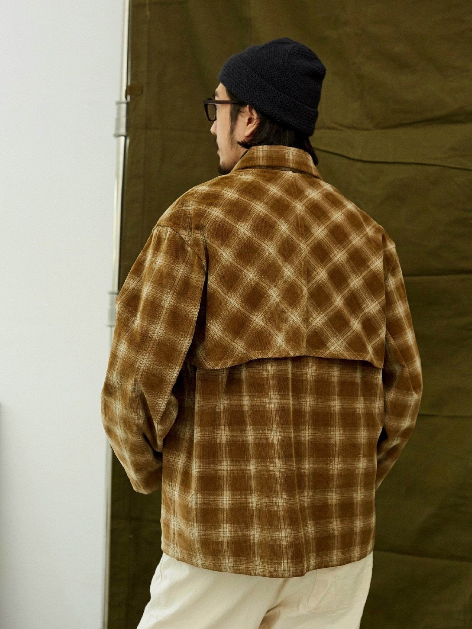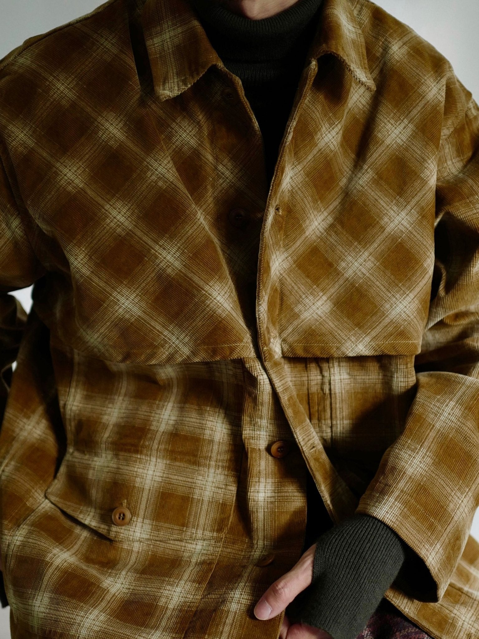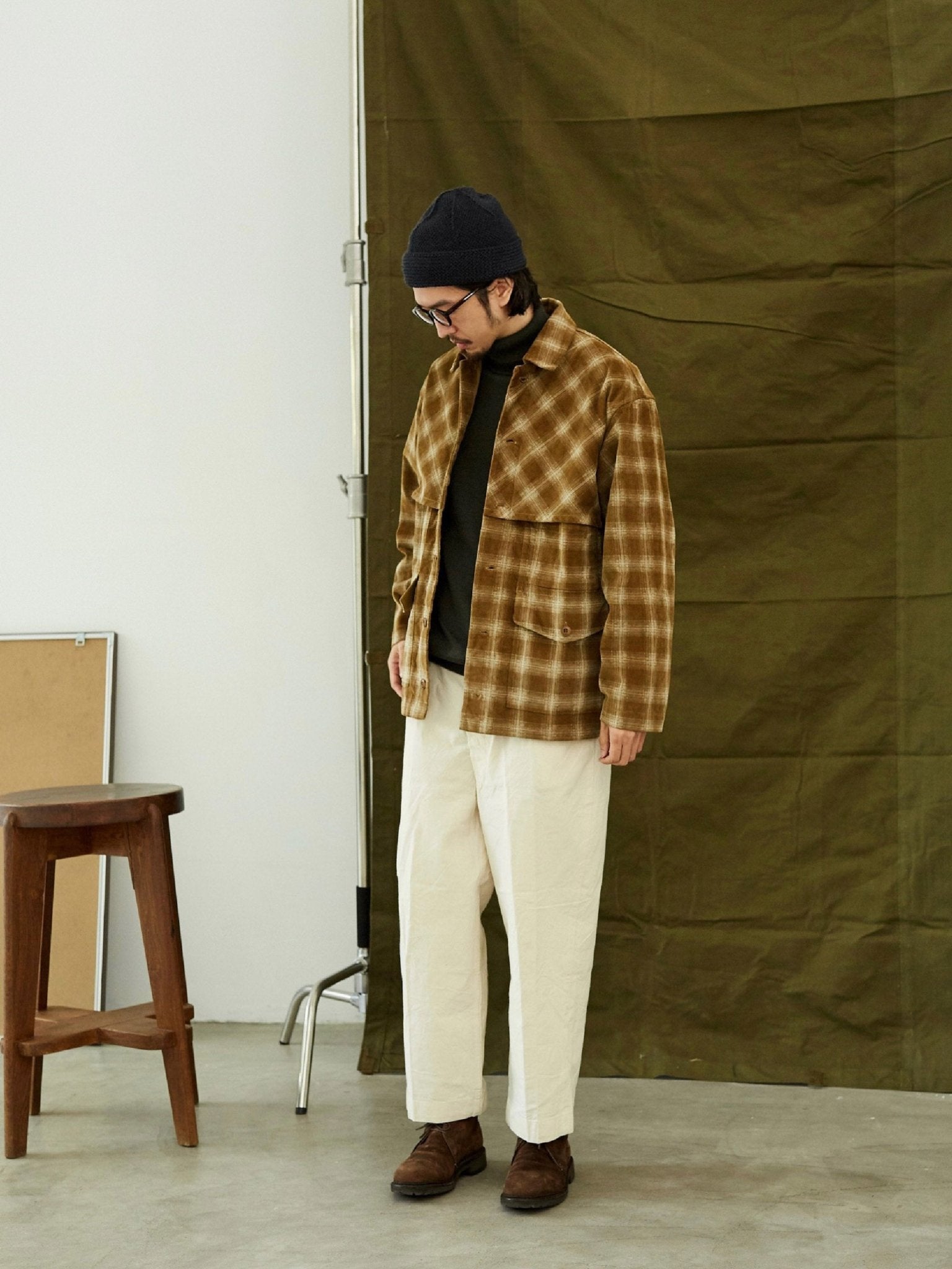 このマルチポケットチェック柄ジャケットは、アメリカンスタイルに深く影響を受け、20世紀80年代のDouble Cruiser Jacketに由来しています。二重構造の前面は胸元に伸び、ポケットのフラップとして機能性を高めています。ジャケットの格子柄は視覚的に面白い対比を形成し、カーキとブラックグレーの格子柄の組み合わせは、着用者に豊かなレイヤー感とレトロな雰囲気を提供します。
