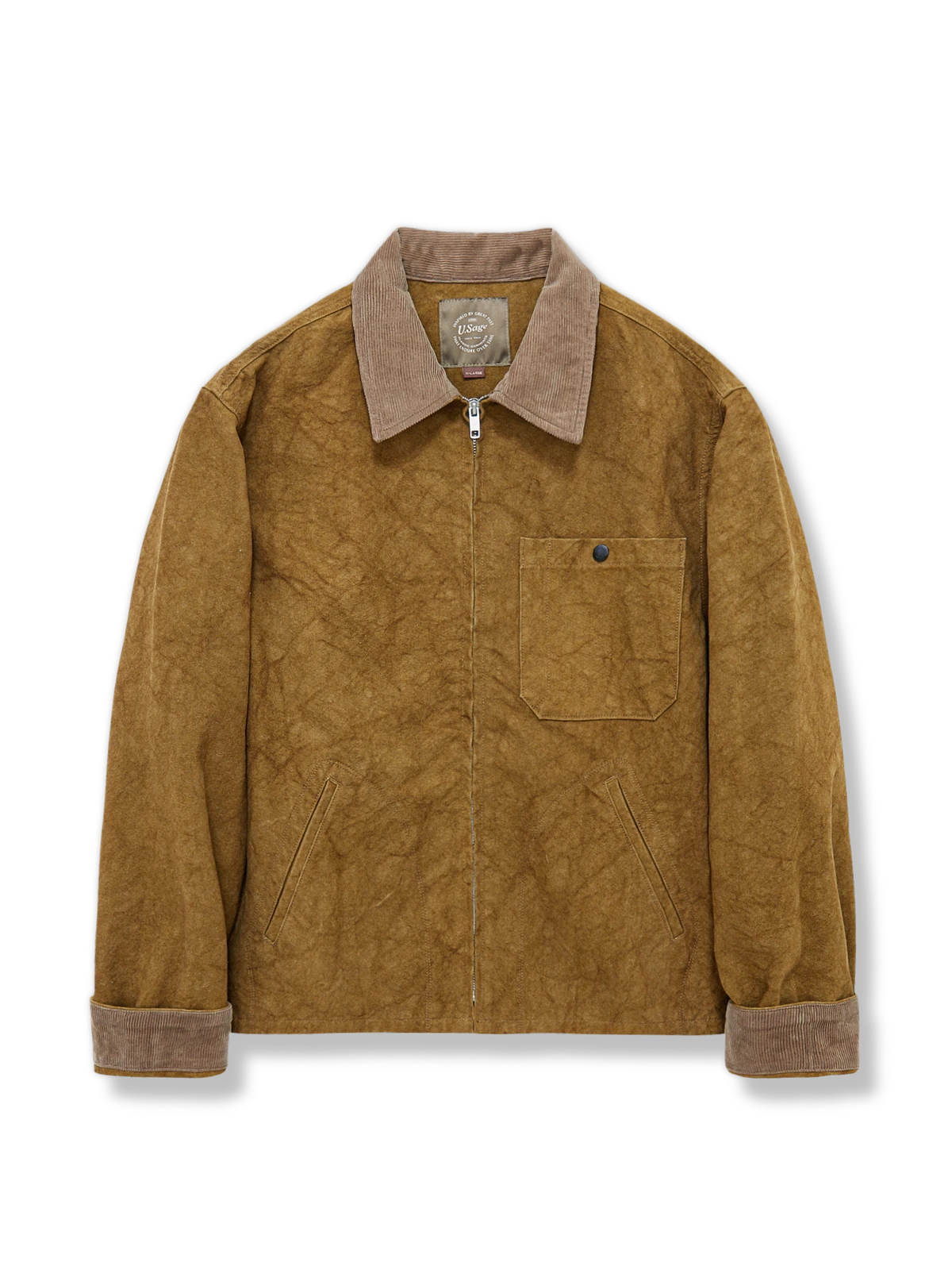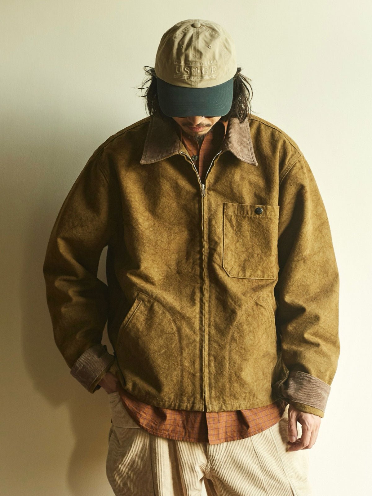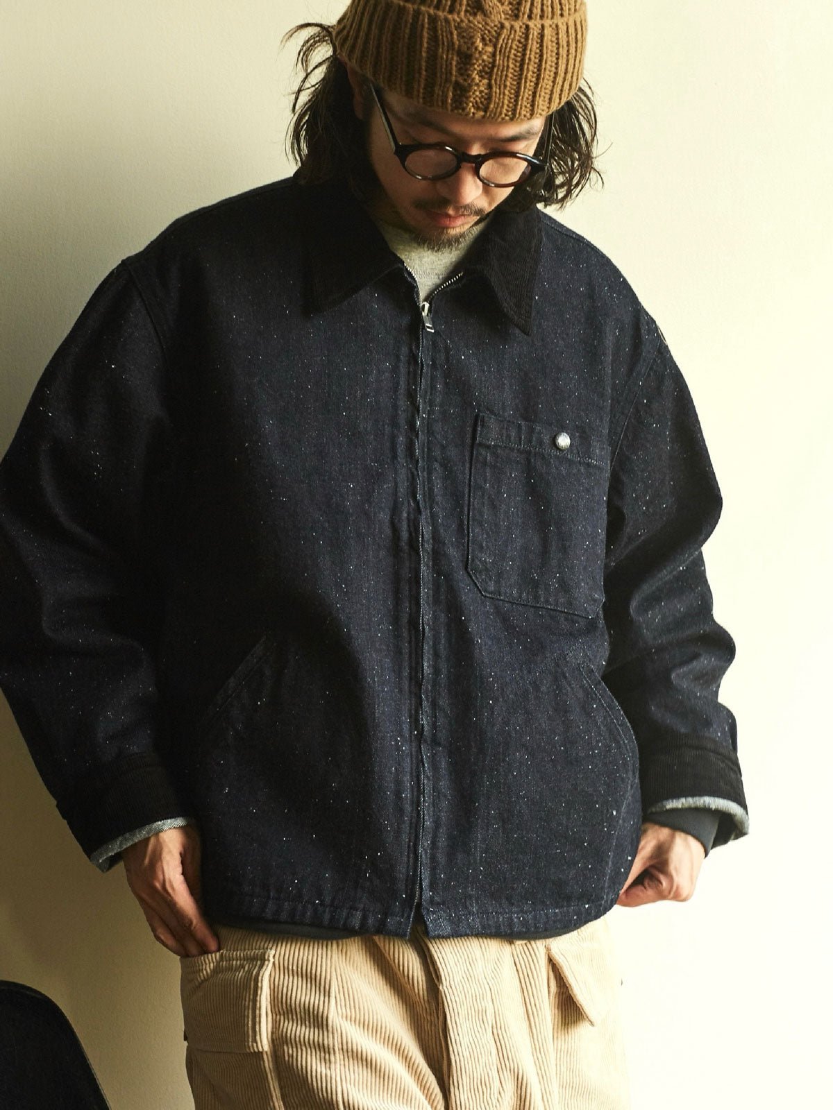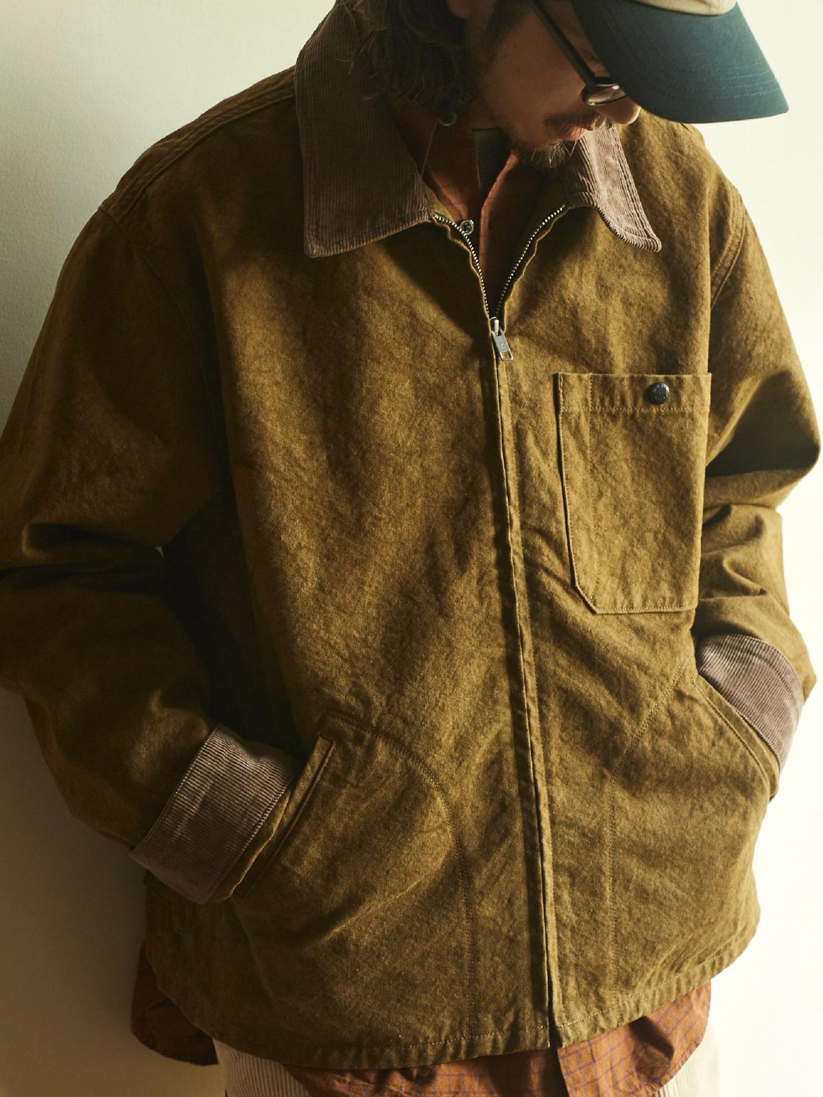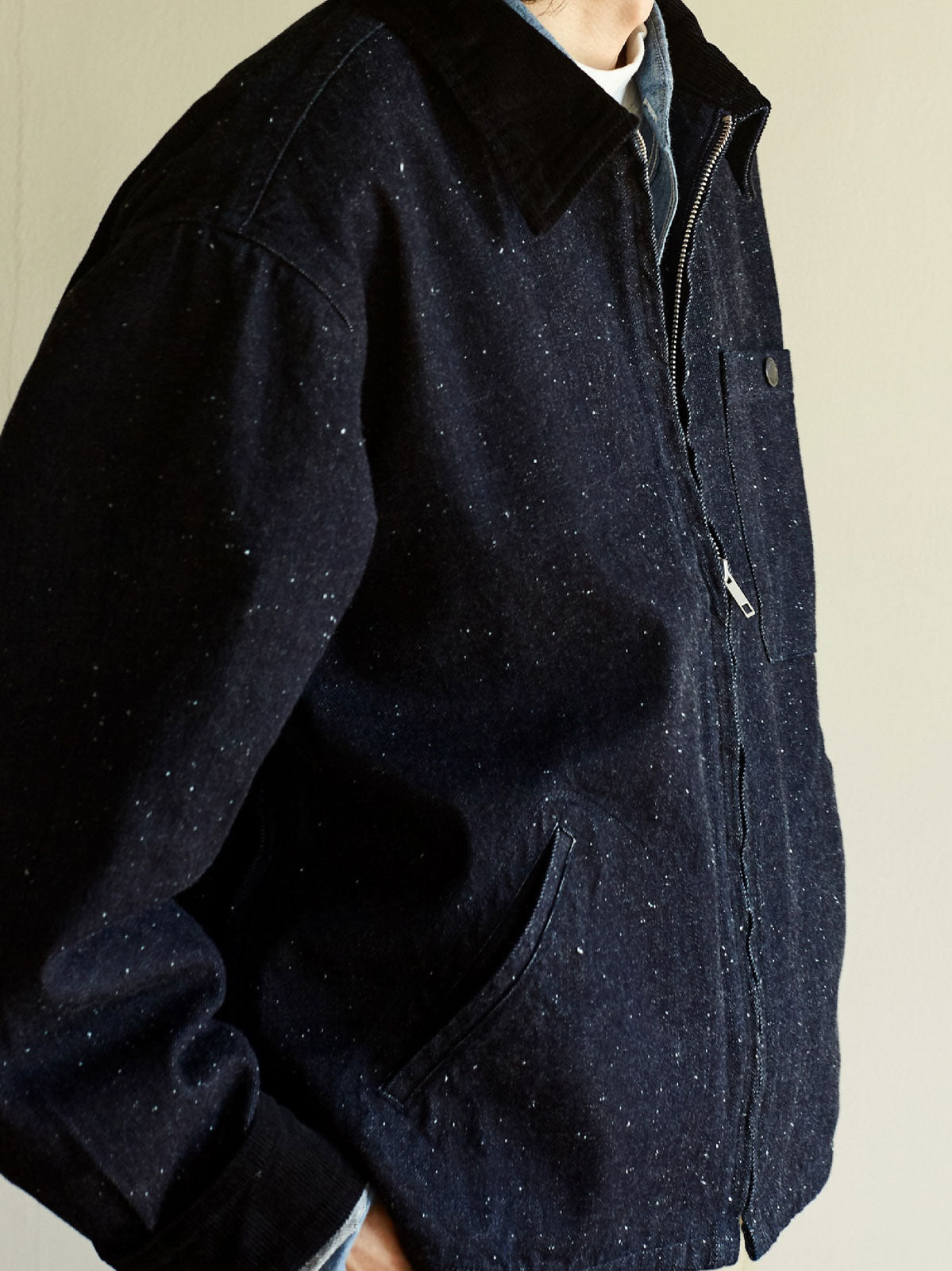 ショートカットのデザインは、動きやすさを向上させ、日常のスタイリングに適しています。襟と袖口には高品質のコーデュロイを使用し、柔らかく快適で、着用体験の質感を高めています。