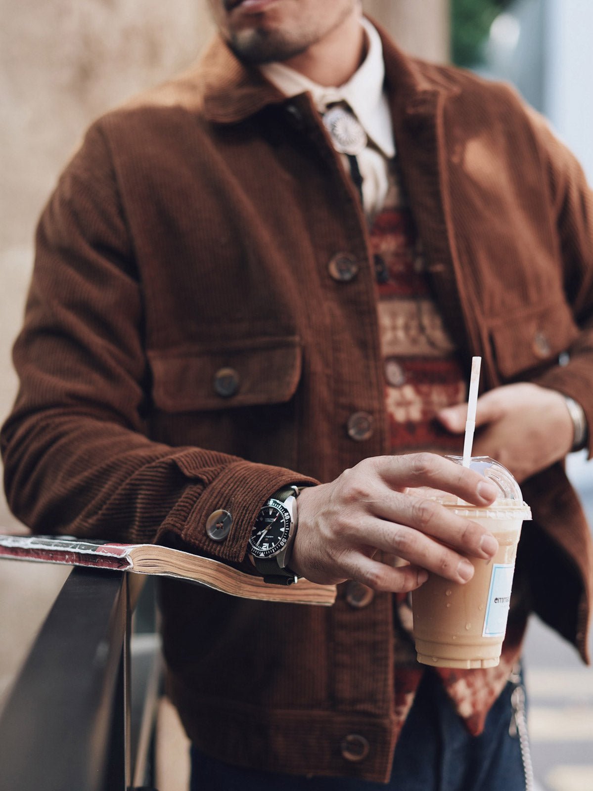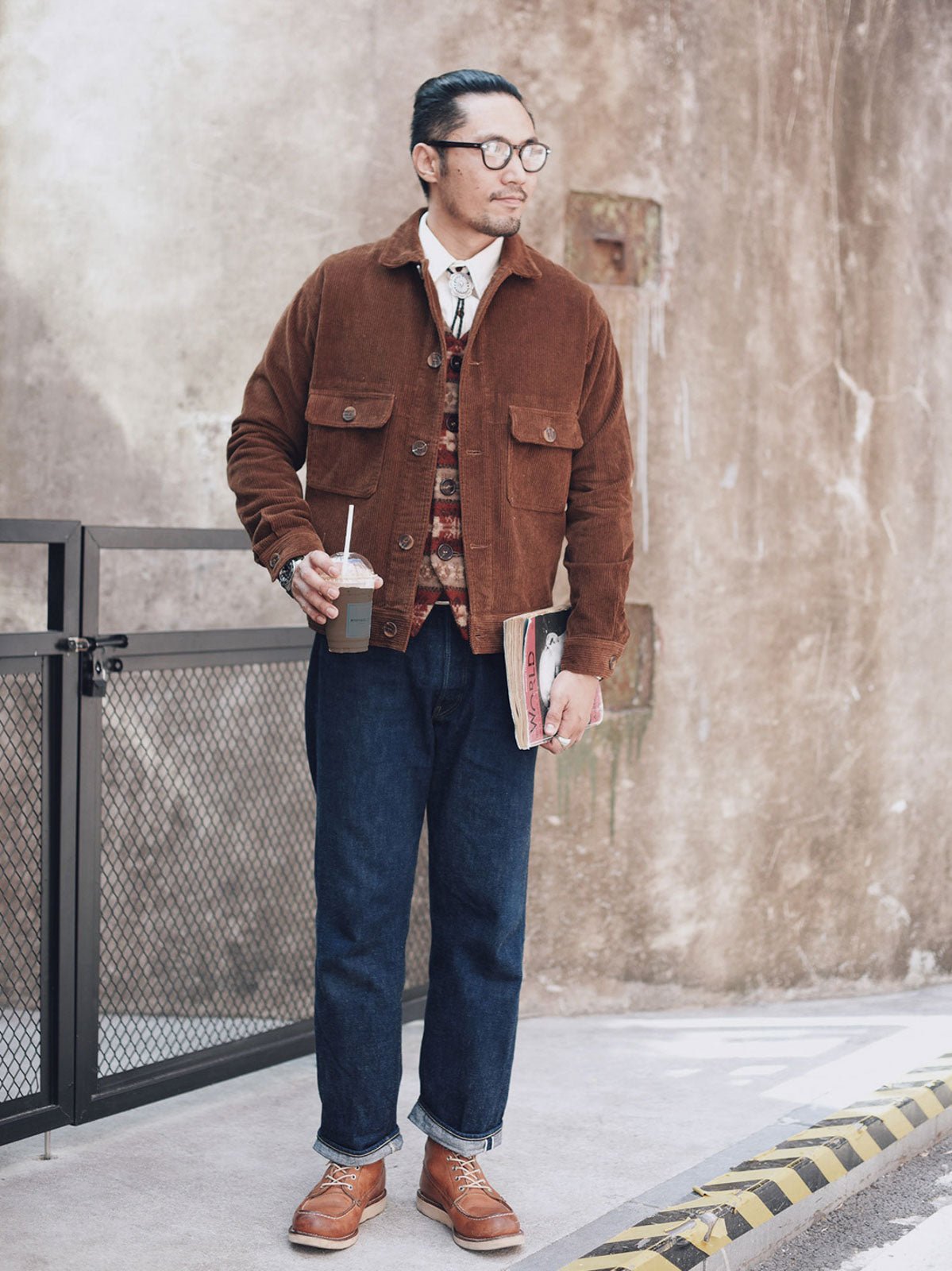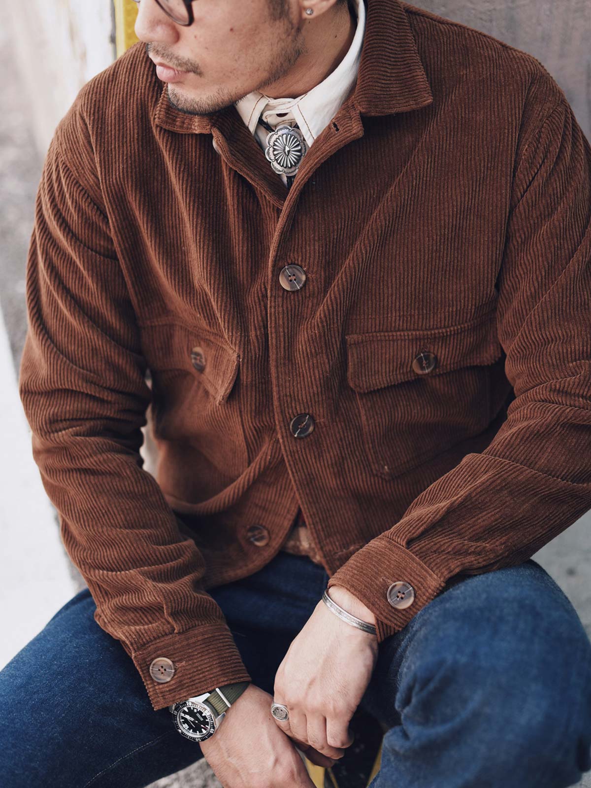 このコーデュロイジャケットは、ジーンズと白いTシャツやシャツと組み合わせて、リラックスしたレトロなアメリカンスタイルを演出することができます。靴には、ハイカットのキャンバスシューズやレザーブーツを選ぶと、全体のスタイルに完璧にマッチします。