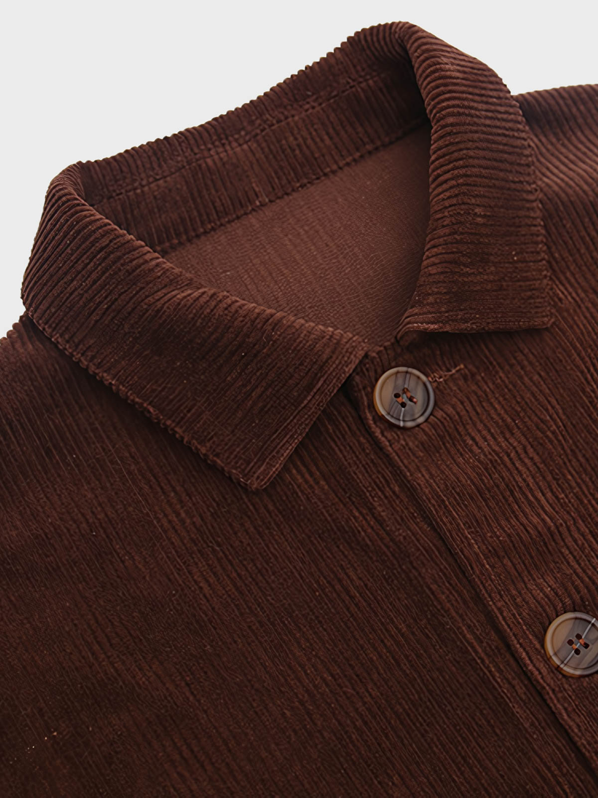 このコーデュロイジャケットのデザインは、アメリカンレトロスタイルにインスパイアされており、特に20世紀半ばに流行したカジュアルジャケットのデザインを反映しています。短い丈のカットは、その時代のカジュアルさと自由な表現への追求を再現しており、コーデュロイ素材は時を経た質感を与えています。