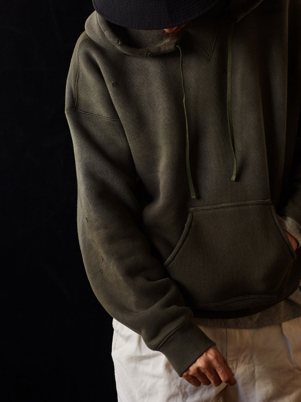 高品質の生地で作られ、暖かさと耐久性を兼ね備えています。古着風のディテール処理は、高度なクラフトマンシップを示しています。