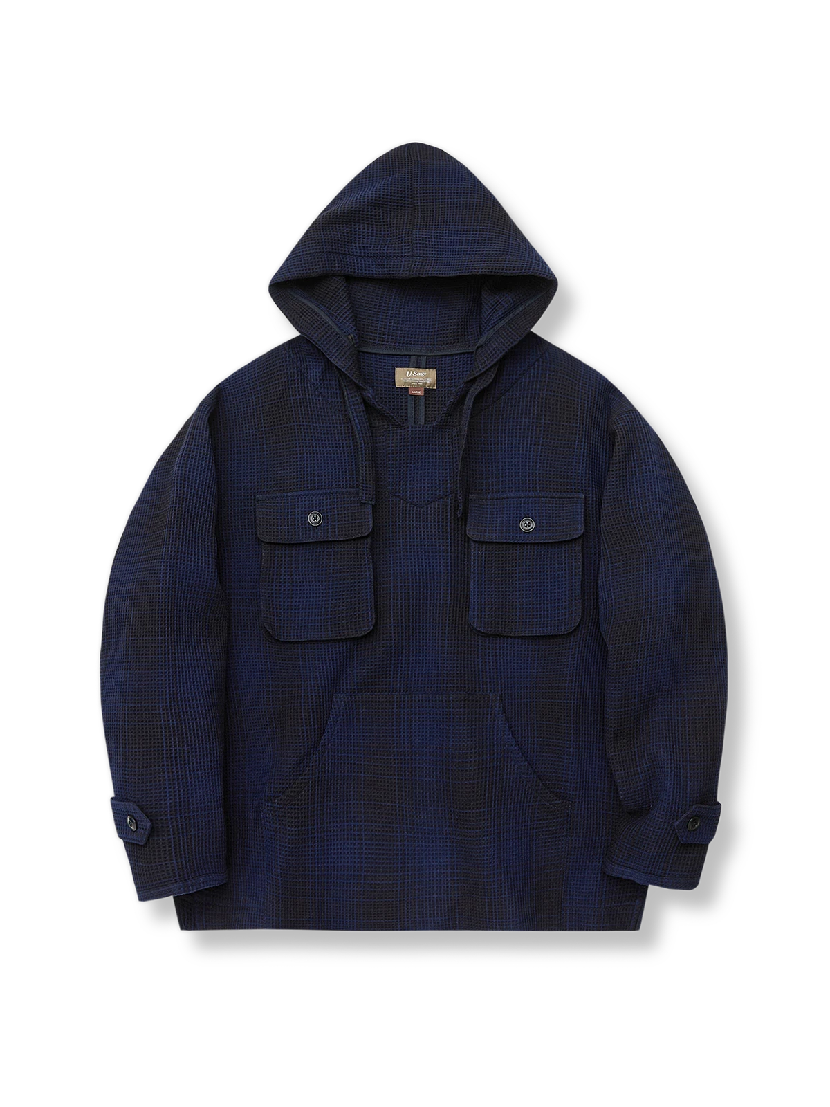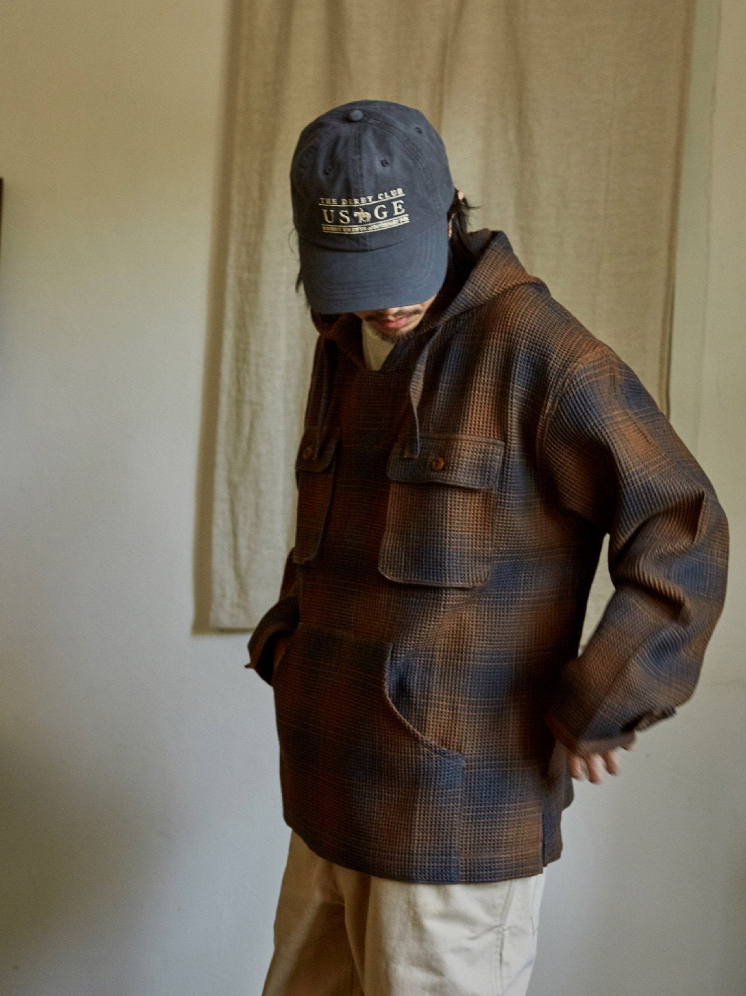 ゆったりとしたカッティングが採用され、メキシコ風のホッディシャツの特徴を引き継いでいます。フードデザインとネックの紐は、主要な生地と同じデザインで、紐は平らな長方形の形状で、ヴィンテージなオリジナルのディテールを再現しています。