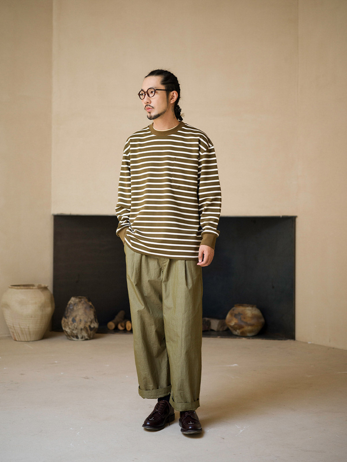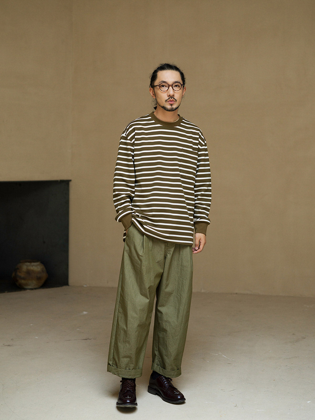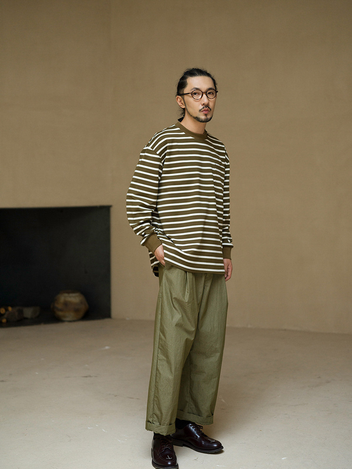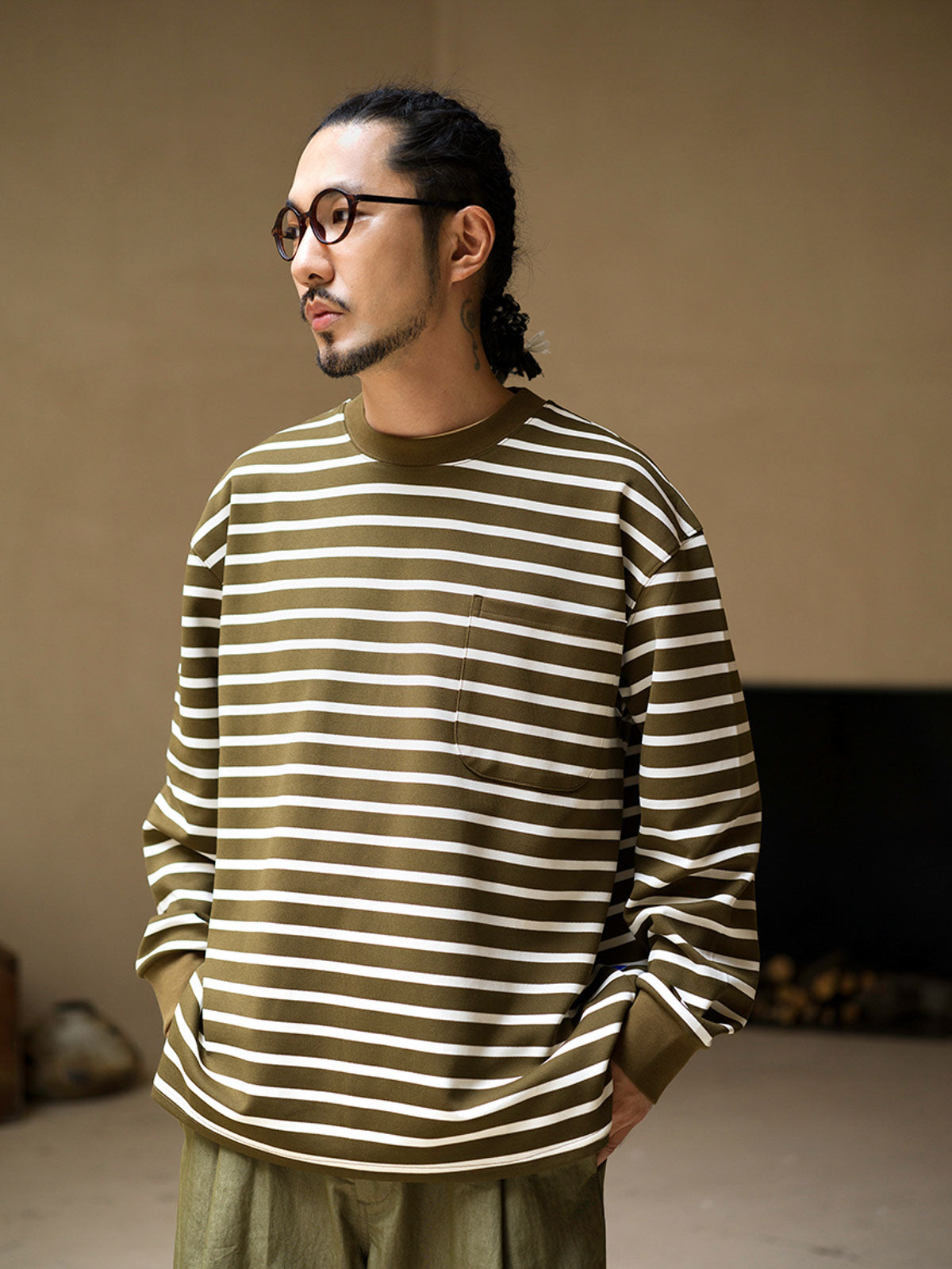 このクラシックなストライプ長袖Tシャツは、ダブルフェイス織りを採用し、26Sコットンと40Sポリエステルの混紡素材を使用しています。特殊な後加工により、粗さと繊細な立体感を同時に実現しました。外側はダイヤモンド柄ジャカード、内側は柔らかな縦ストライプのテクスチャーが絶妙に融合し、肌に優しい快適な着心地を提供します。胸ポケットのアーチデザインと弧形の裾が、ヴィンテージ感を際立たせつつ立体的なシルエットを保ち、インナーとしてもアウターとしても活用できます。抗ピリング、耐洗水、5A抗菌機能を備え、実用性にも優れた一着です。