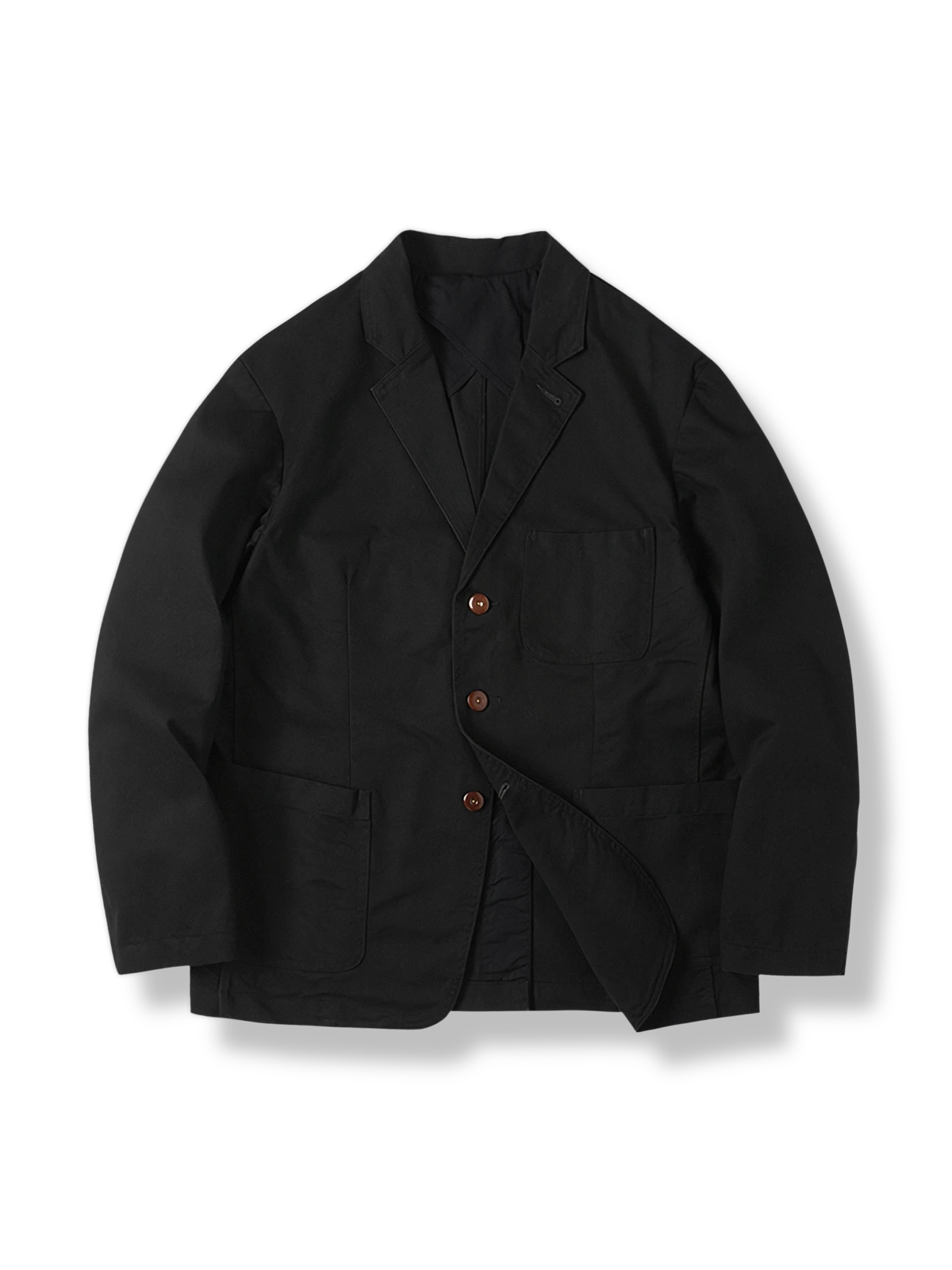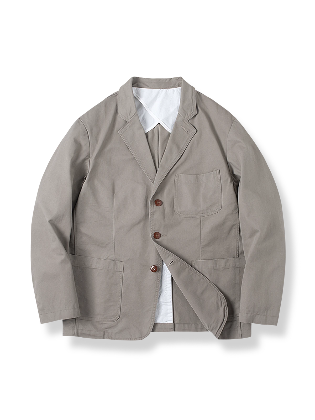 上質なピマコットン素材を使用しており、柔らかい手触りだけでなく、耐久性にも優れ、洗濯やお手入れが簡単です。精巧なダブルブレストデザインと実用的なポケットの配置は、ワークウェアの機能性を加えると同時に、熟練した製造技術を示しています。