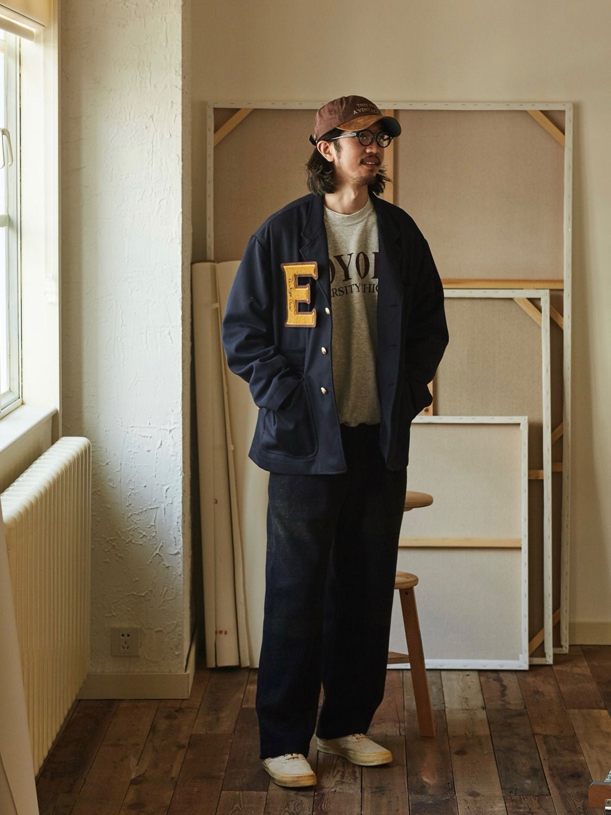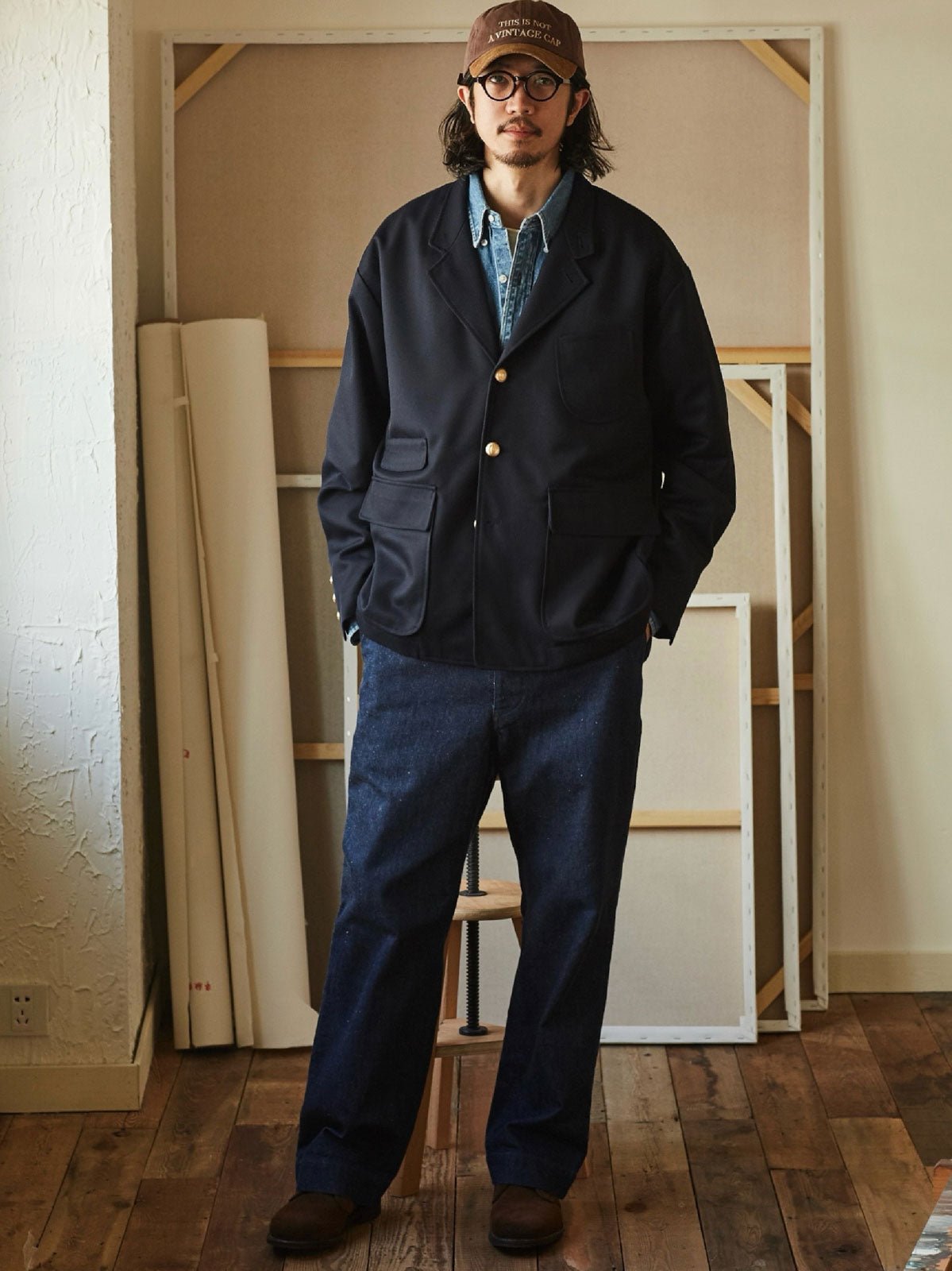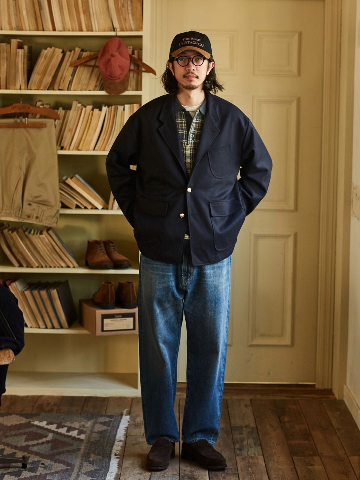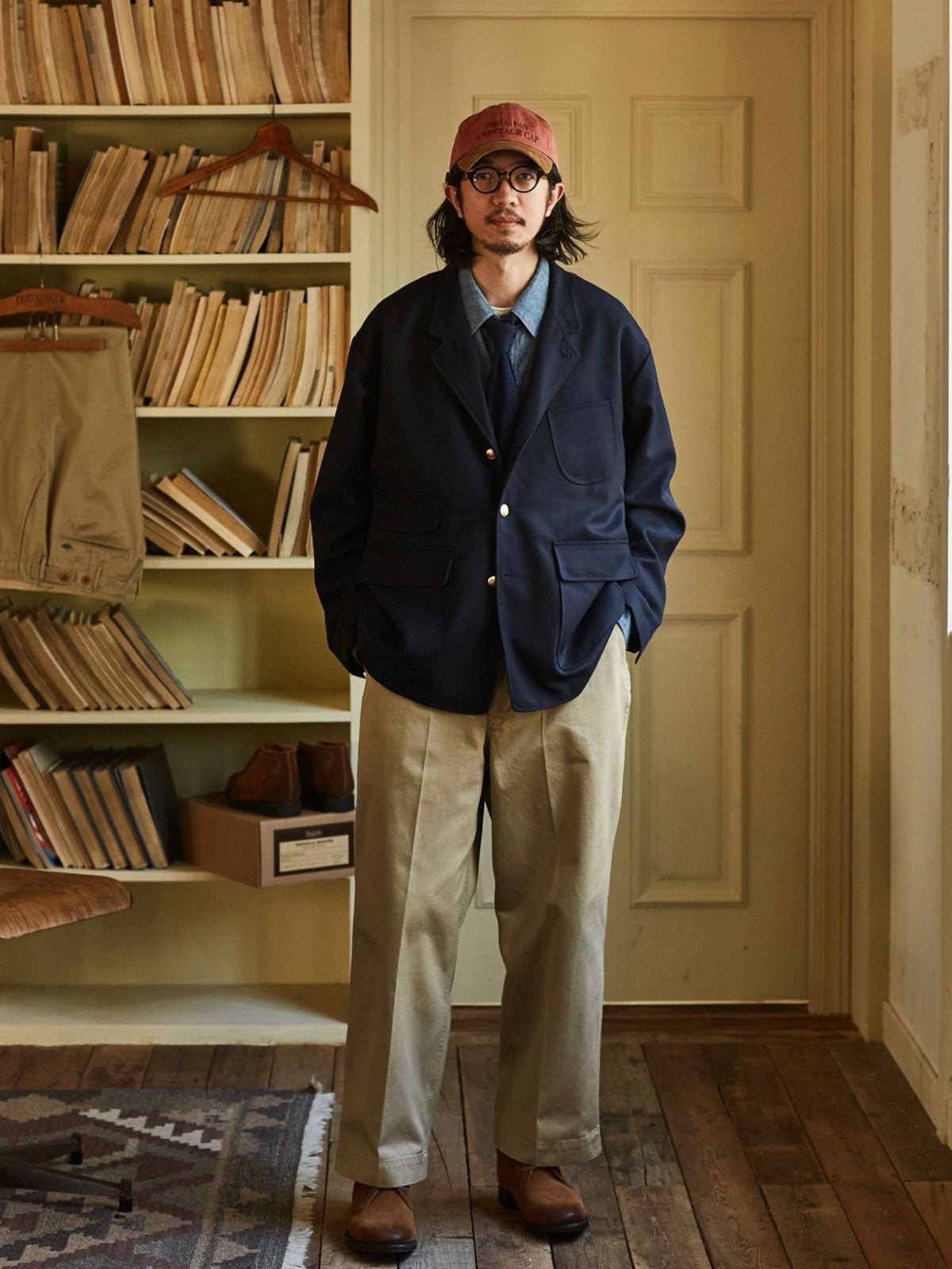 このネイビーブルーのスーツジャケットは、アイビースタイルのクラシックな表現であり、19世紀の航海制服からインスピレーションを得ています。深い青の生地と真鍮のボタンの組み合わせは、初期のスーツの伝統的な要素を継承しつつ、このジャケットに洗練されたエレガントな気質をもたらしています。