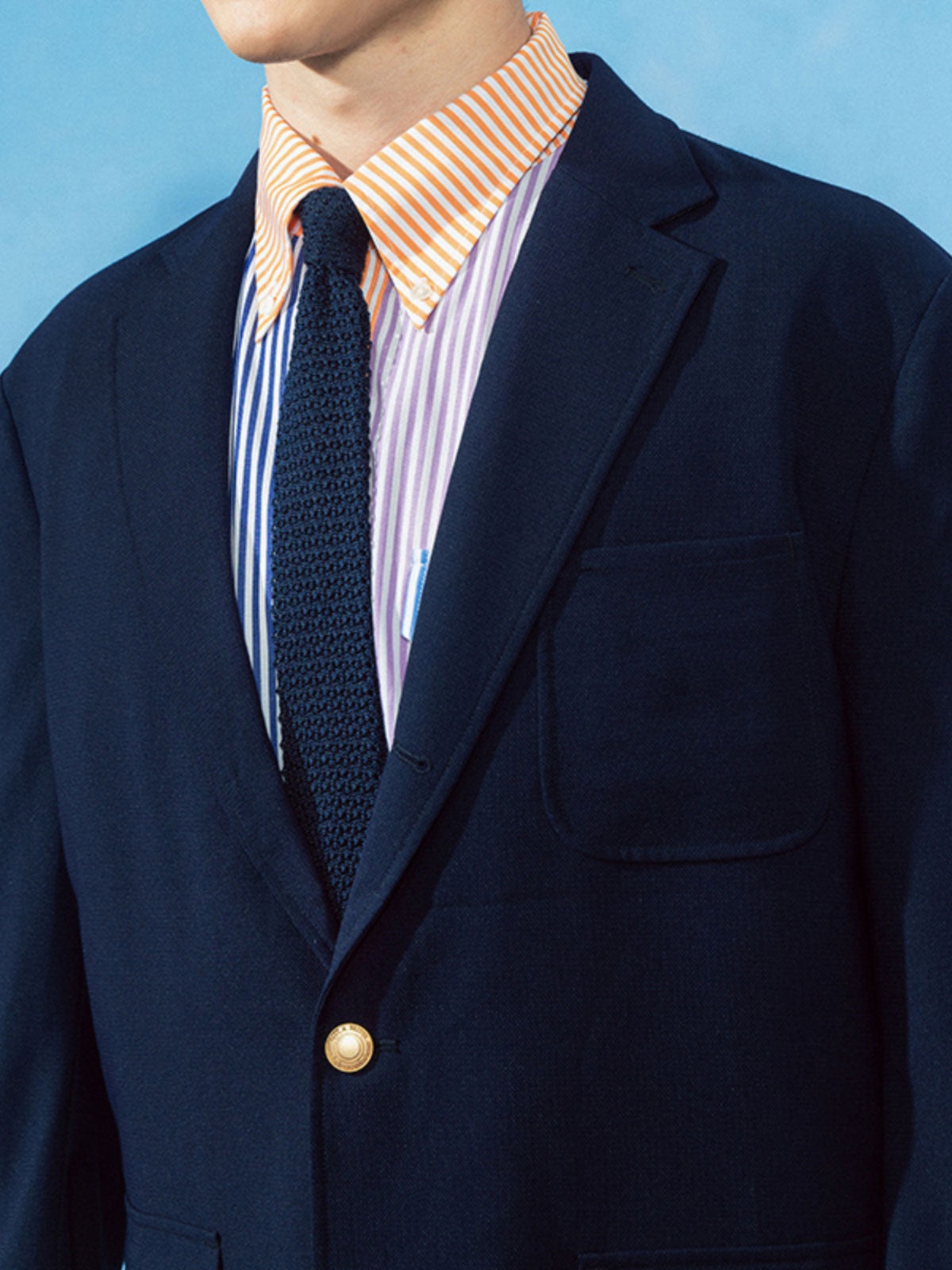 ネイビーブレザーは19世紀の海軍制服に由来し、シングルブレストのゴールドボタンデザインは、贅沢な雰囲気を加えるとともに、クラシックな服装文化への敬意を表しています。その歴史は長く、世界中の男性服装の一般的な標準となっています。