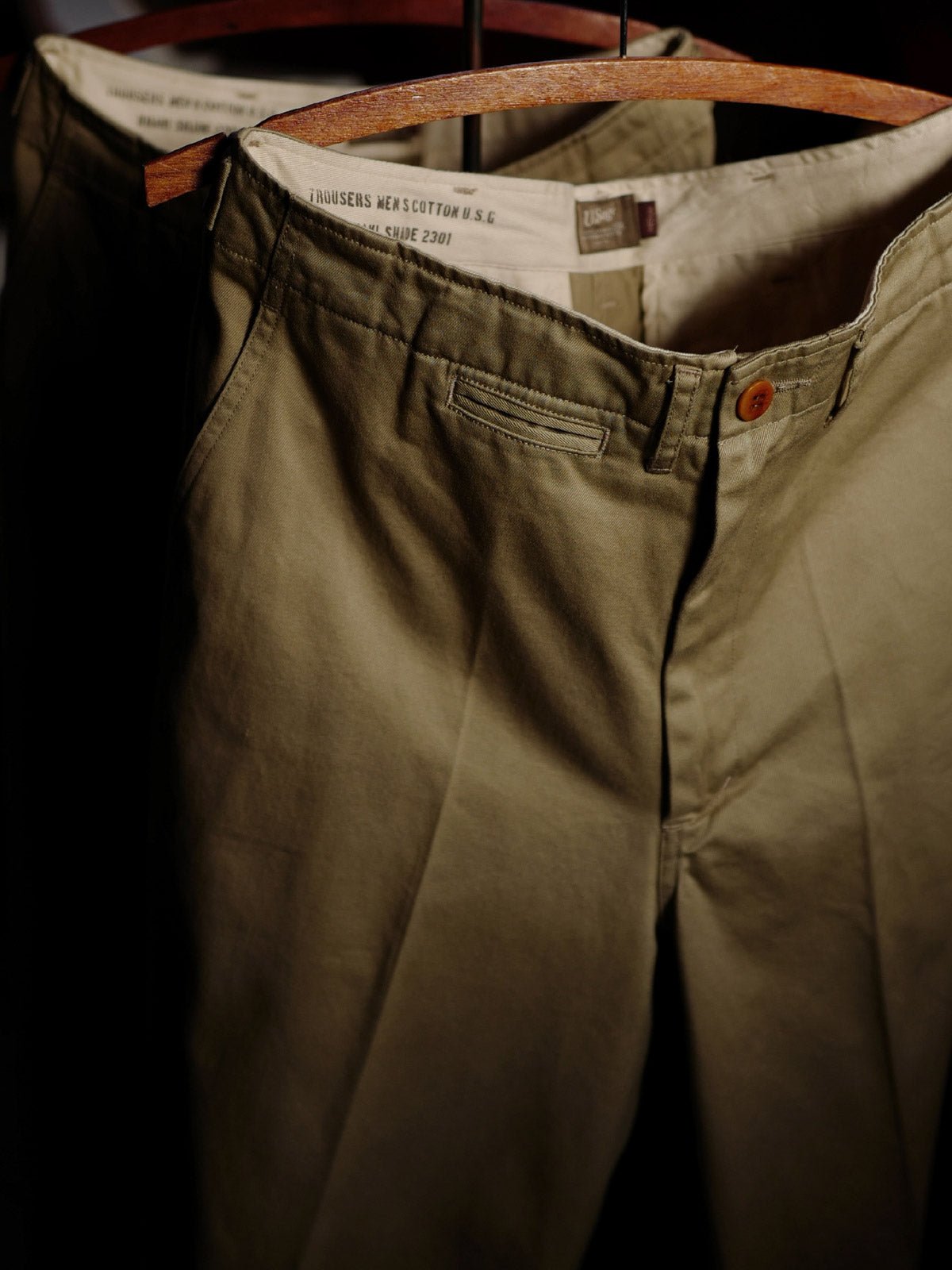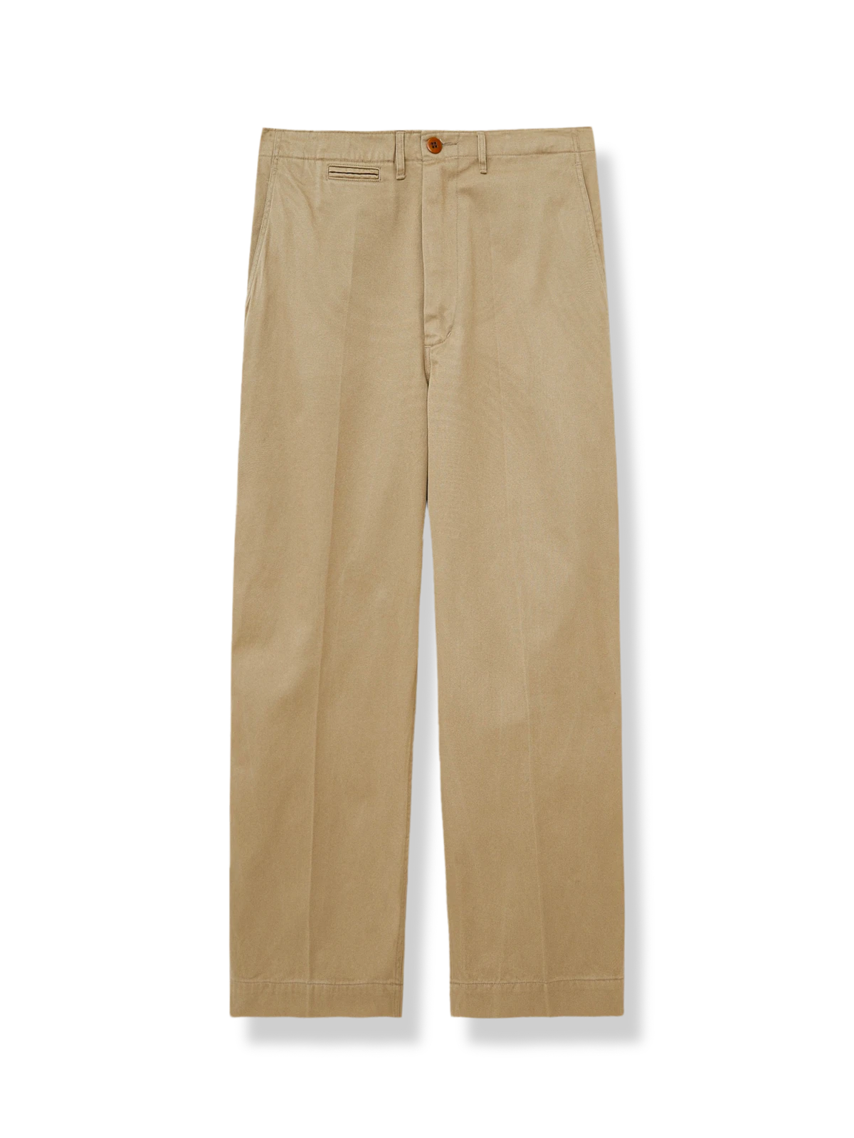 このクラシックな微ワイドストレートカーキ色チノパンツは、19世紀半ばの英仏軍隊がインド亜大陸で採用していた伝統的な軍服デザインを継承しています。ポケット、調整可能なボタン、後ろポケットなどのデザインの詳細は、実用的でありながら、オリジナルのチノパンツのクラシックな要素を適切に再現しています。
