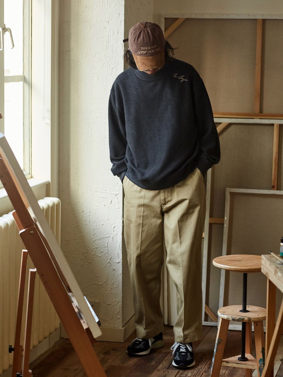 シルエットと着用感:このチノパンツは、微ワイドなストレートカットで緻密にデザインされており、着用者が動きやすいように作られています。ふくらはぎの微調整デザインは、パンツのラインを最適化するだけでなく、さまざまなスタイルの靴とのコーディネートも容易にします。