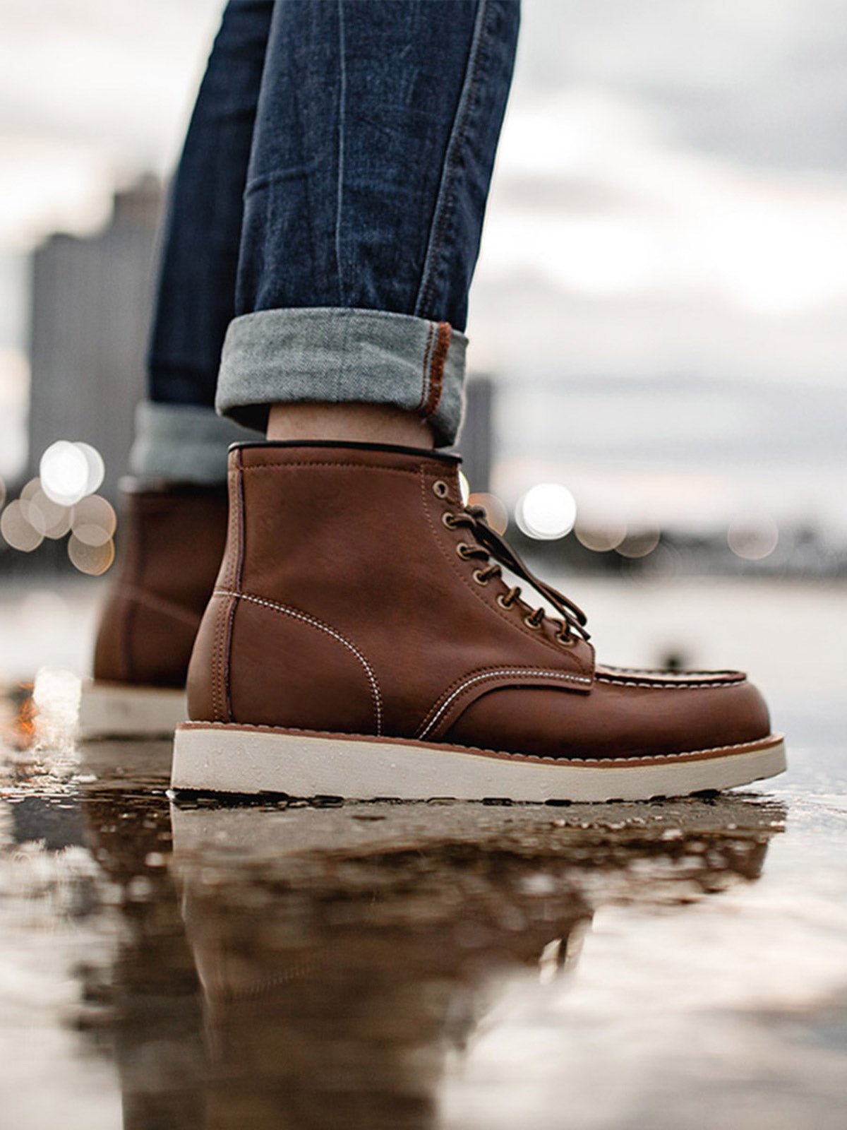 このブーツは上質な牛革を使用しており、耐摩耗性に優れ、使い込むほどに革の色が深まり、個性的なヴィンテージ感が出現します。耐久性と靴の構造が完璧に融合し、厳しい環境下でも形と機能を維持します。