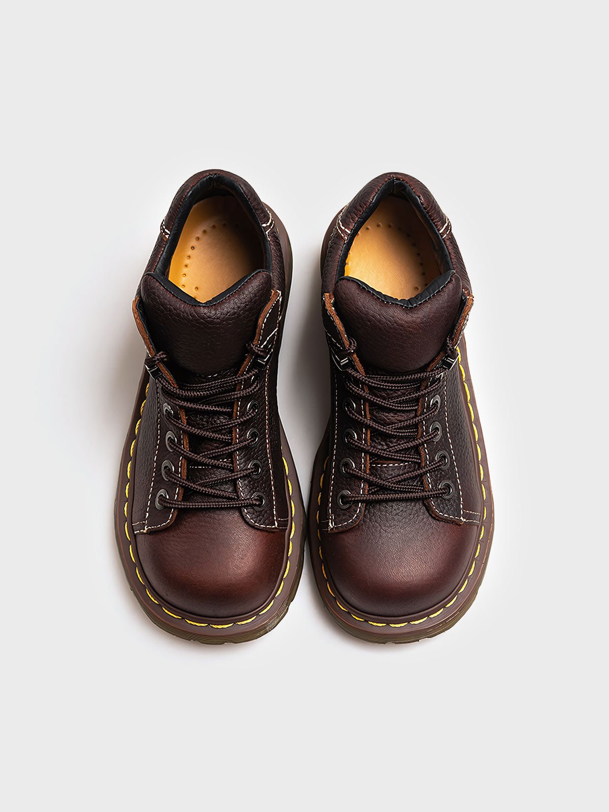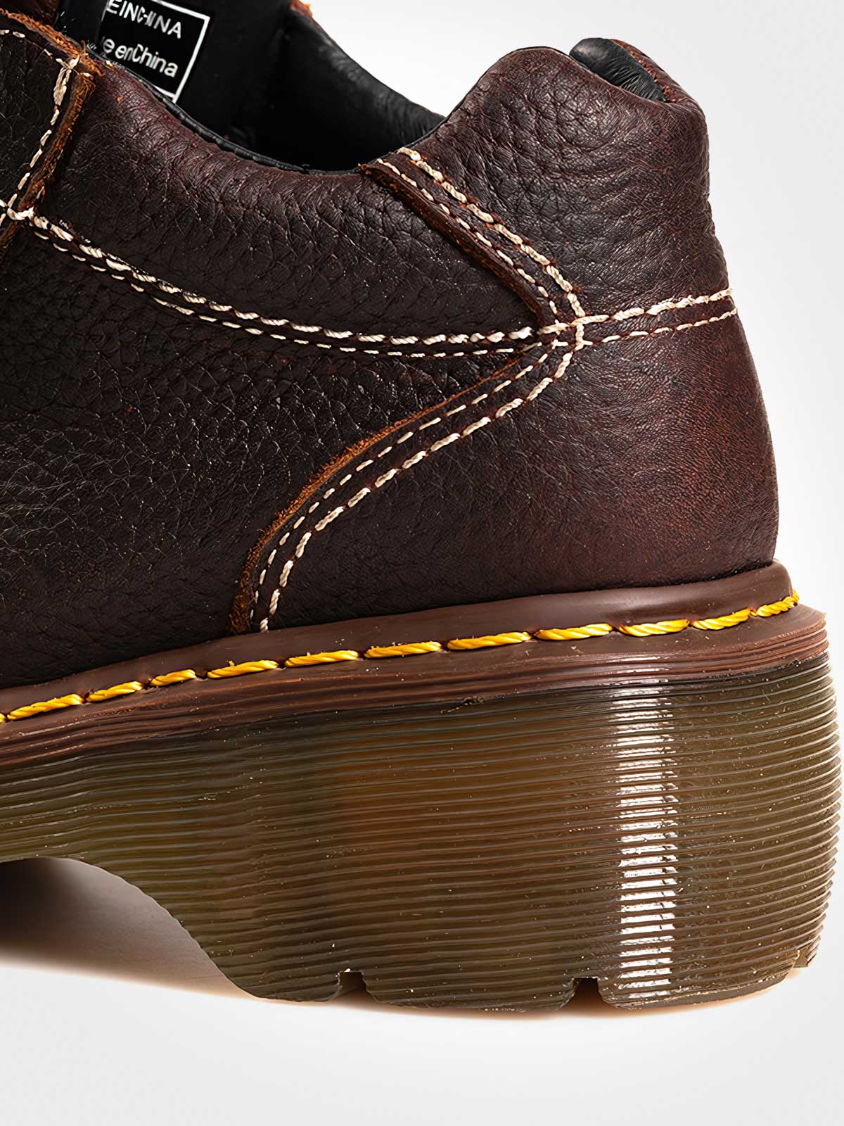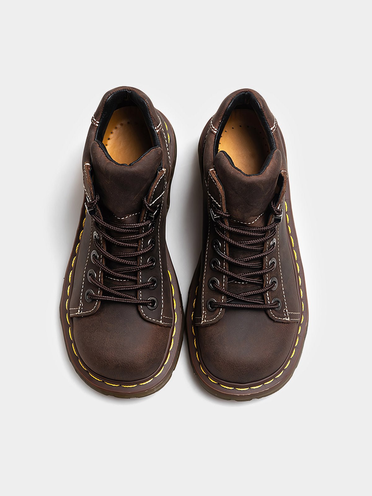 選ばれたトップグレインレザーは、柔軟でありながら時間が経つにつれて独特のエイジングテクスチャーを発展させることができます。牛腱ゴム底は、特有の黄色いステッチとエッジデザインで、ブーツの全体的な耐久性を強化するだけでなく、このブーツの特徴的な要素にもなっています。このソールデザインは、優れた防滑性と耐久性を提供し、あらゆるアウトドアアクティビティに適しています。