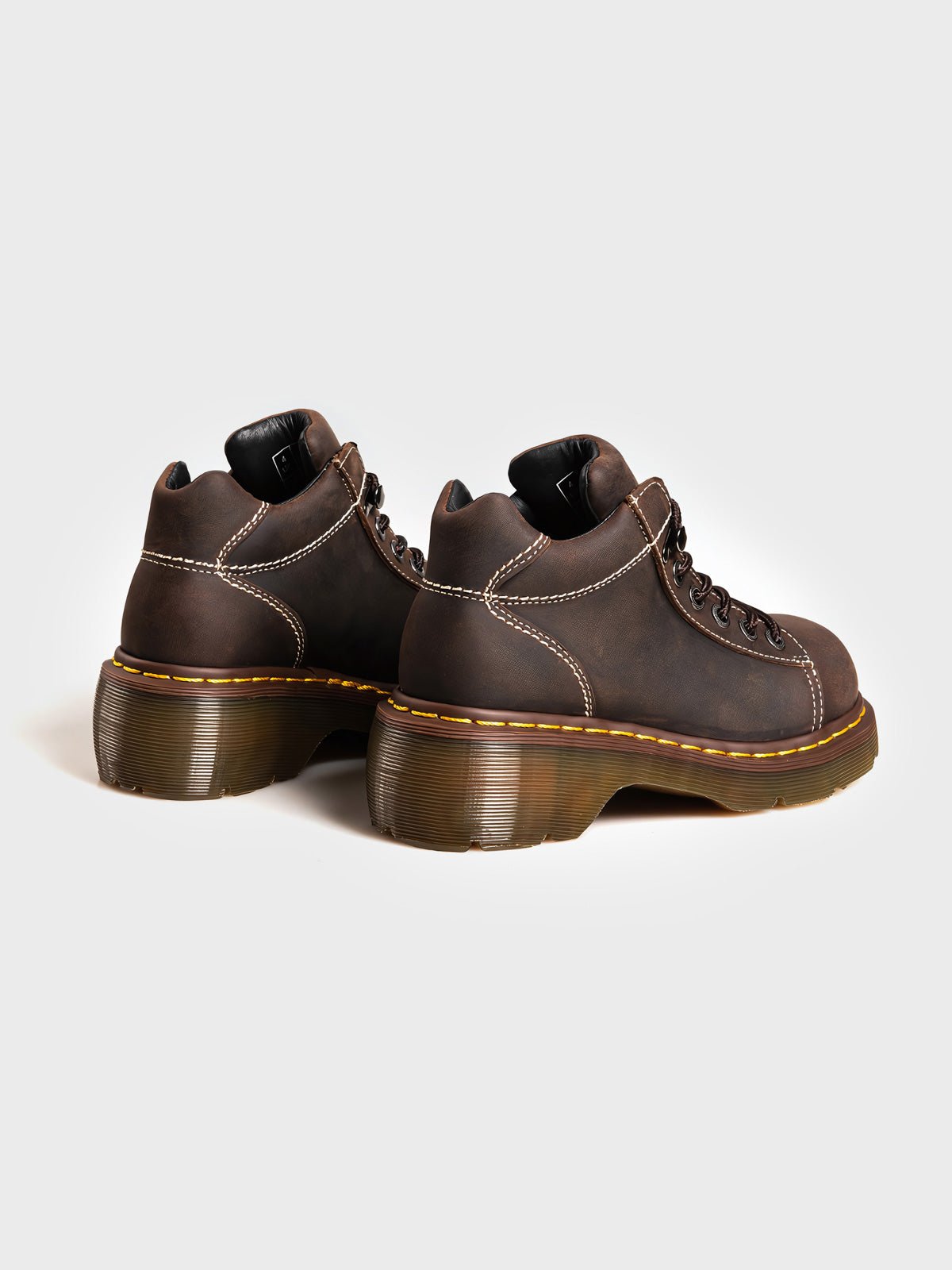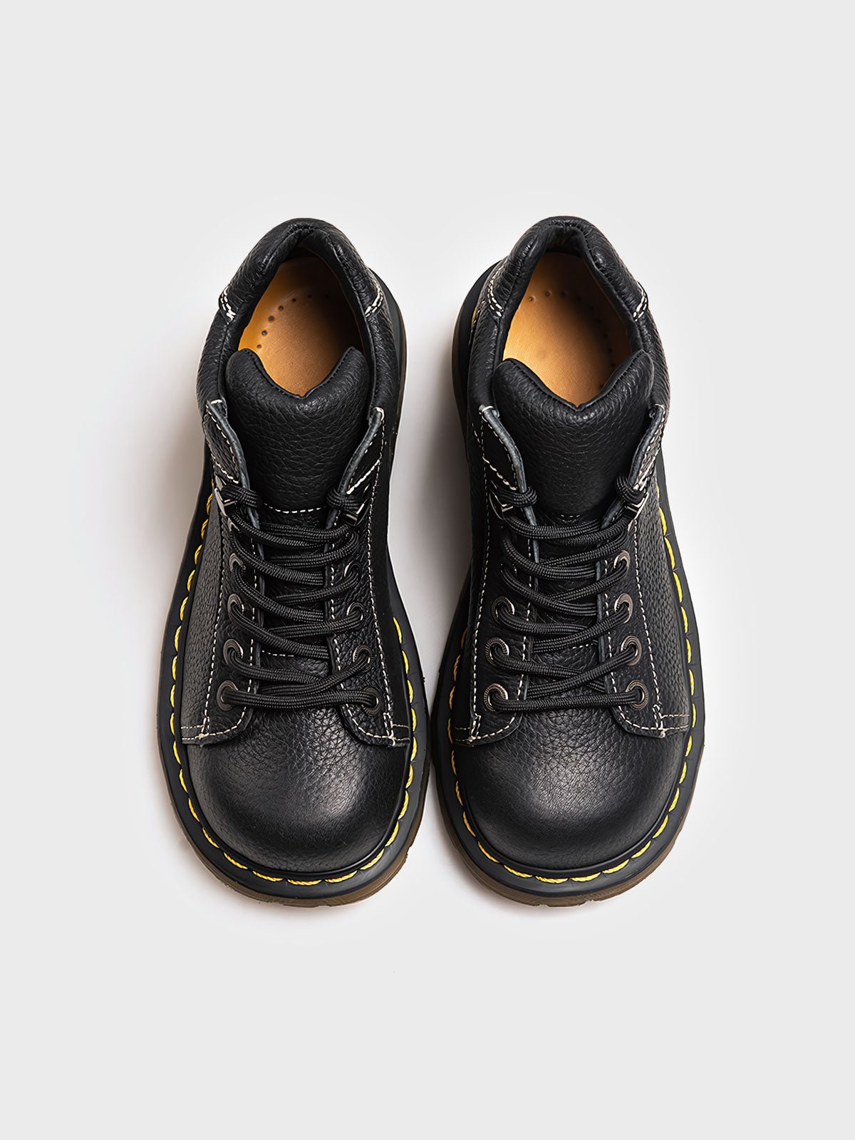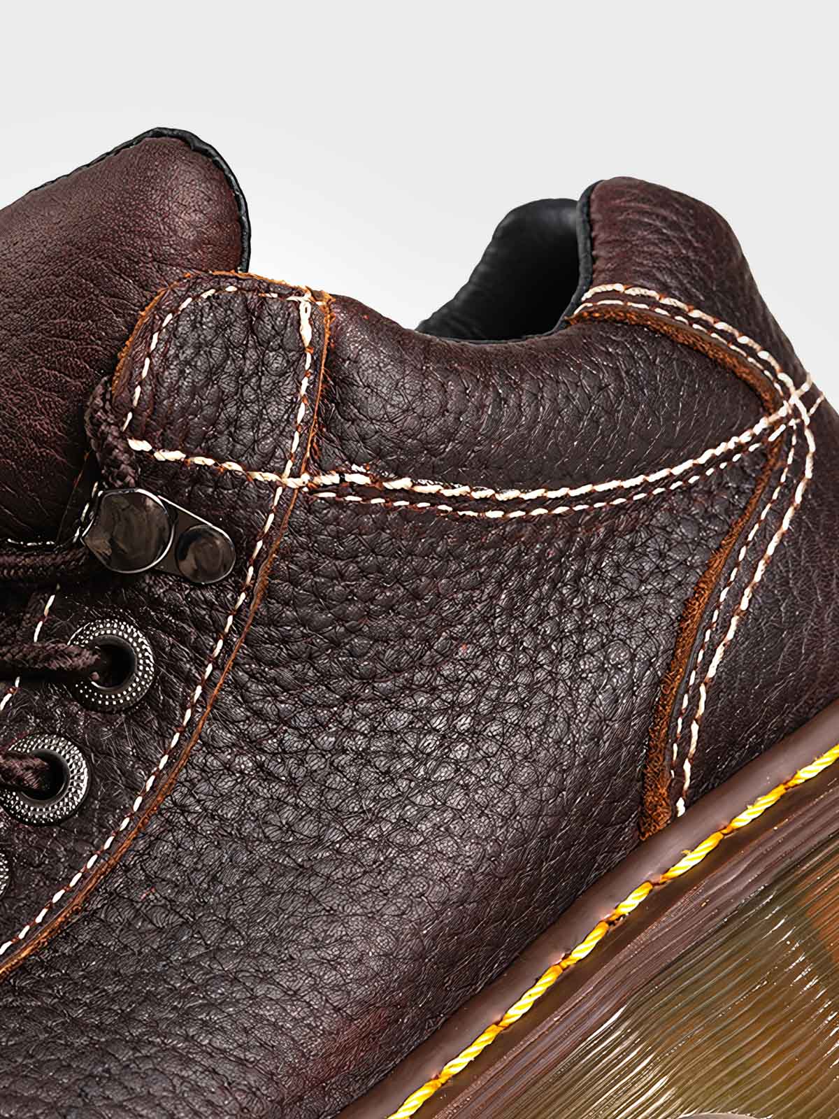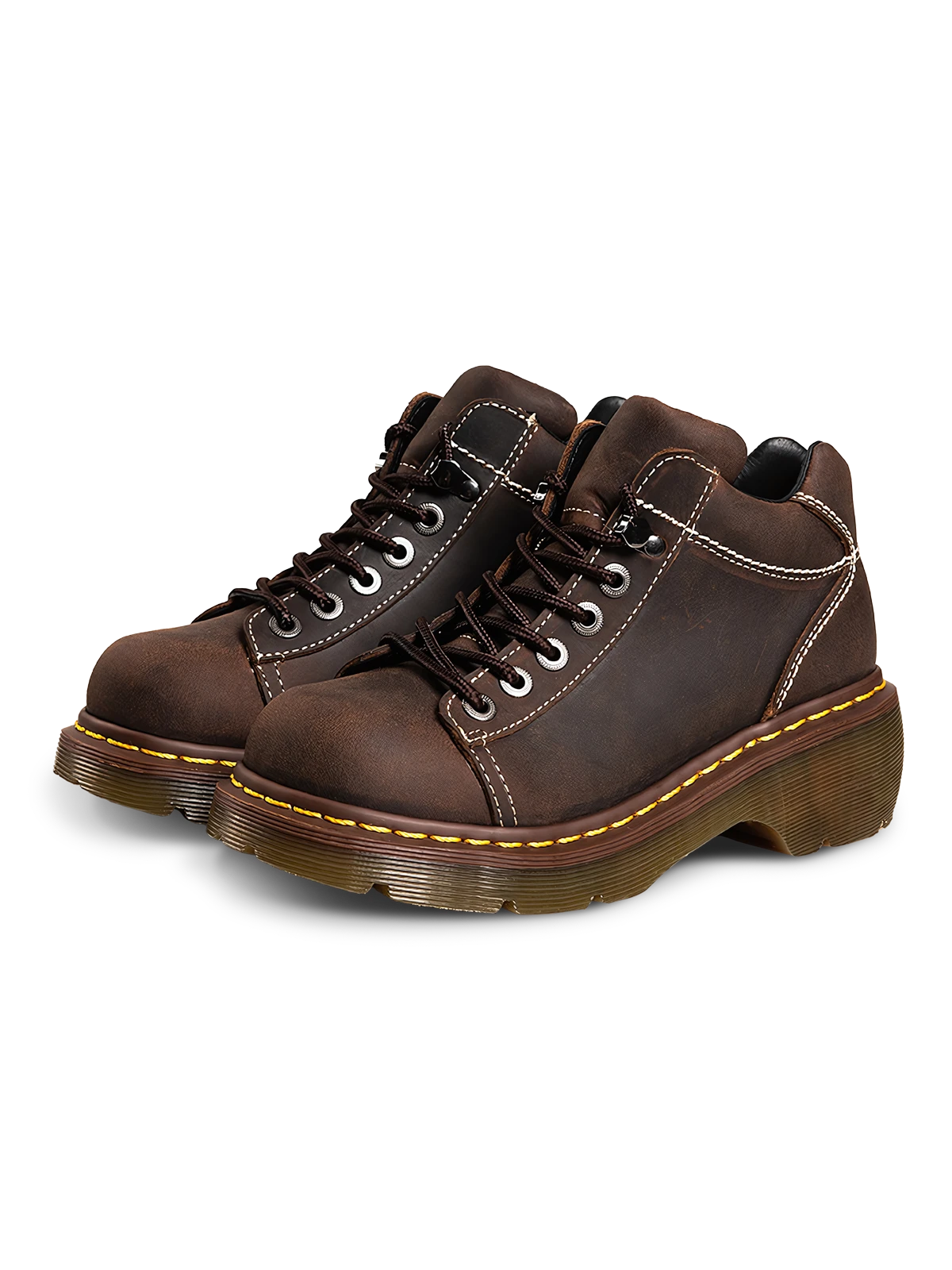 選ばれたトップグレインレザーは、柔軟でありながら時間が経つにつれて独特のエイジングテクスチャーを発展させることができます。牛腱ゴム底は、特有の黄色いステッチとエッジデザインで、ブーツの全体的な耐久性を強化するだけでなく、このブーツの特徴的な要素にもなっています。このソールデザインは、優れた防滑性と耐久性を提供し、あらゆるアウトドアアクティビティに適しています。