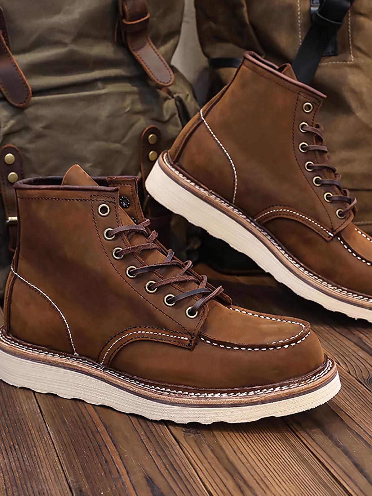 このハンティングダックブーツは、クラシックなハイカットデザインで、足首に良好なサポートを提供します。一流の牛革素材を使用しており、ブーツの表面は柔軟性があり、時間が経つにつれて独特の風合いを呈するようになります。ソールには厚手のラバー素材が使用され、グリップ力と耐久性が向上し、湿ったり不均一な地面でも安定して歩行できます。