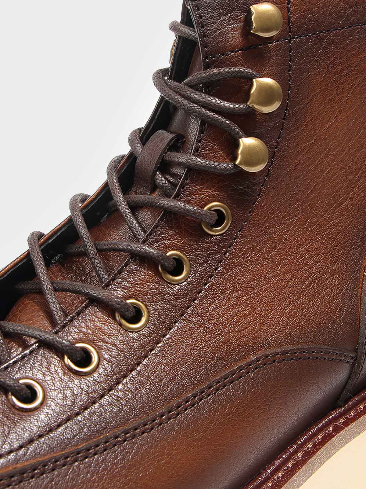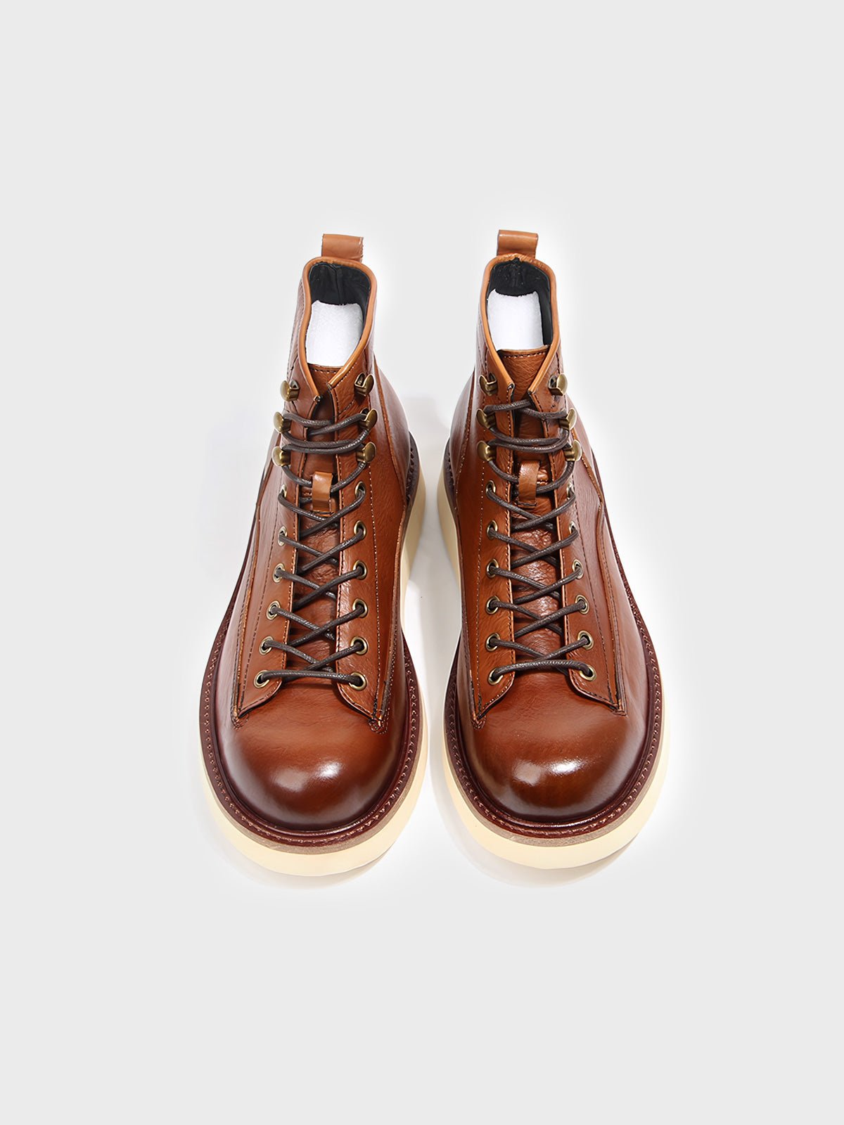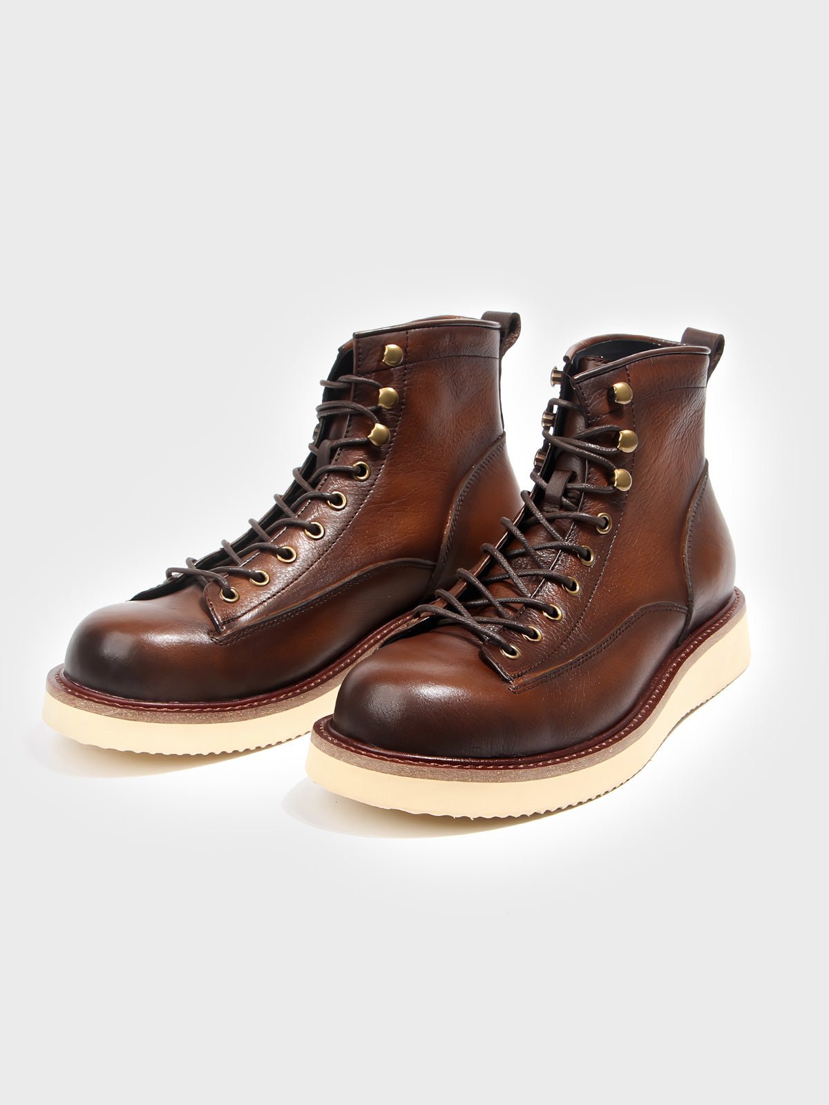 ブーツは高品質のレザーを使用し、堅固なステッチと耐摩耗性のあるゴム製のソールで補強されています。各ディテールは伝統的な工芸への敬意を示し、この素材と製造方法の選択は、靴をより耐久性のあるものにし、さまざまな地形での快適さと保護を保証します。