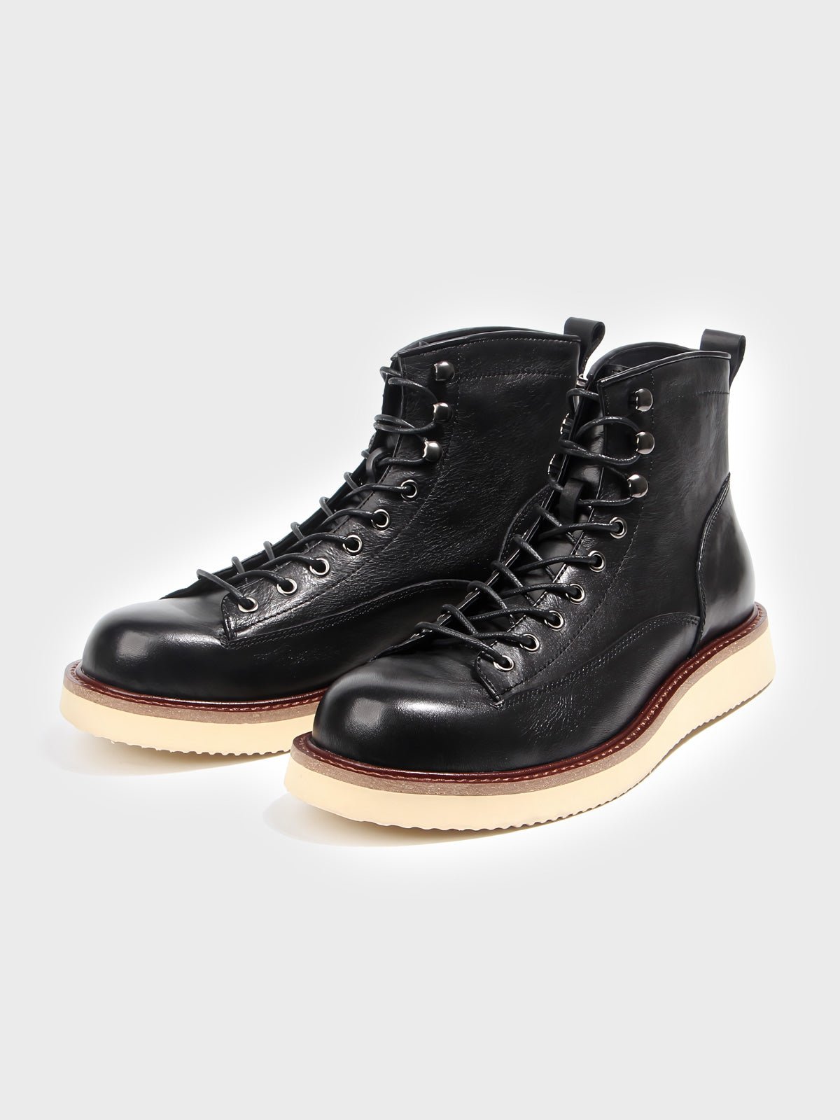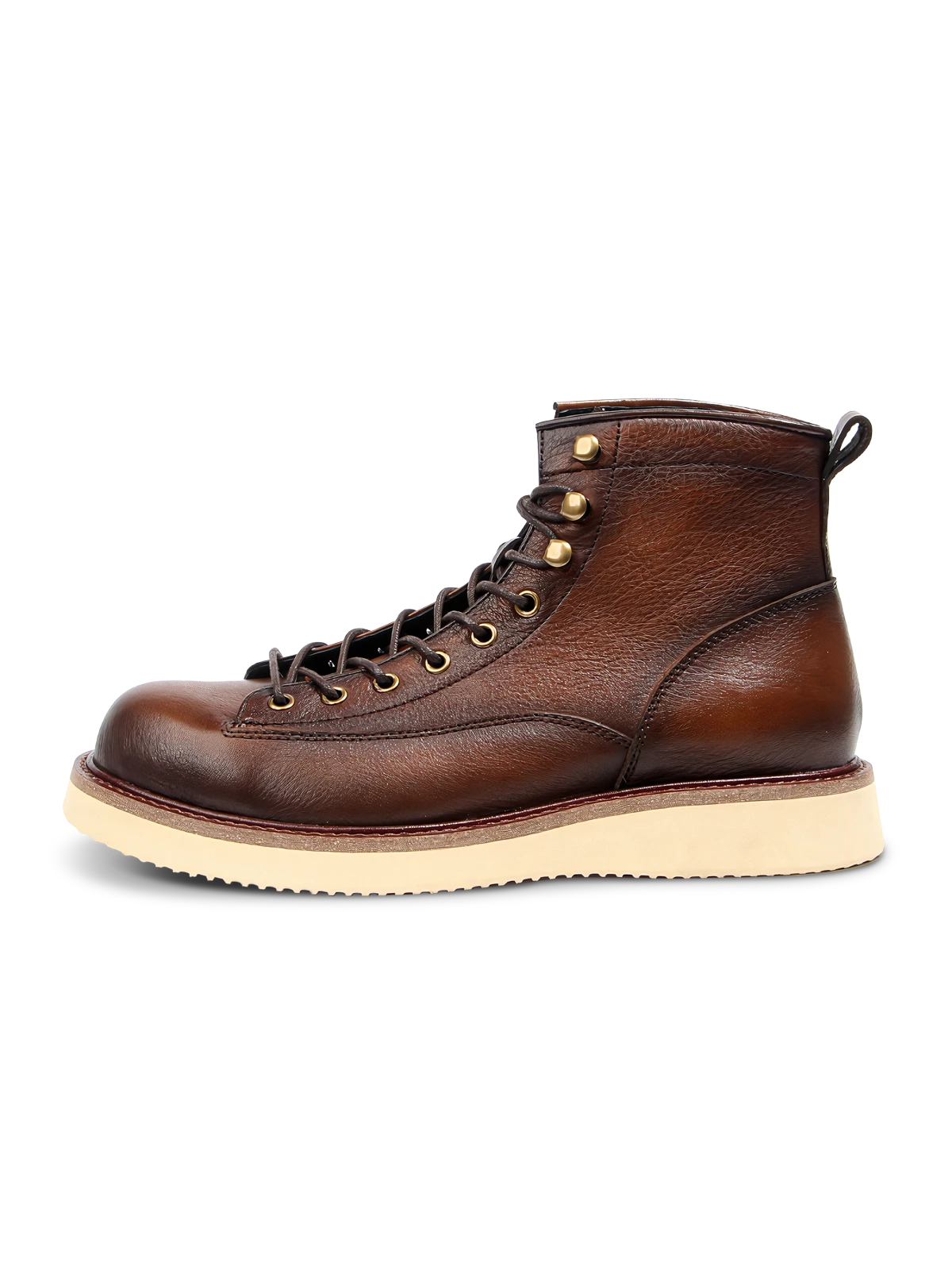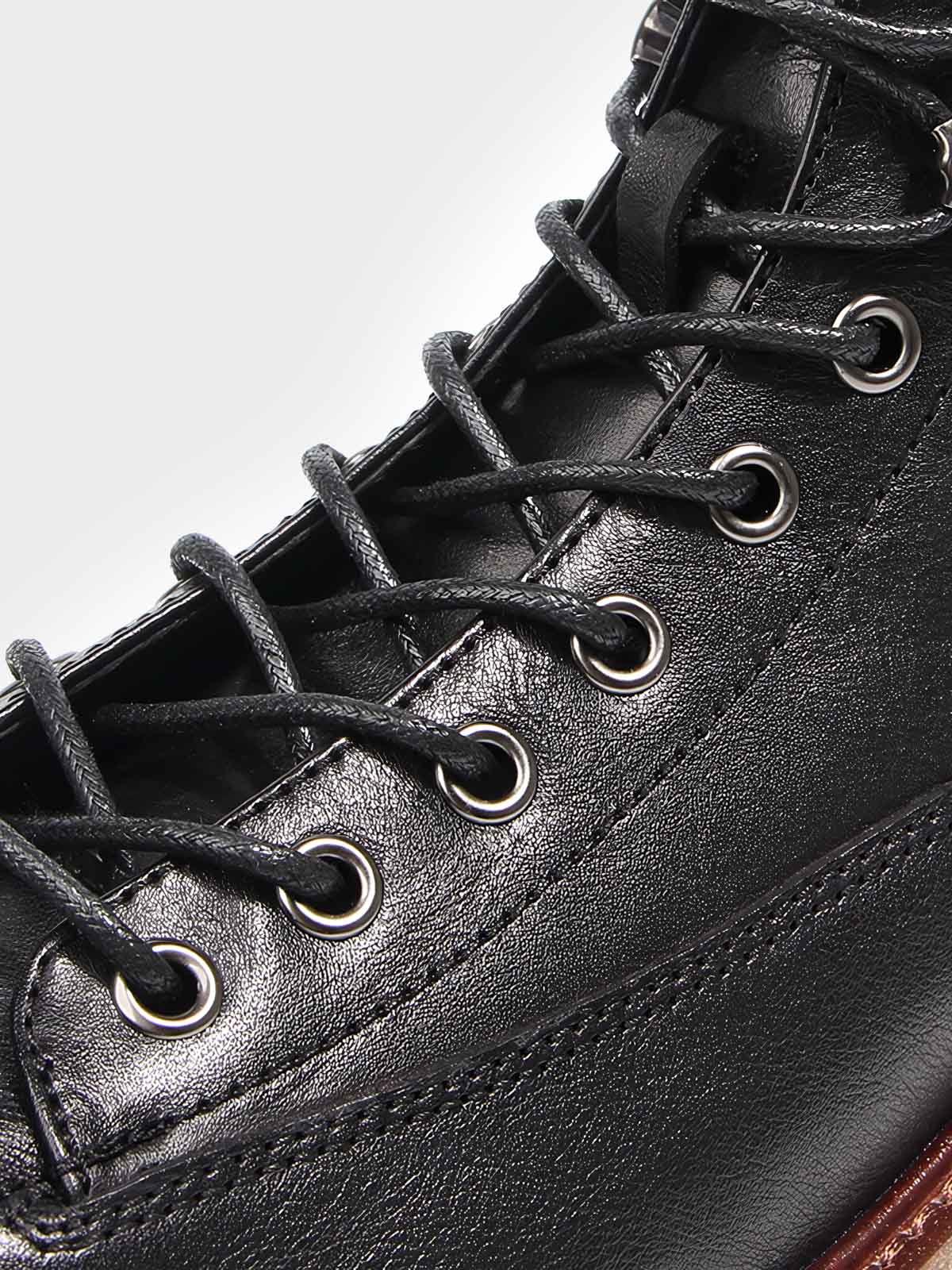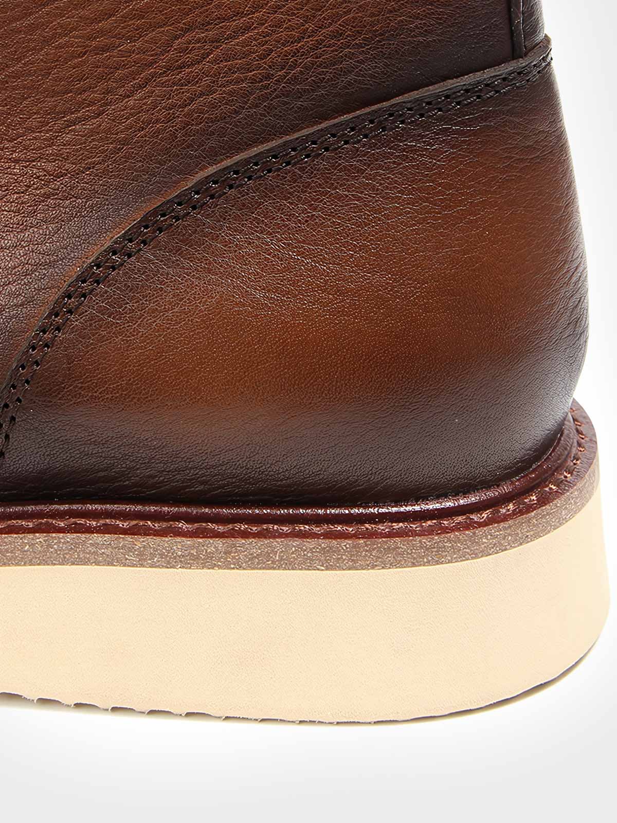 ブーツは高品質のレザーを使用し、堅固なステッチと耐摩耗性のあるゴム製のソールで補強されています。各ディテールは伝統的な工芸への敬意を示し、この素材と製造方法の選択は、靴をより耐久性のあるものにし、さまざまな地形での快適さと保護を保証します。