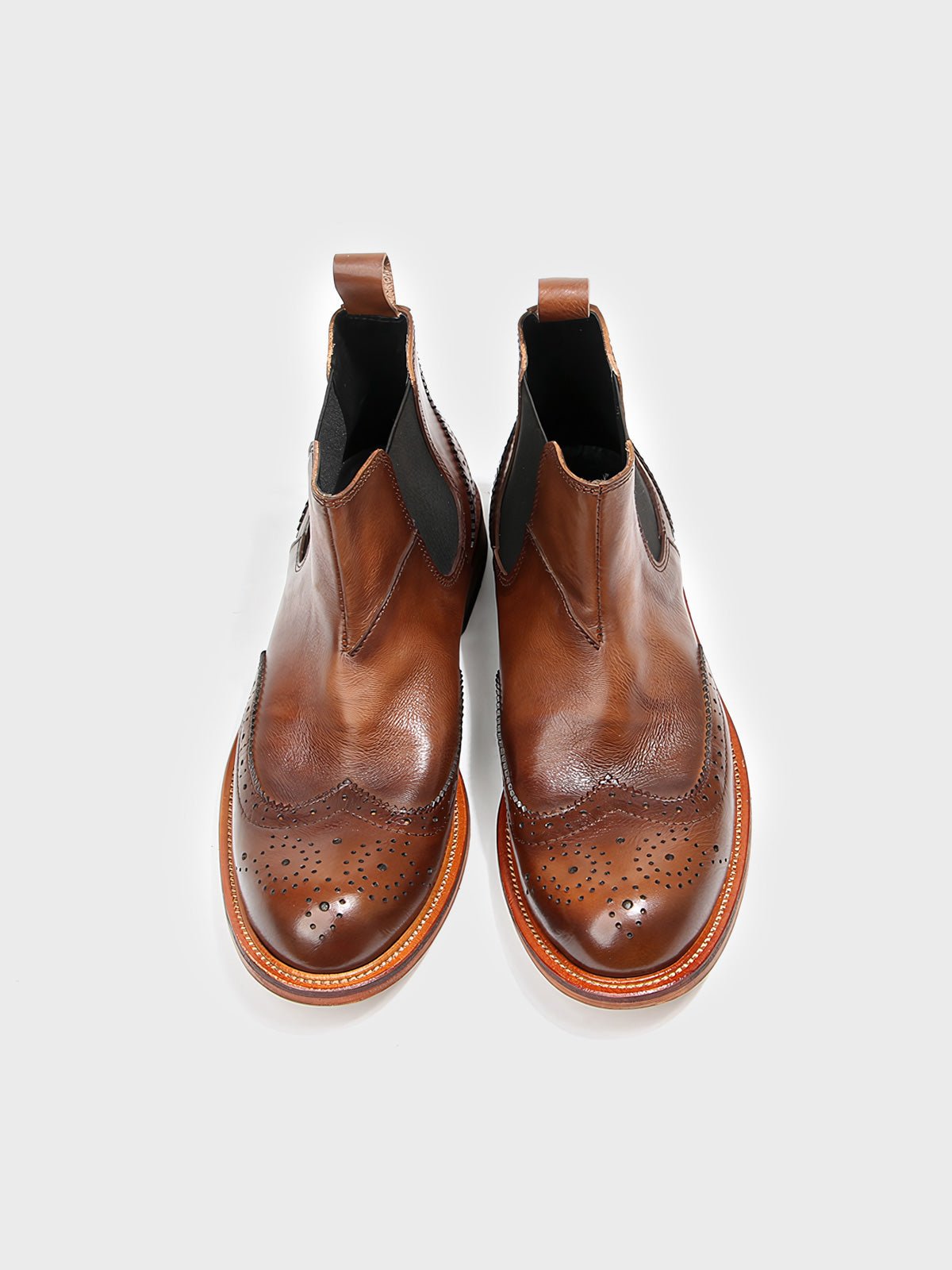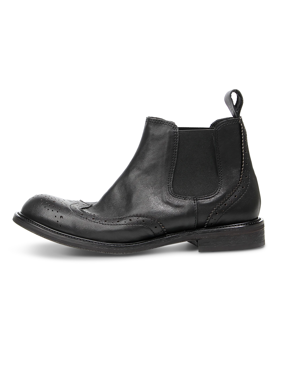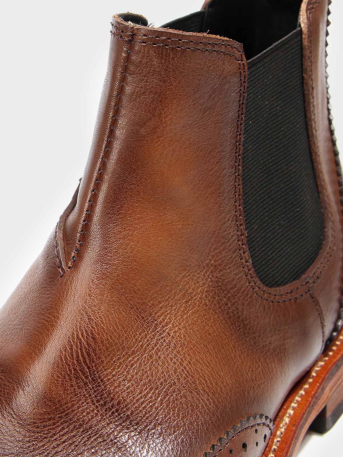 このブーツは、ブローグ(Brogue)の伝統的な彫刻デザインを採用しています。足型にフィットするデザインで、履きやすさとスタイリッシュなシルエットを両立しています。サイドゴアが付いており、脱ぎ履きが簡単で、ハイカットデザインが足首に良好なサポートを提供します。適切なヒールの高さは快適さを保ちつつ、着用者の身長比率を高めます。