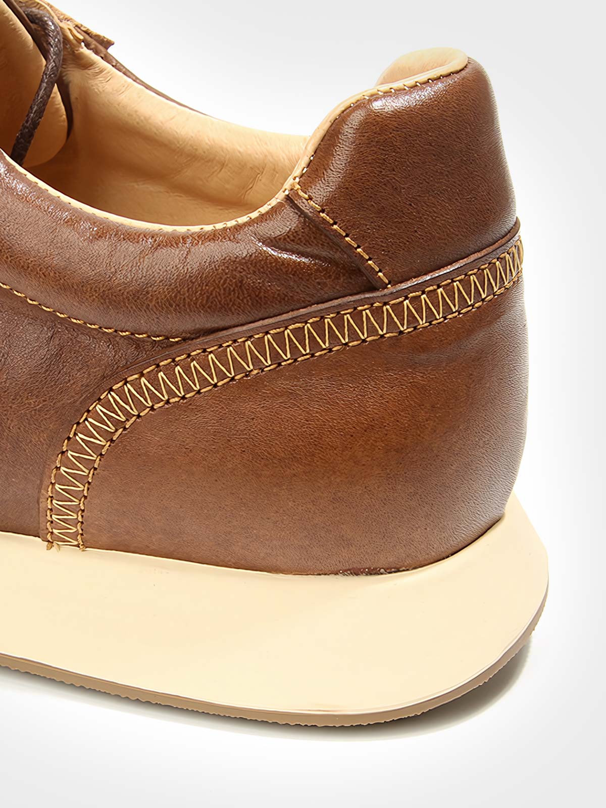 ウォッシュドホースレザーの使用は、靴面に独特の質感を与えるだけでなく、レトロな潮流における自然素材への好みにも呼応しています。内側にはトップグレードの豚革を使用し、追加の快適さと耐久性を提供しています。そして、トップグレードの牛革製のインソールは足へのサポートと快適さを高めます。