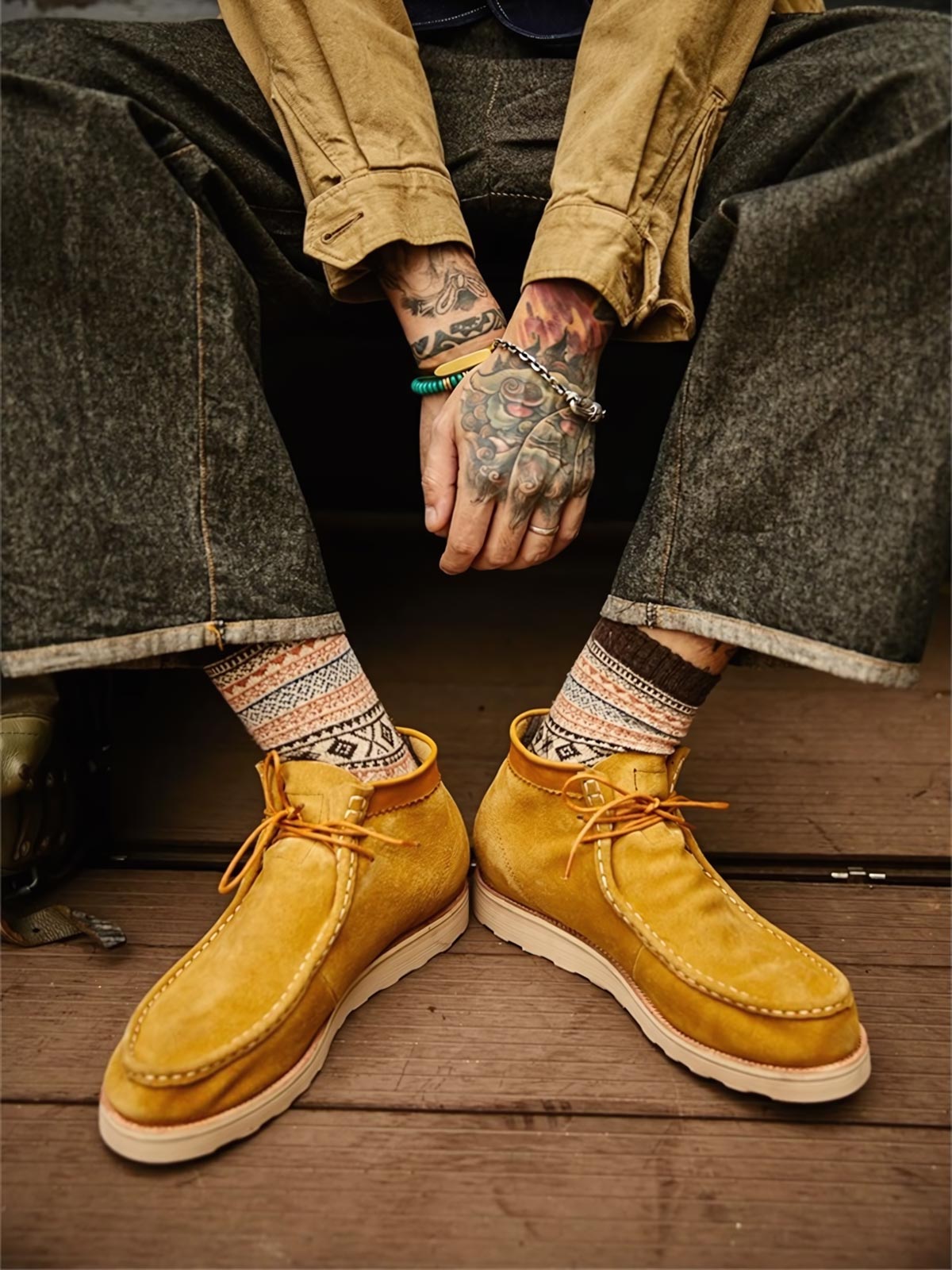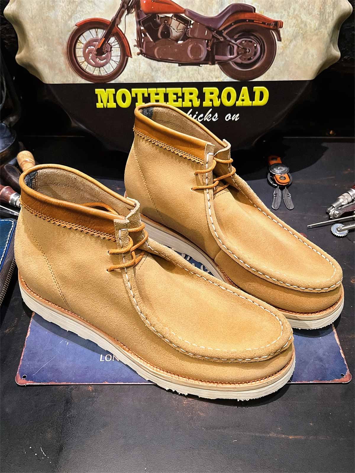 デザートブーツは元々、北アフリカでの戦闘用にイギリス軍によってデザインされ、そのシンプルさ、耐久性、暑い環境での快適性で知られています。このスエードデザートショートブーツは、伝統的なデザートブーツのスタイルを継承しつつ、現代的なデザイン要素を融合し、ファッション性を向上させています。