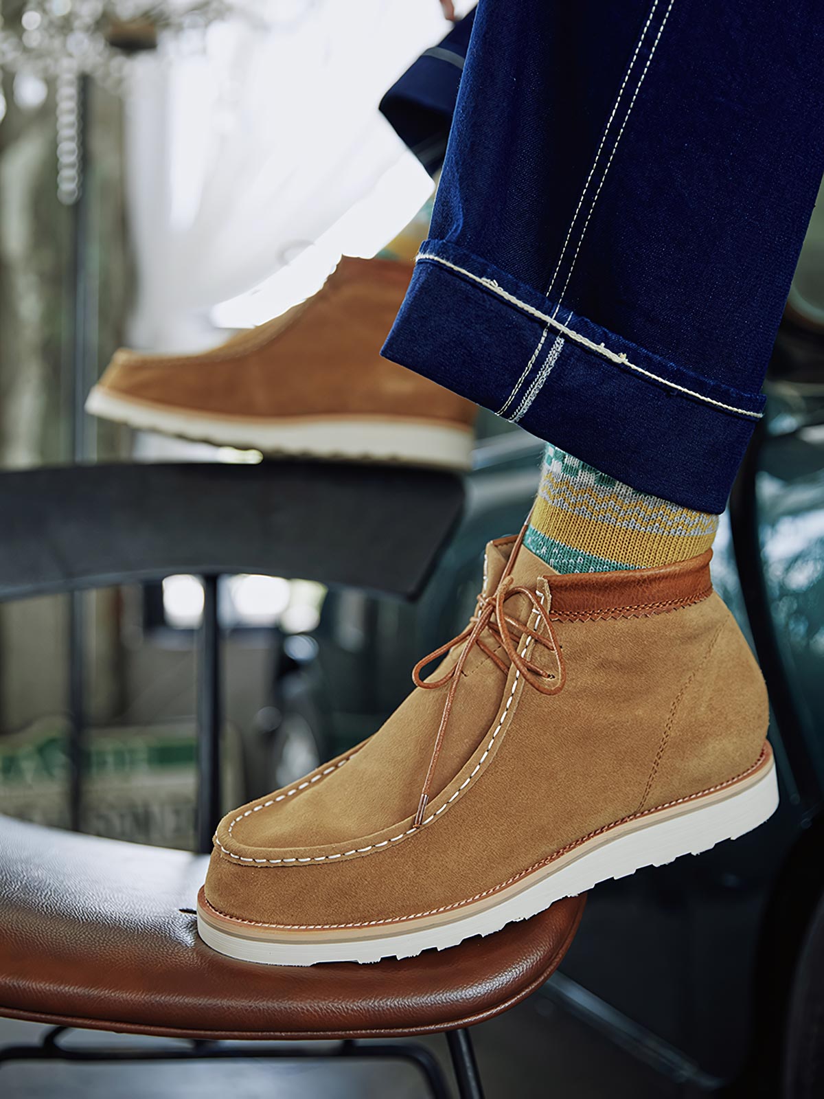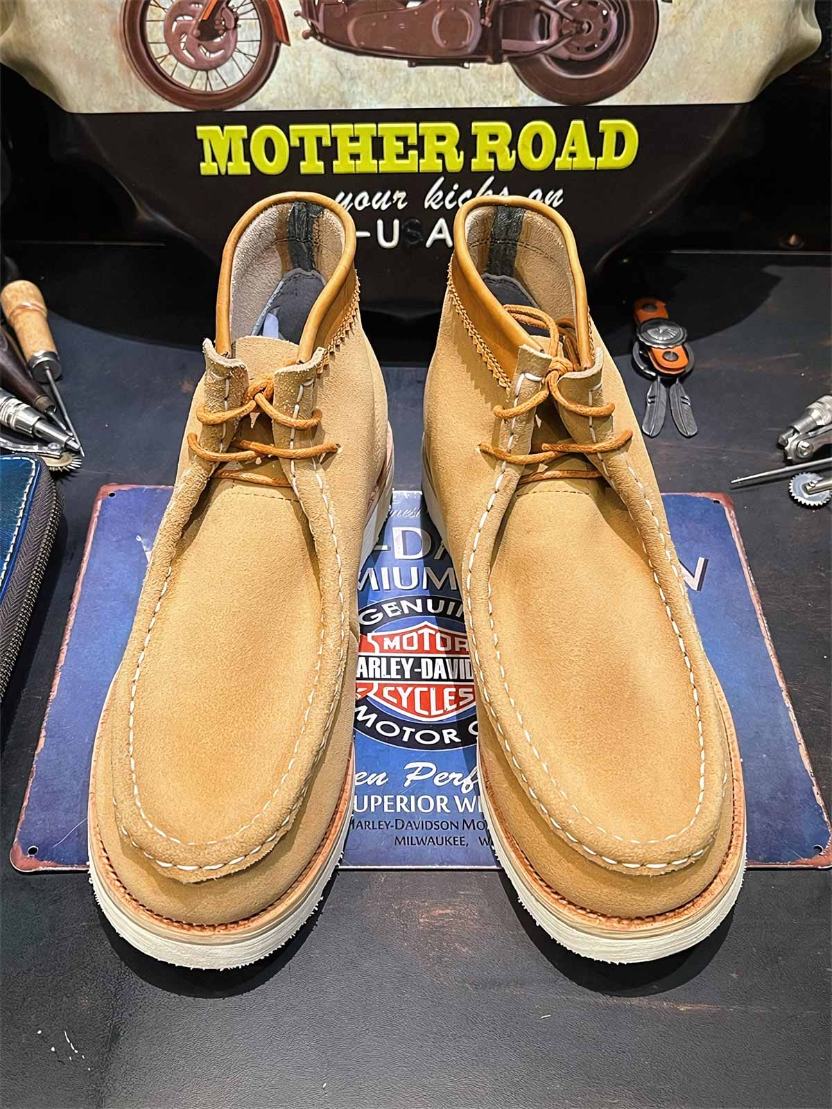 このブーツは高品質の一枚革スエードで作られており、柔らかさと堅牢さを兼ね備えています。シューチューブのエッジ処理はディテールの美しさを高め、耐久性も向上させます。何度も調整を重ねたシューツリーは、長時間の歩行でも快適であり、スタイリッシュさを損なわない履き心地を保証します。