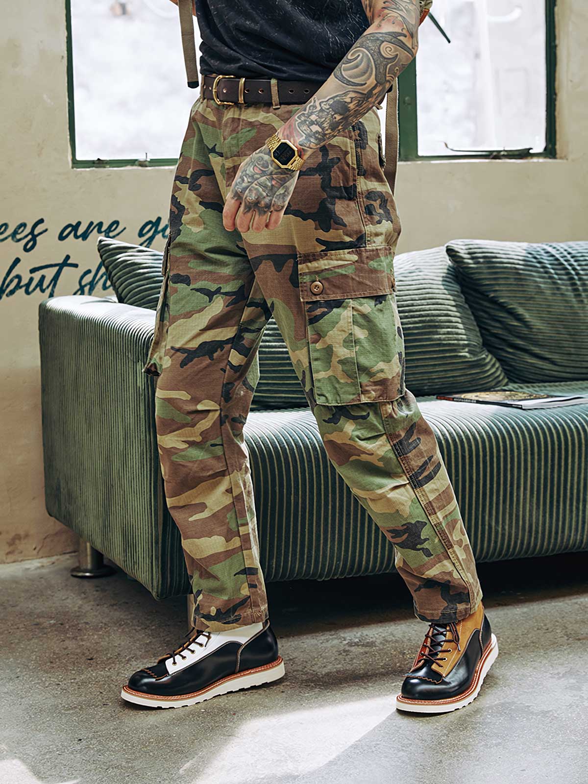 外側のスエードと内側のオイルワックスレザーの組み合わせは、異なる素材の質感を示すだけでなく、耐久性と保護も提供します。靴底には耐摩耗性のある独自のラバーソールを使用しており、優れたグリップと耐久性を保証しています。