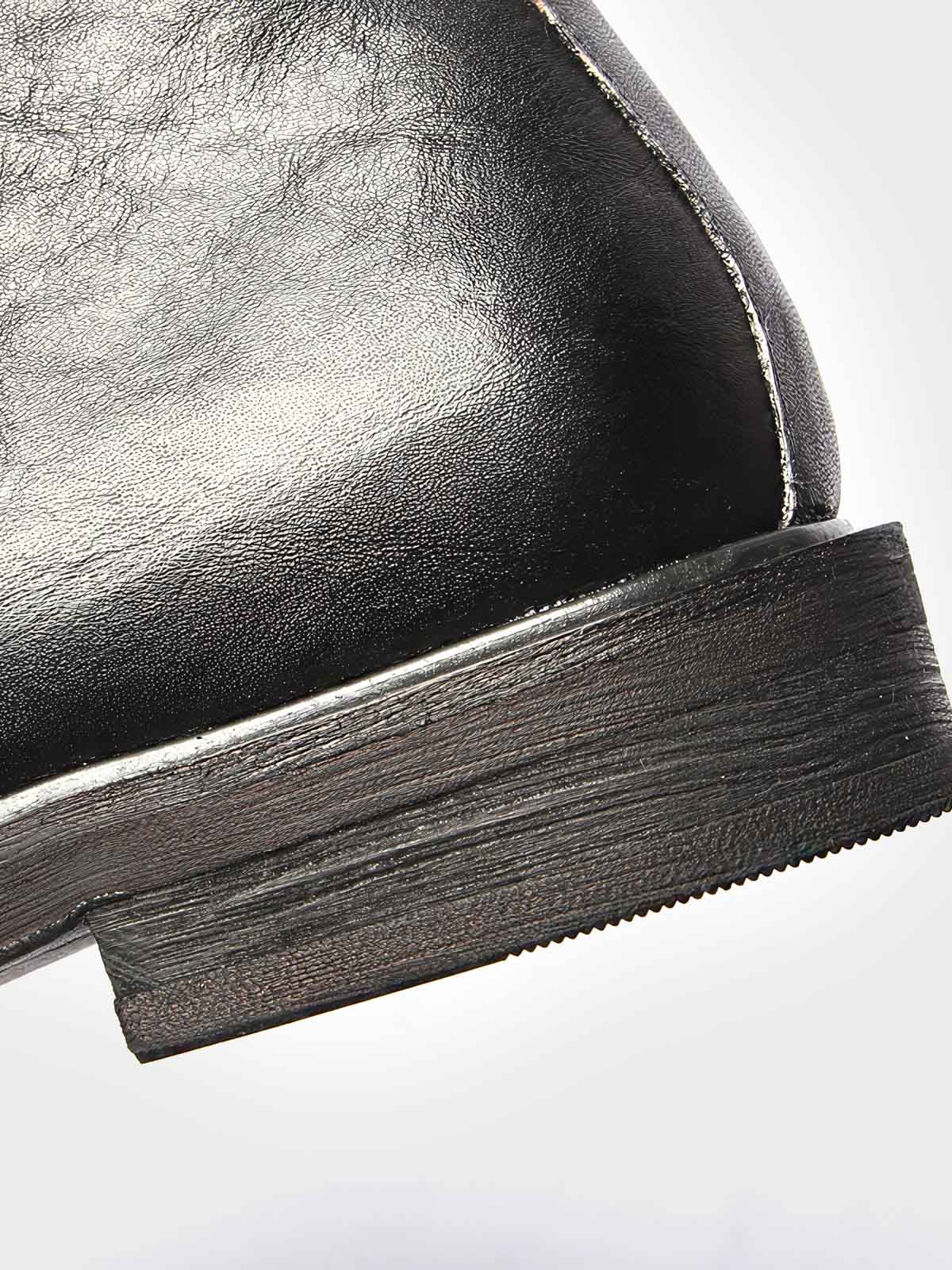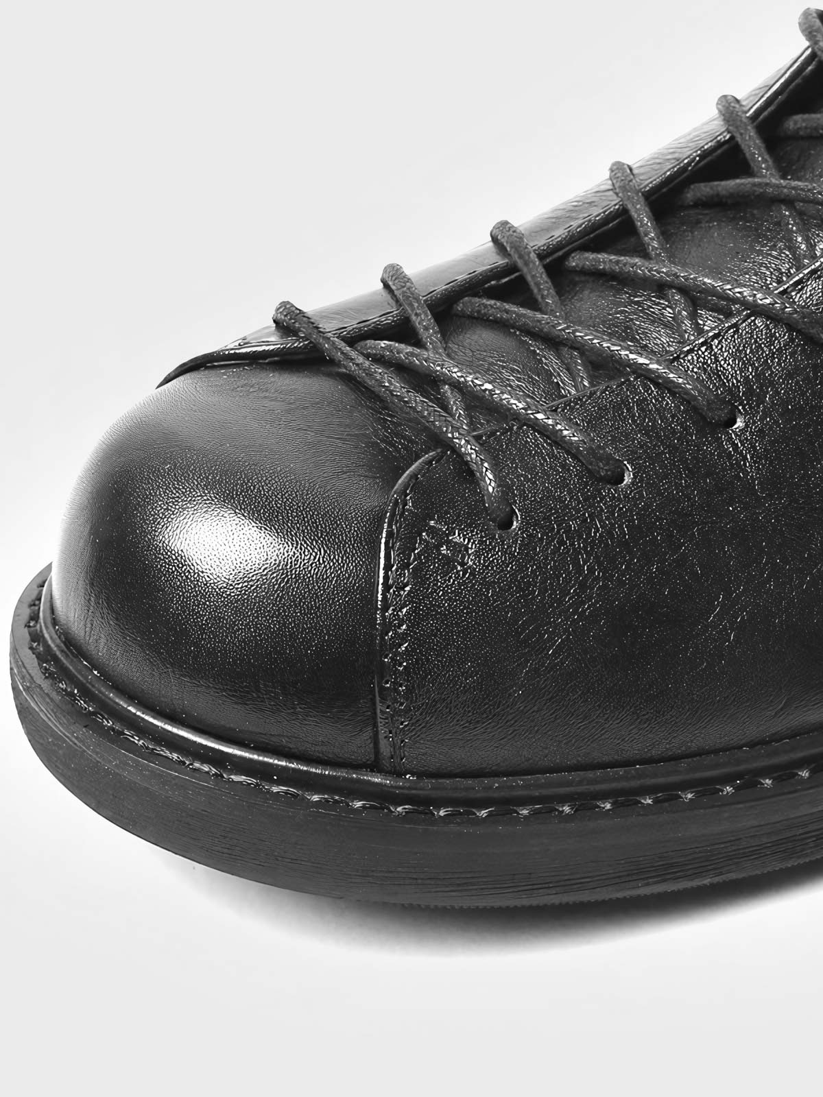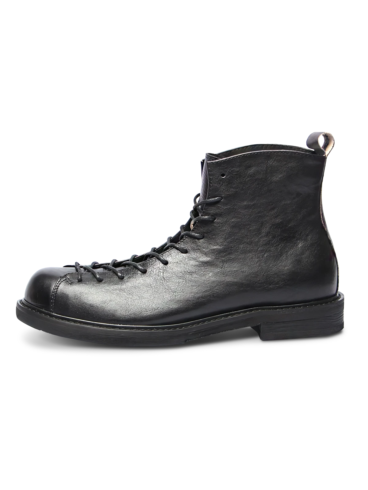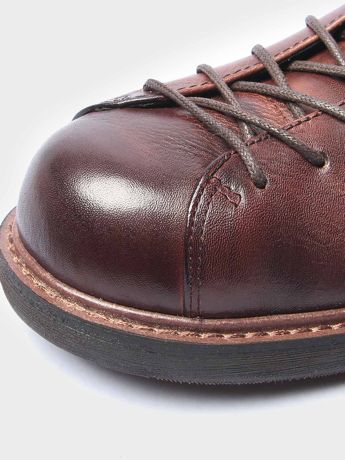 このハイカットメンズブーツは、トップグレードの牛革で作られており、独特のワックス加工により、ヴィンテージで落ち着いた雰囲気を醸し出しています。ワックス加工された革は、靴の表面に特有の光沢を与えるだけでなく、耐久性と防水性を向上させ、秋冬の湿気の多い天候に特に実用的です。内側にはトップグレードの豚革を使用しており、この素材はその柔らかさと通気性で高品質の靴作りに広く用いられています。履き心地の良さと良好な内部環境を足に提供します。インソールにもトップグレードの牛革を使用し、足の接触部分の快適性と耐久性をさらに確保しています。