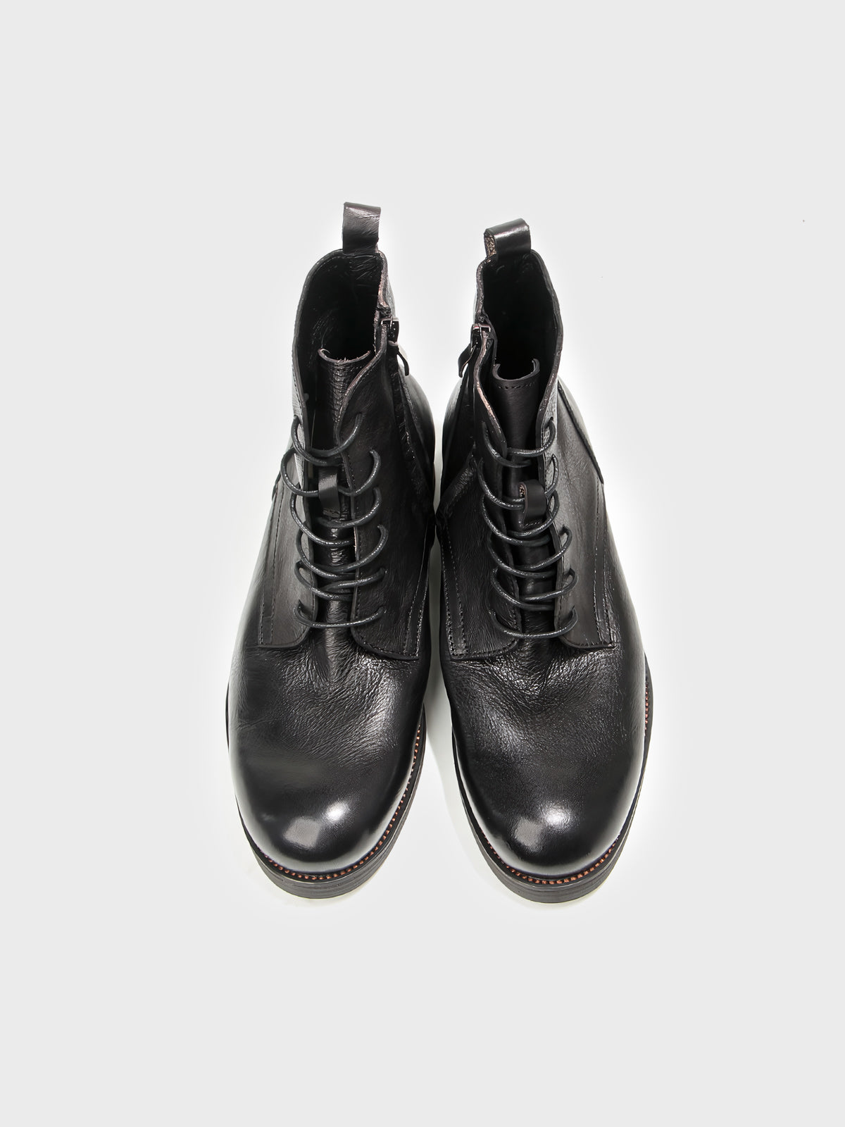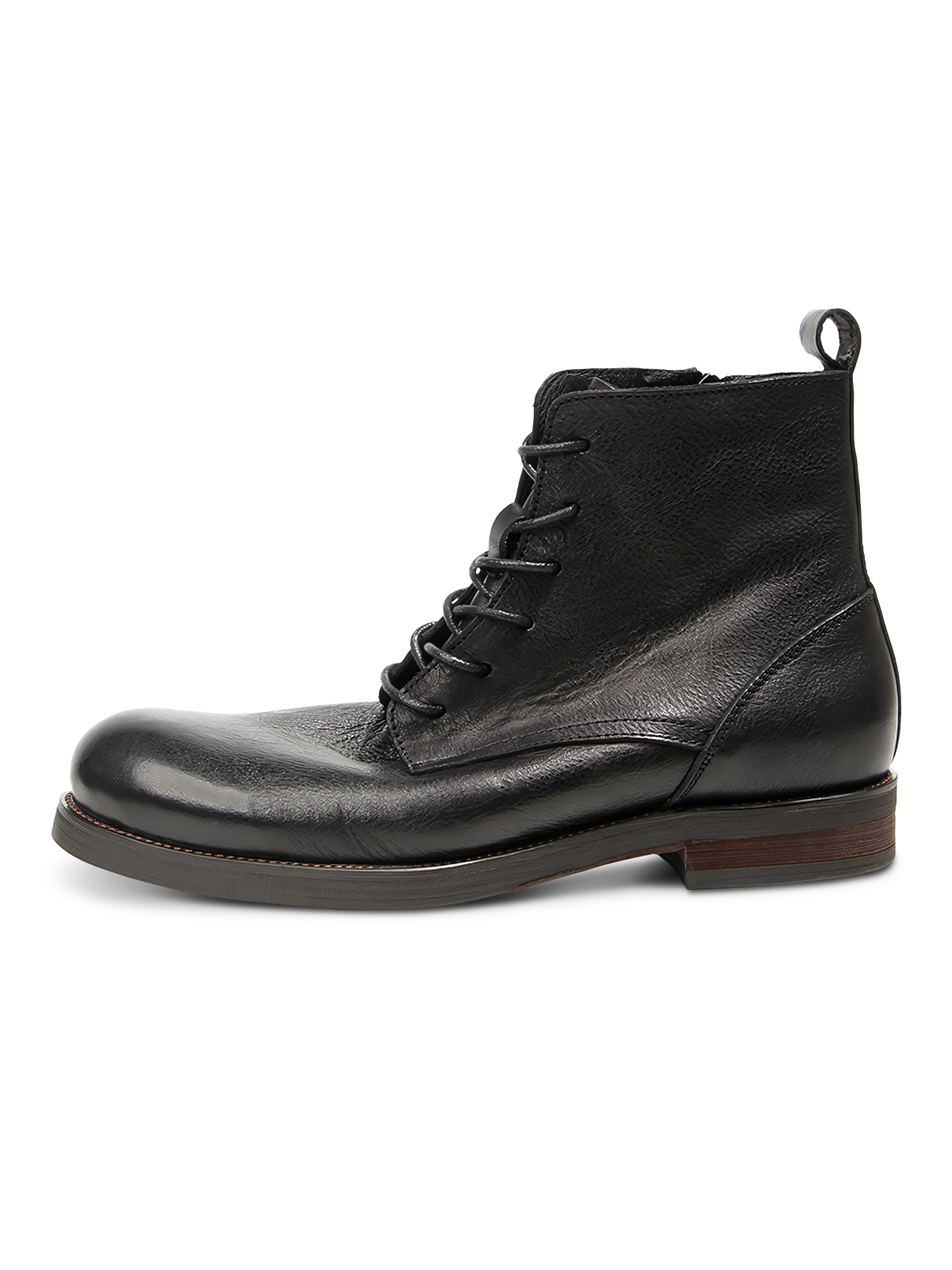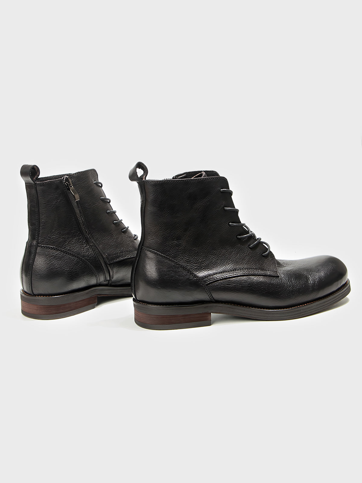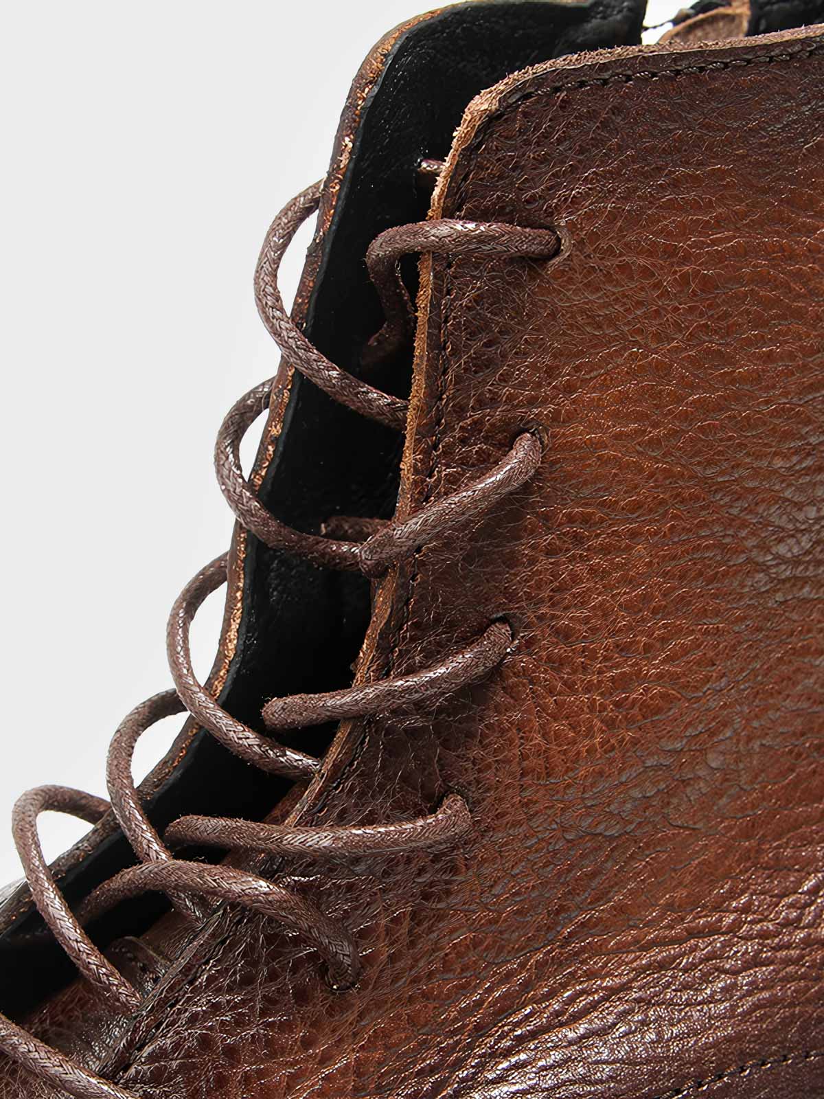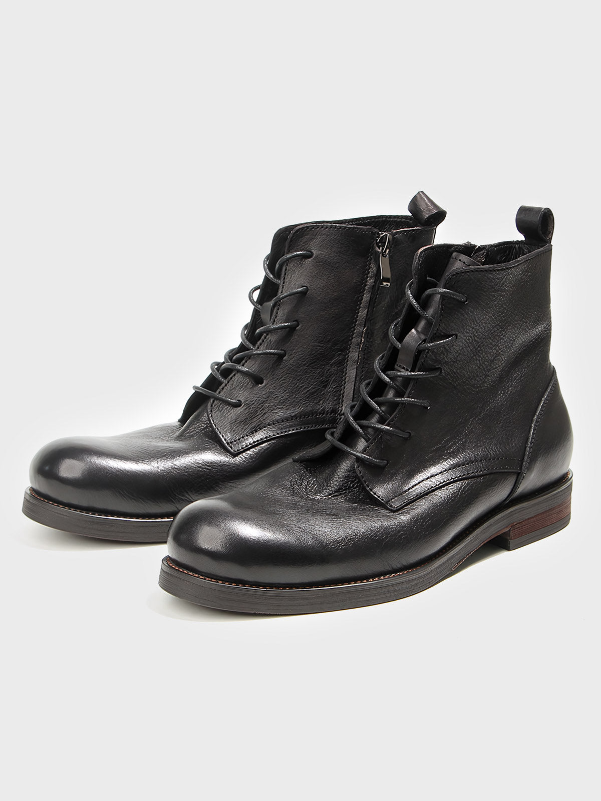手作りのエイジング加工が施されたレザーブーツは、靴作りの伝統への職人たちの敬意から生まれました。サイドジッパーは、伝統的なレザーブーツに現代的な改良を加え、着脱の便利さを提供します。クラシックなラウンドトゥデザインと堅牢な木製のソールを備えており、堅固なサポートと優れた快適さを目指しています。デザインは足の自然な曲線を重視し、長時間の着用でも快適さを保ちます。