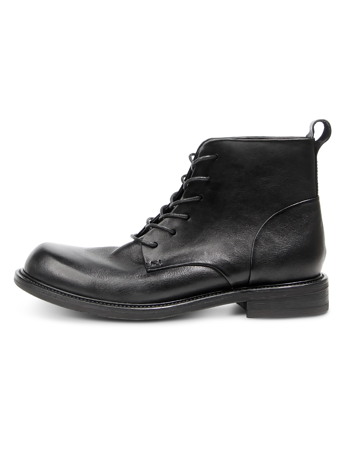このブーツは、一枚革の牛革を使用しており、伝統的な手工芸と現代的な美学を融合させ、ファッショナブルでクラシックな外観を実現しています。このブーツの型は足の形にぴったりと合わせており、良好なサポートと快適さを提供します。柔らかい革質と精巧な製造技術は、長時間の着用でも不快感を感じさせません。ミッドハイトのデザインは、さまざまな足の形に適しており、十分な足首のサポートを提供します。