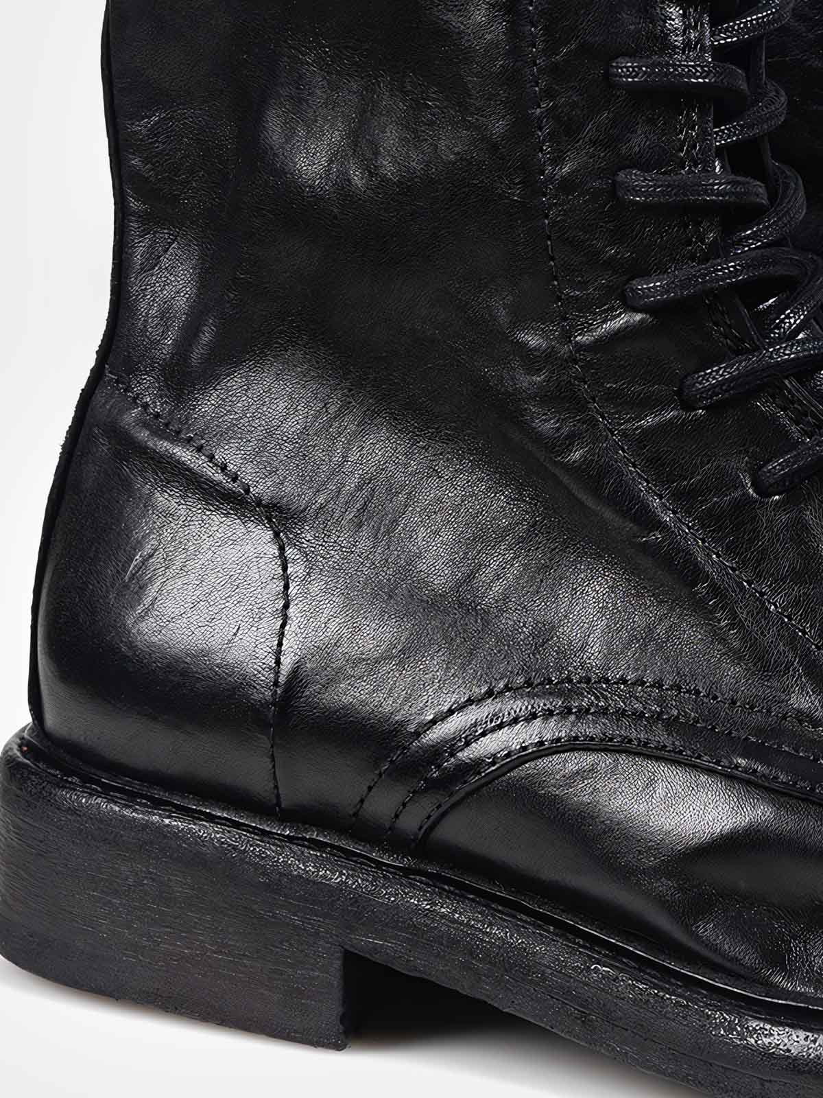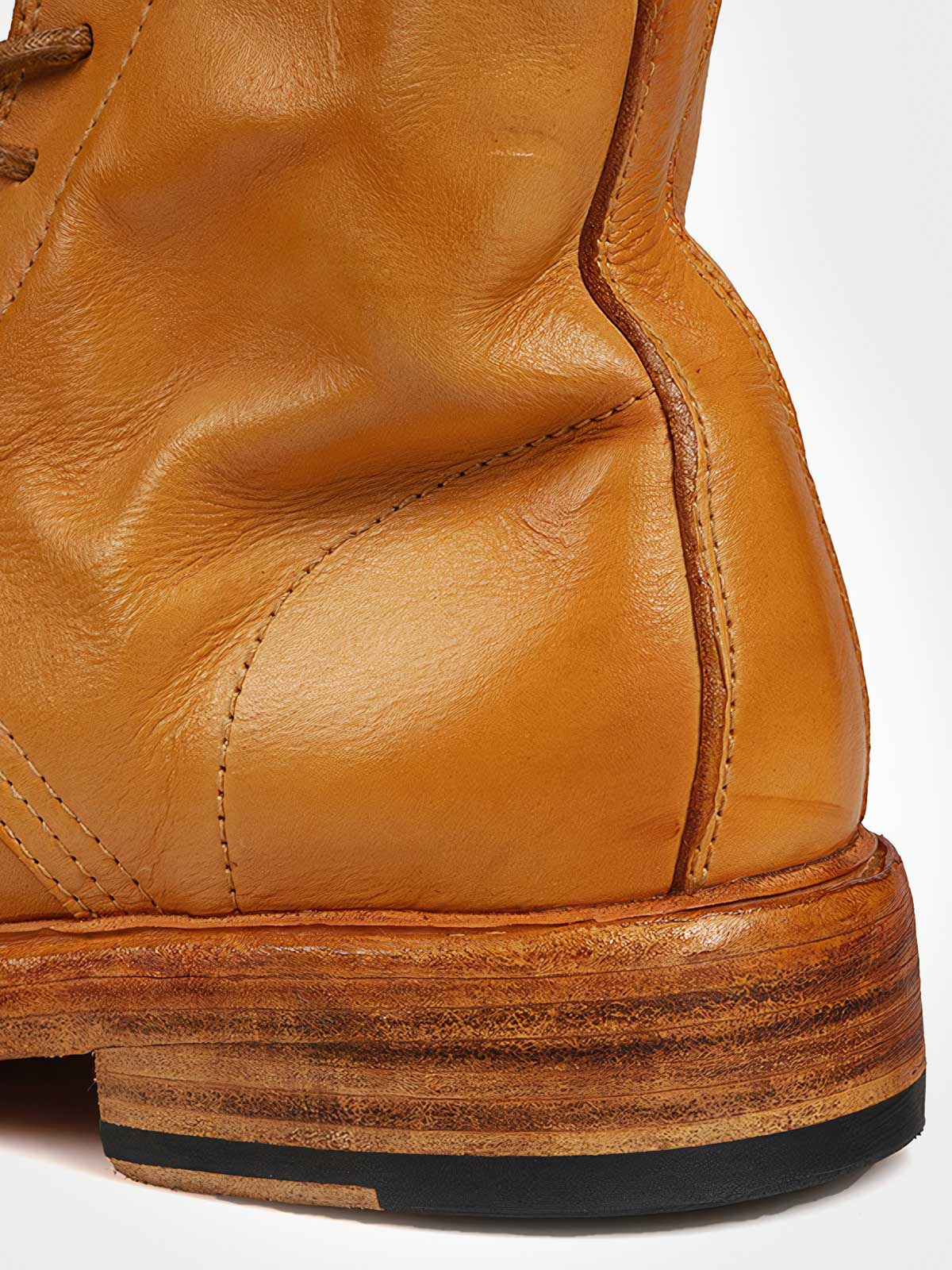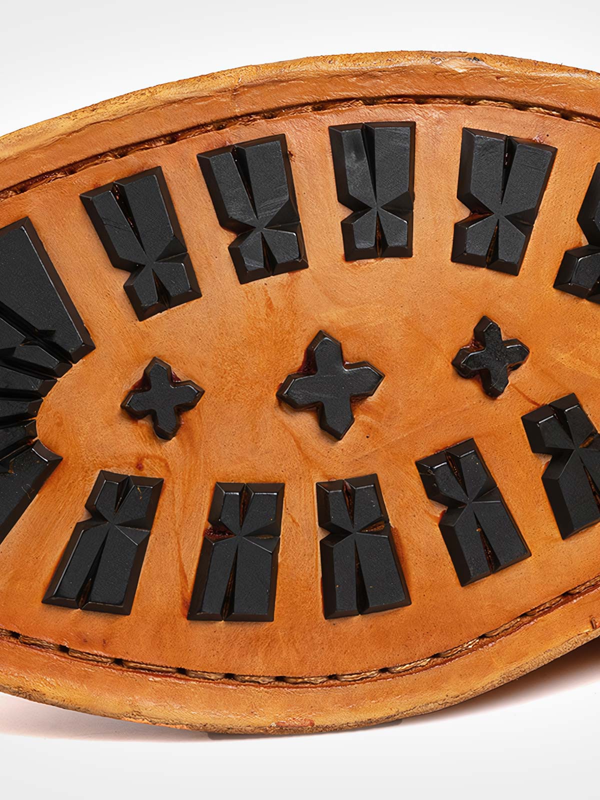 このハンドメイドシューズは、細かなステッチが靴の安定性を向上させ、職人のこだわりを反映しています。靴の舌部分と履き口のエッジは、繊細な職人技を示し、牛革の靴底は堅固なサポートと快適な歩行体験を提供します。靴底のエッジの縫い目は、手作りシューズの高品質を象徴し、耐久性とレトロな美しさを兼ね備えています。