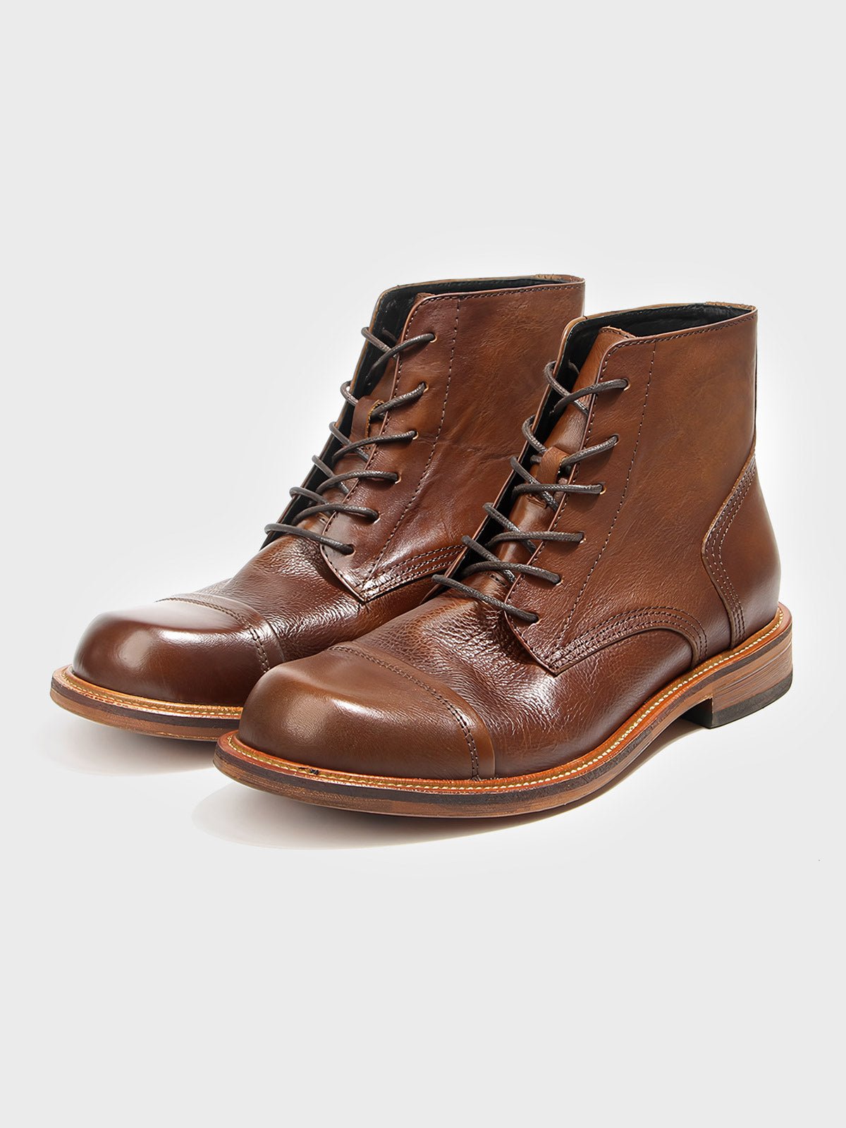 このメンズショートブーツは、トップグレインレザーを使用し、伝統的な靴製造技術に由来しています。この靴は足の自然な曲線に注目し、履き心地を重視して設計されています。クラシックなショートブーツスタイルは現代的なデザインセンスを融合し、優れたサポートと安定性を提供します。柔らかいレザーの手触りと足の形状に完璧にフィットすることで、歩くたびに落ち着いた堅牢な印象を与えます。