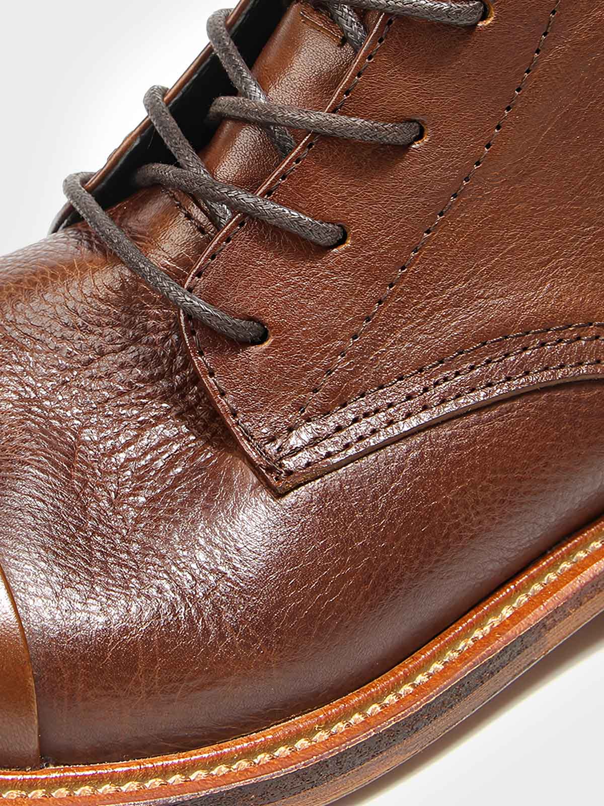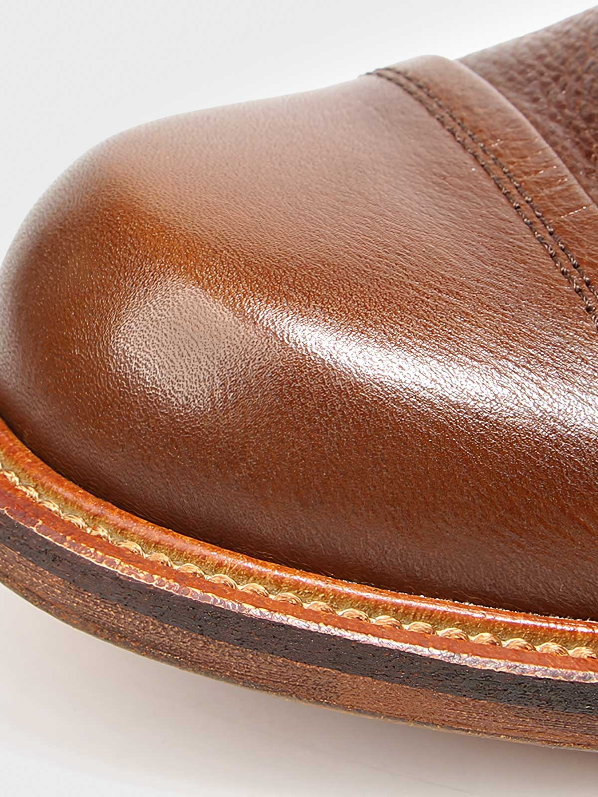 厳選されたトップグレインレザーは耐摩耗性があり、形状を保持し、時間の経過とともにより個性的な光沢を発揮します。精巧なシューホールと靴紐、そしてクラシックなカットのシューズデザインは、靴作りの芸術に対する職人の精巧な技術を示しています。