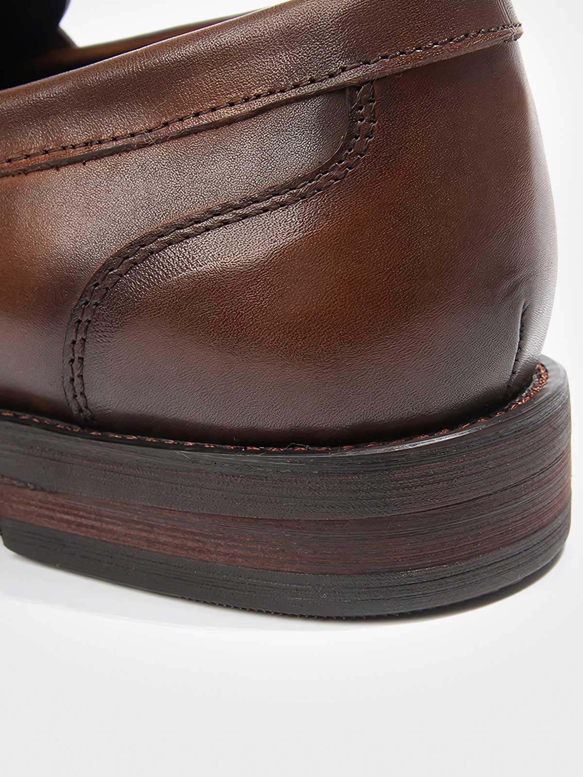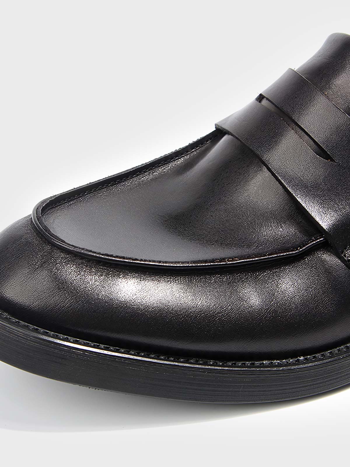 高品質のトップレイヤーカーフスキンを使用し、丁寧に磨き上げられた靴面は深みのある均一な色合いを示し、牛革の自然な質感とパターンを保持しています。シンプルなデザインと精巧な工芸は、正式な場面とカジュアルな日常着にも適しています。このローファーは、スーツパンツや上質なカジュアルパンツと合わせ、ビジネスシャツやカジュアルなポロシャツをインナーに選ぶと良いでしょう。ビジネスミーティングや週末のリラックスタイムに、着用者のセンスとエレガンスを表現できます。